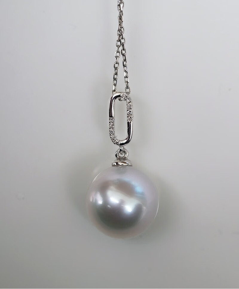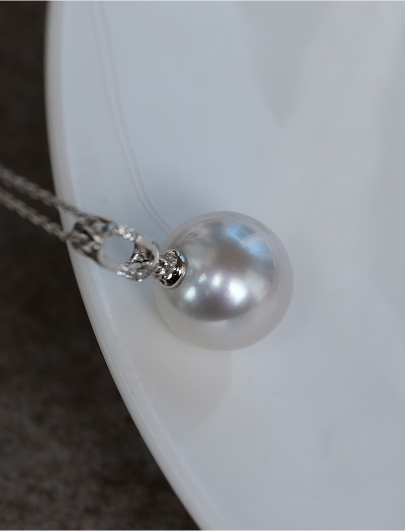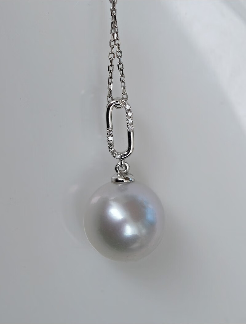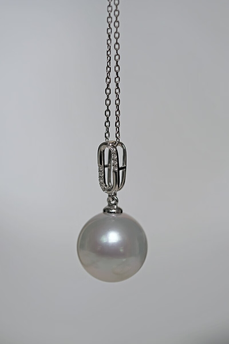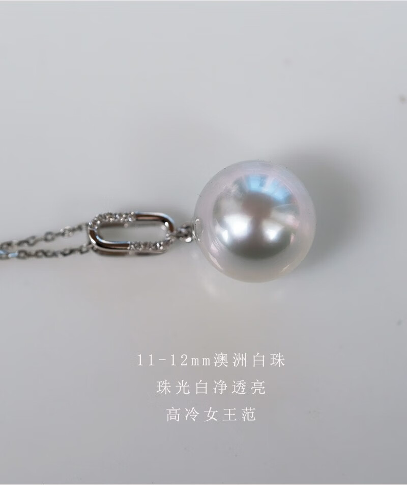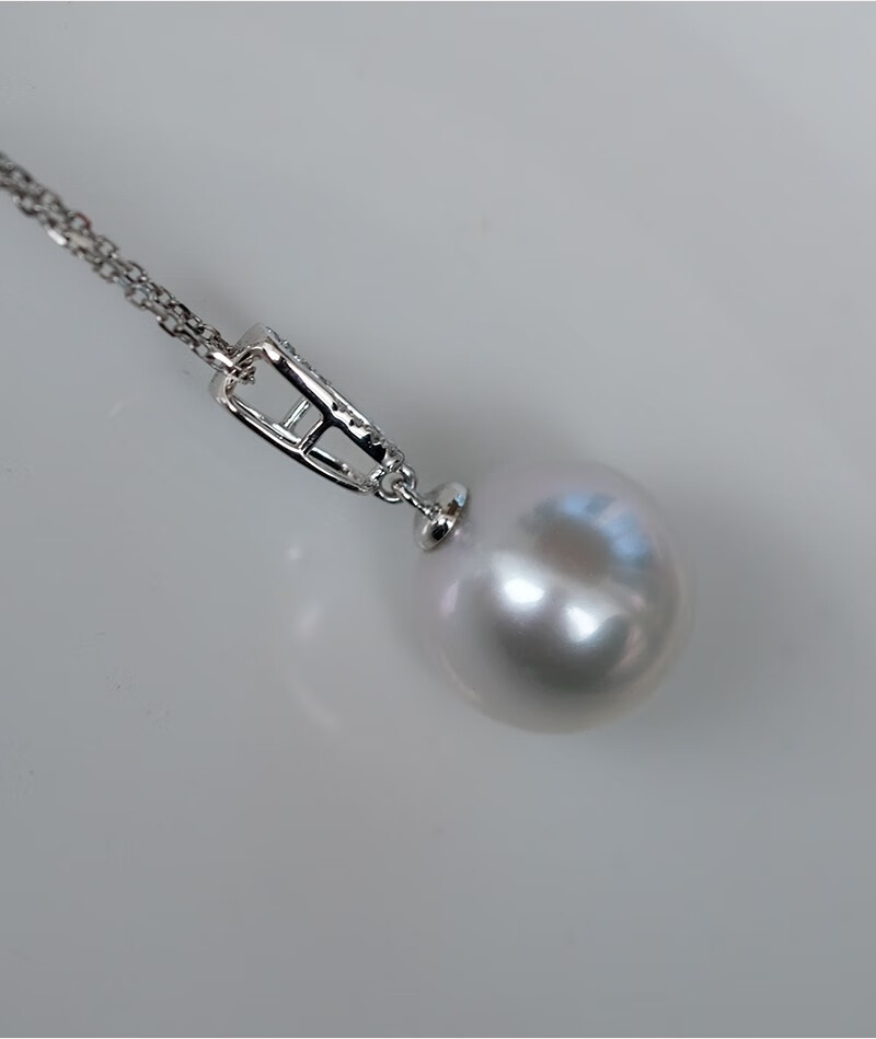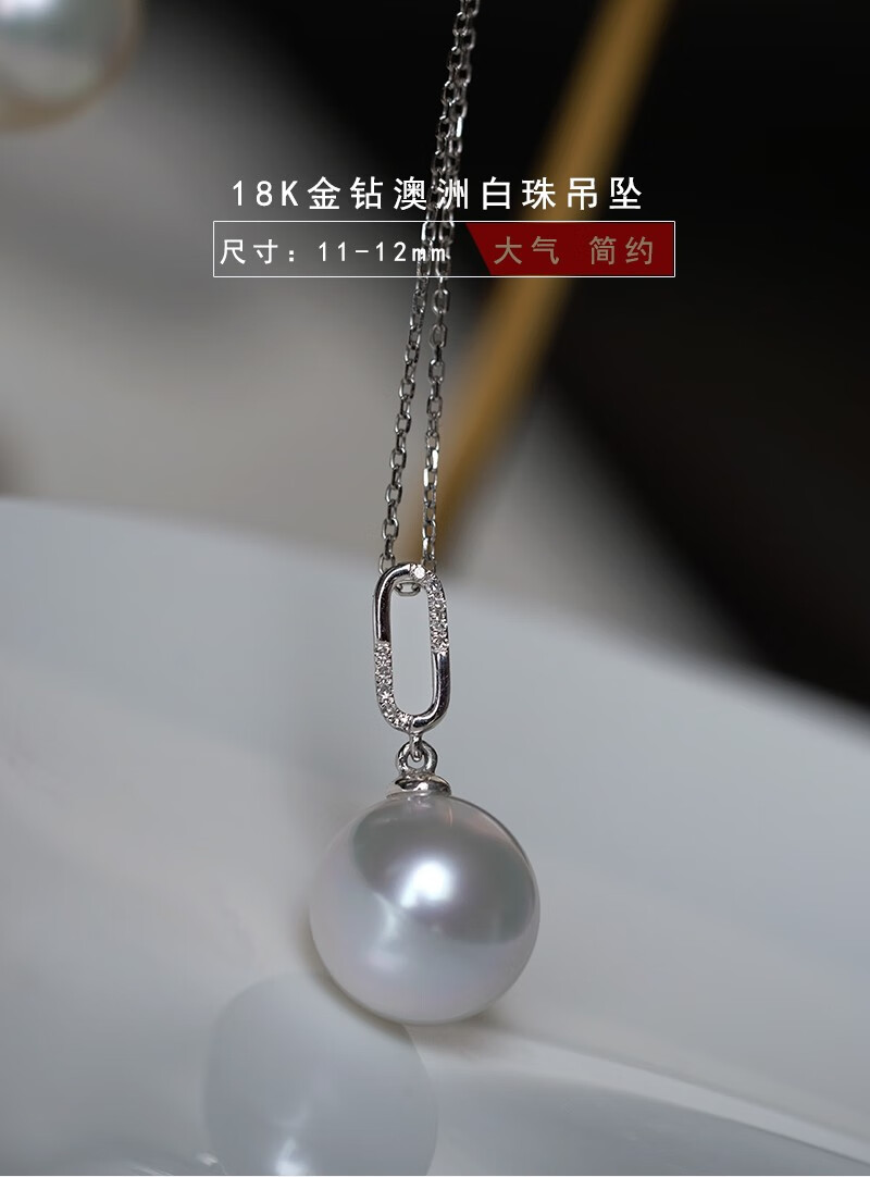 V&C 18K diamond Australian white pendant simple model 11-12MM cold light flawless Australian seawater white pearl necklace 18K+ diamond (excluding chain) 11-12MM