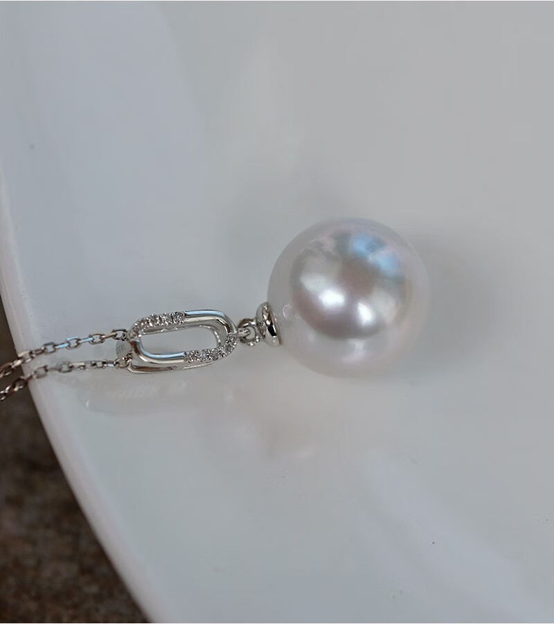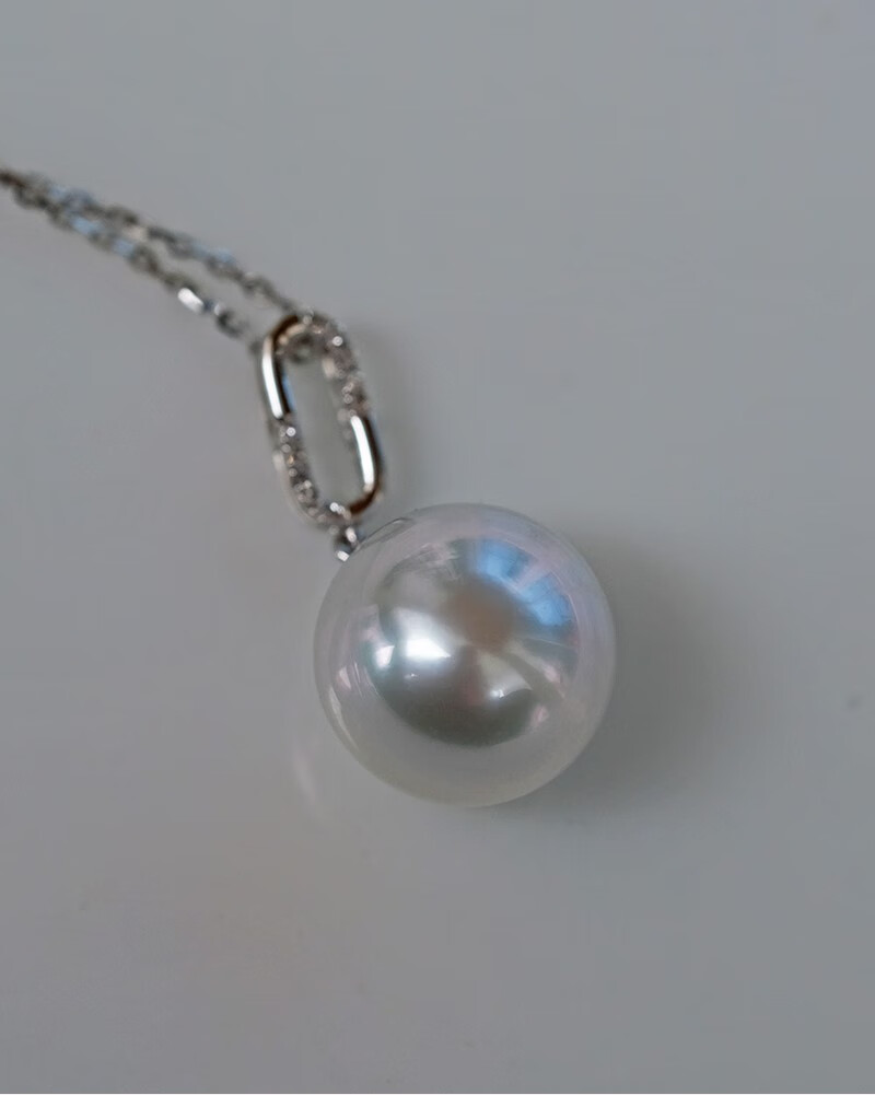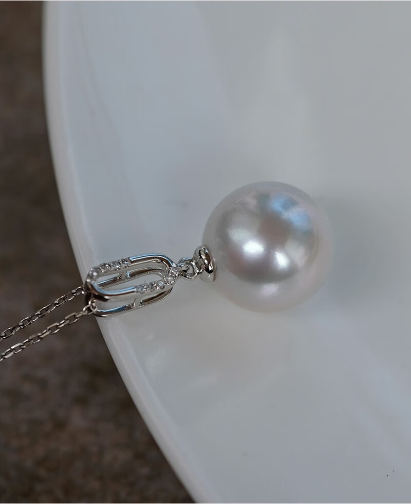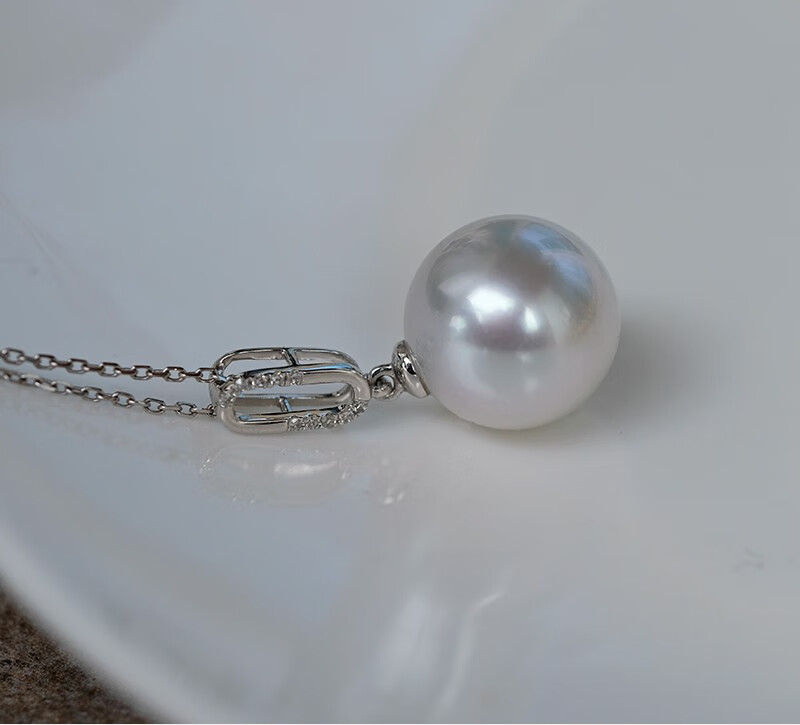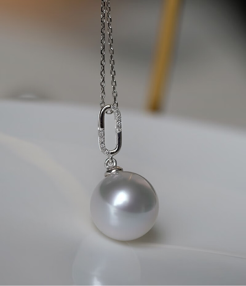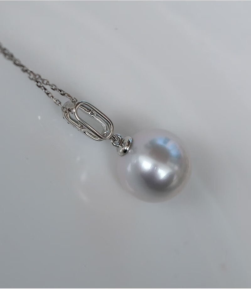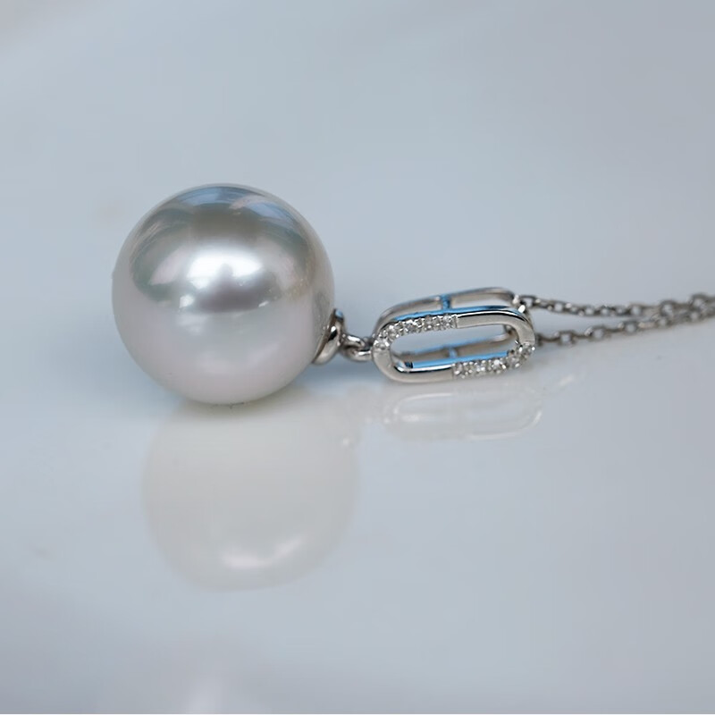 V&C 18K diamond Australian white pendant simple model 11-12MM cold light flawless Australian seawater white pearl necklace 18K+ diamond (excluding chain) 11-12MM