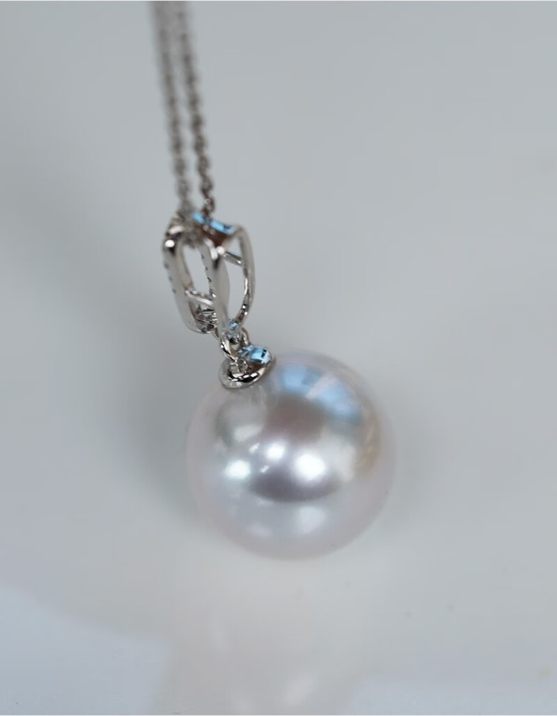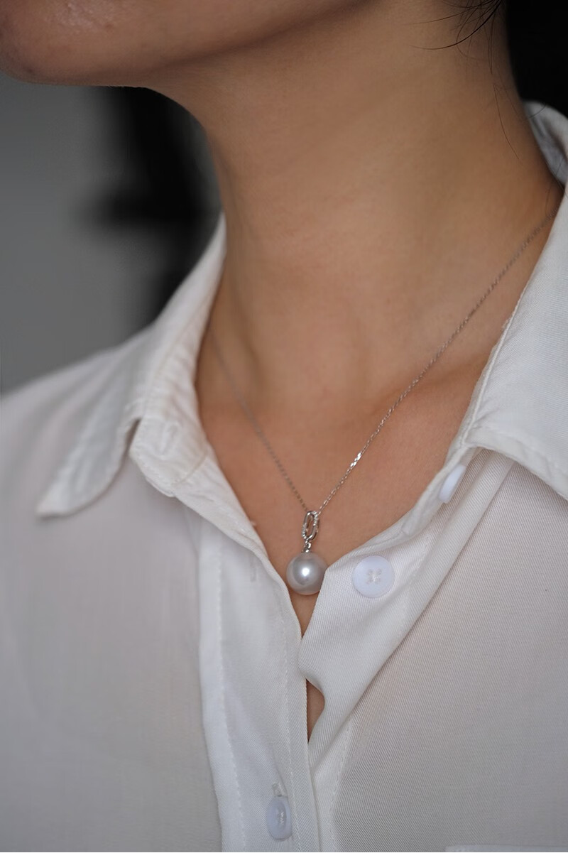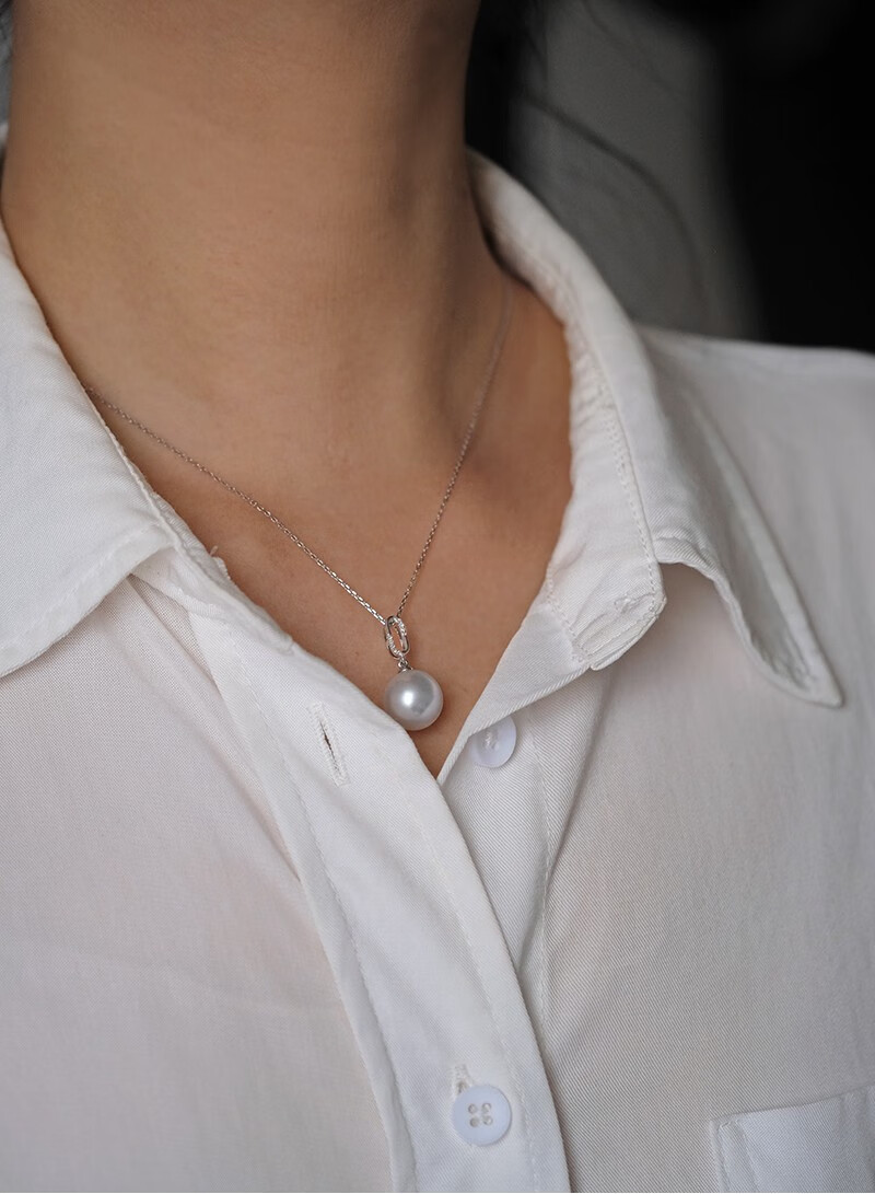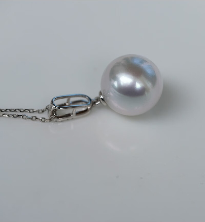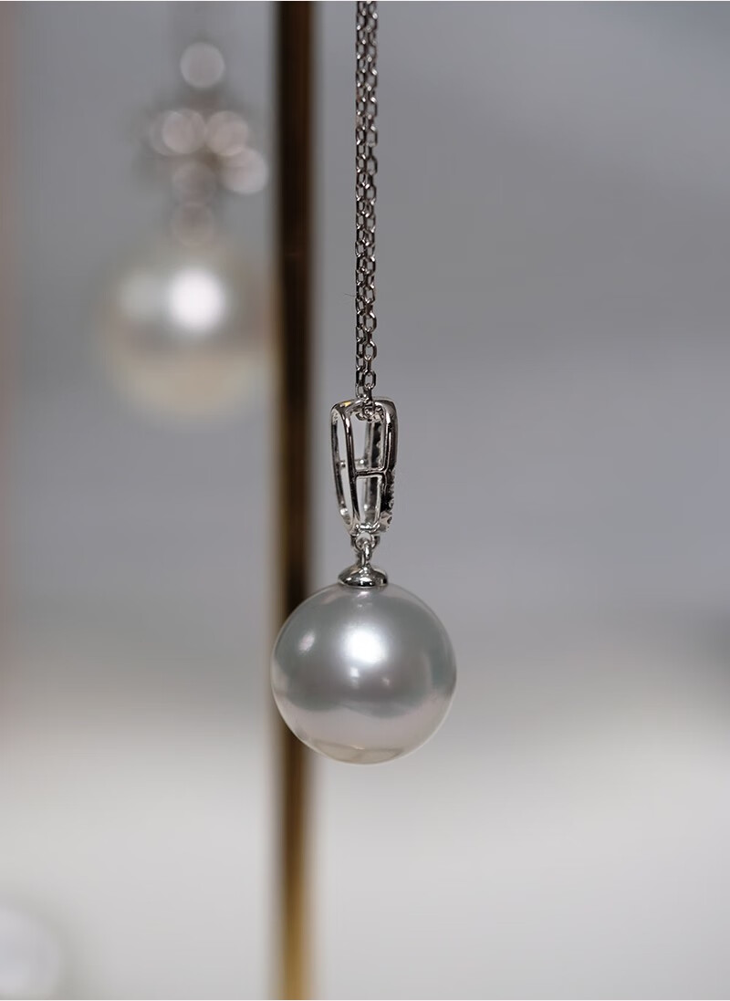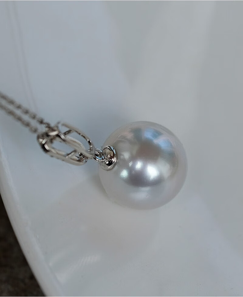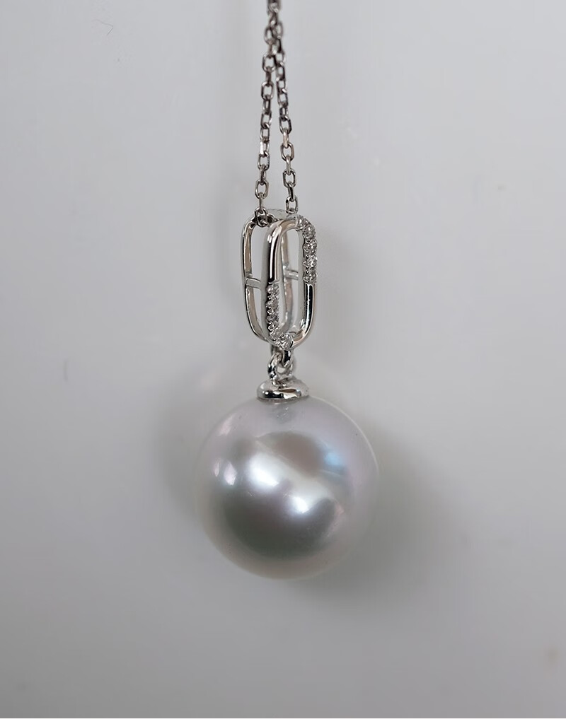 V&C 18K diamond Australian white pendant simple model 11-12MM cold light flawless Australian seawater white pearl necklace 18K+ diamond (excluding chain) 11-12MM