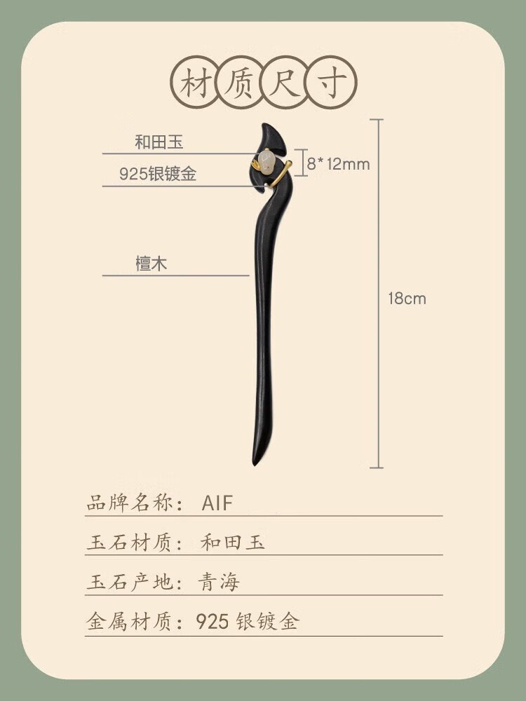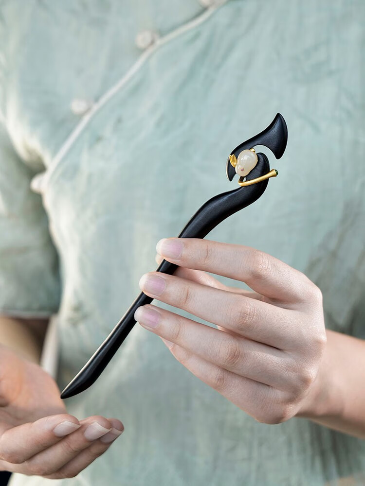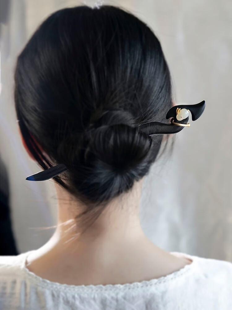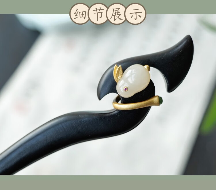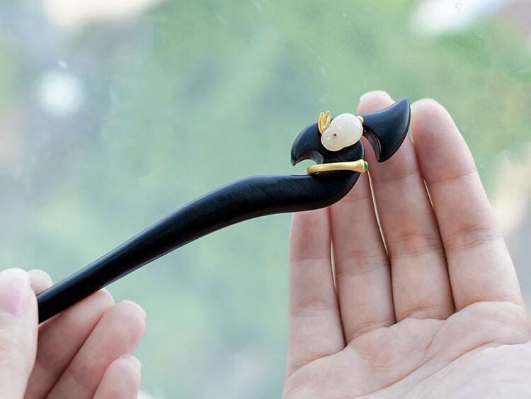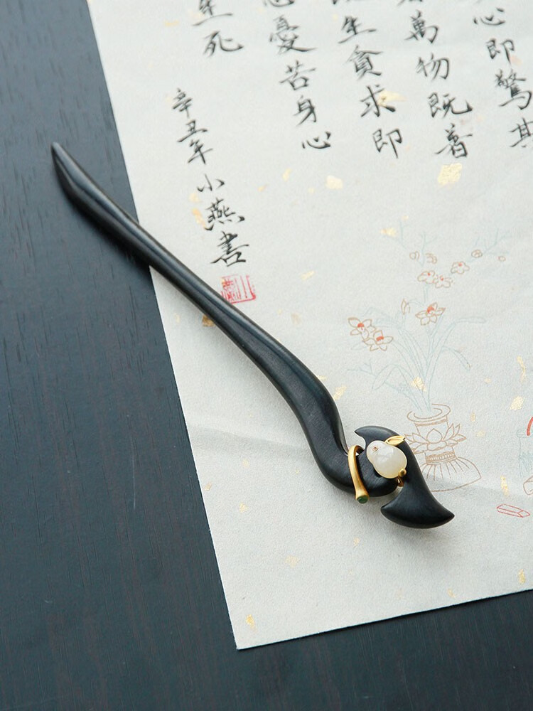 AIF Black Sandalwood Hetian Jade Rabbit Hairpin Women's Ancient Style Hairpin Hair Accessory Valentine's Day Birthday Gift for Girlfriend and Wife Black Sandalwood Jade Rabbit Hairpin