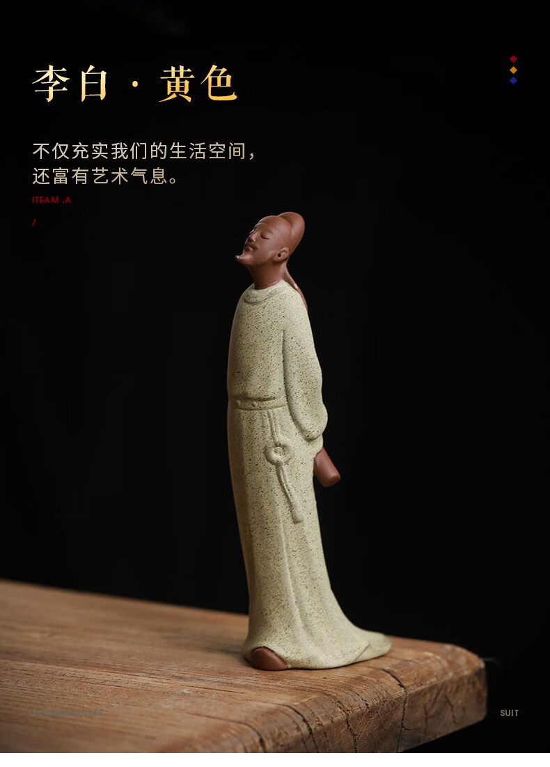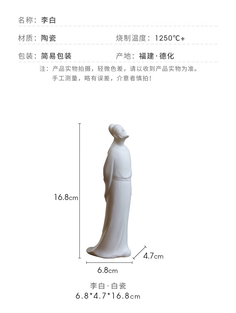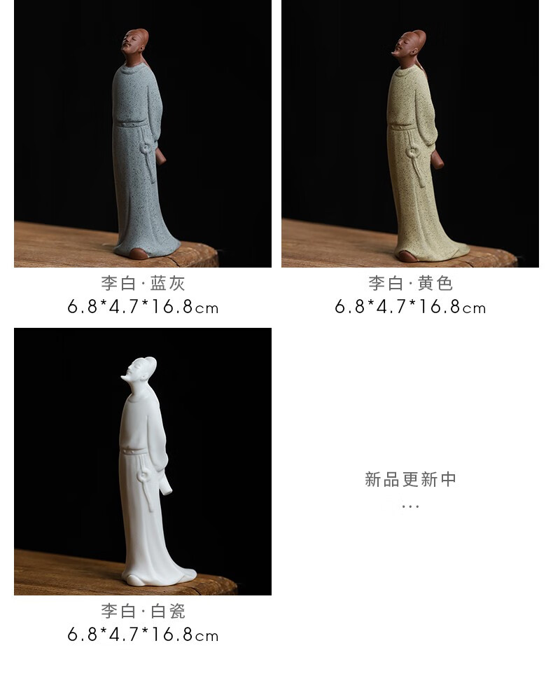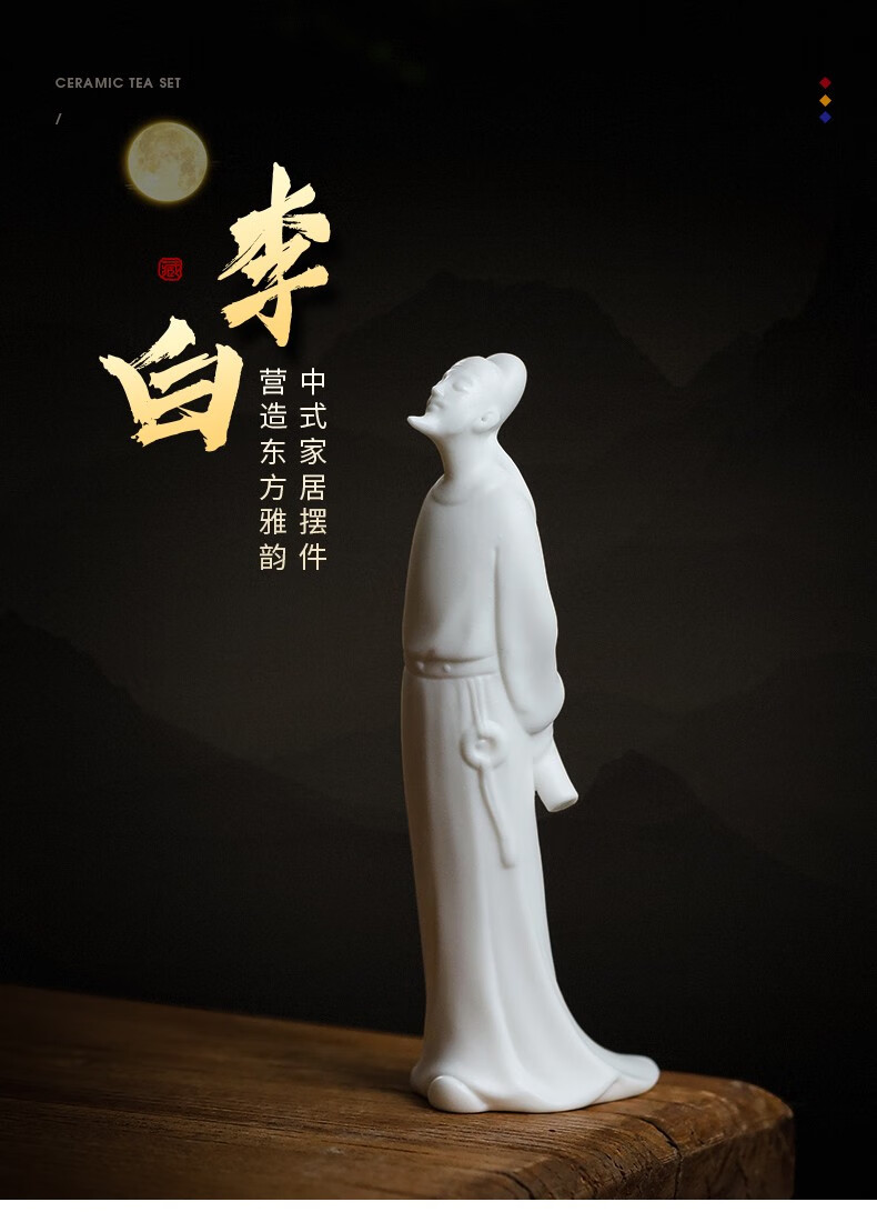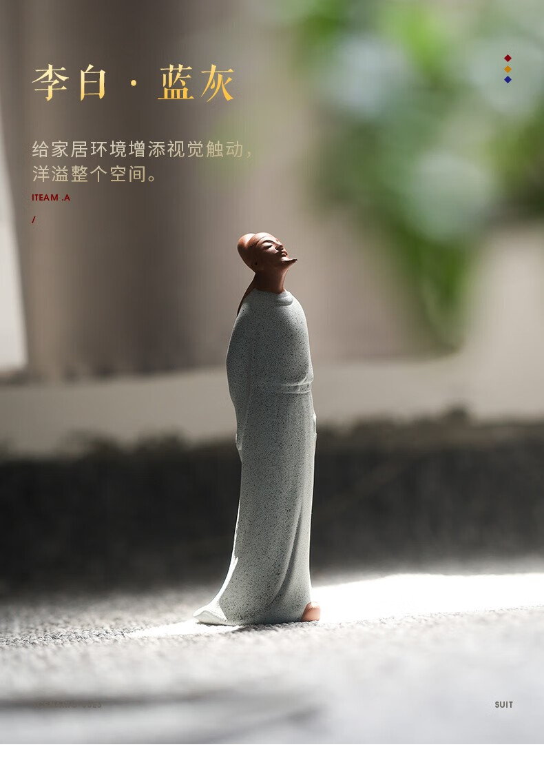 Fw Li Bai Statue Ancient Character Ceramic Sculpture Home Decoration Crafts Living Room Office Study Desktop Ornament Li Bai - Colored Sand Blue Gray Style