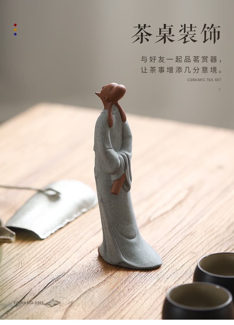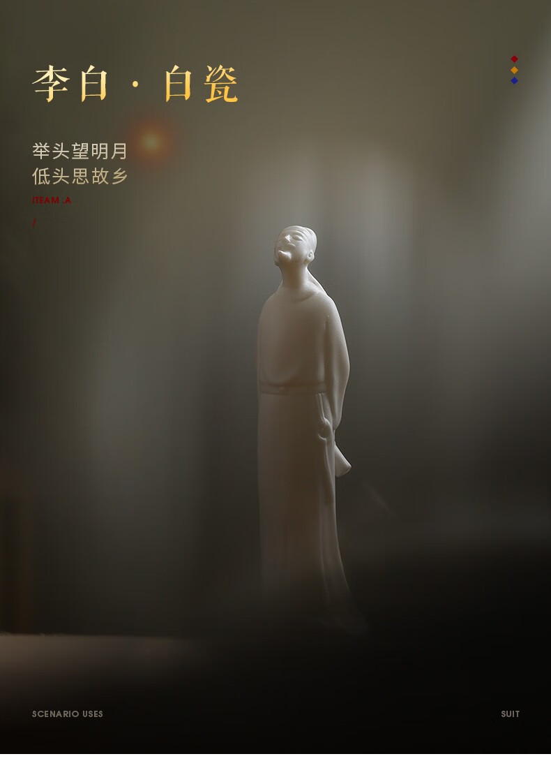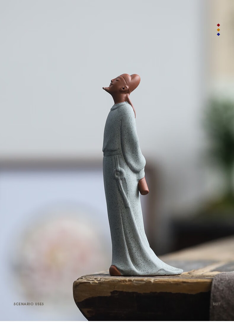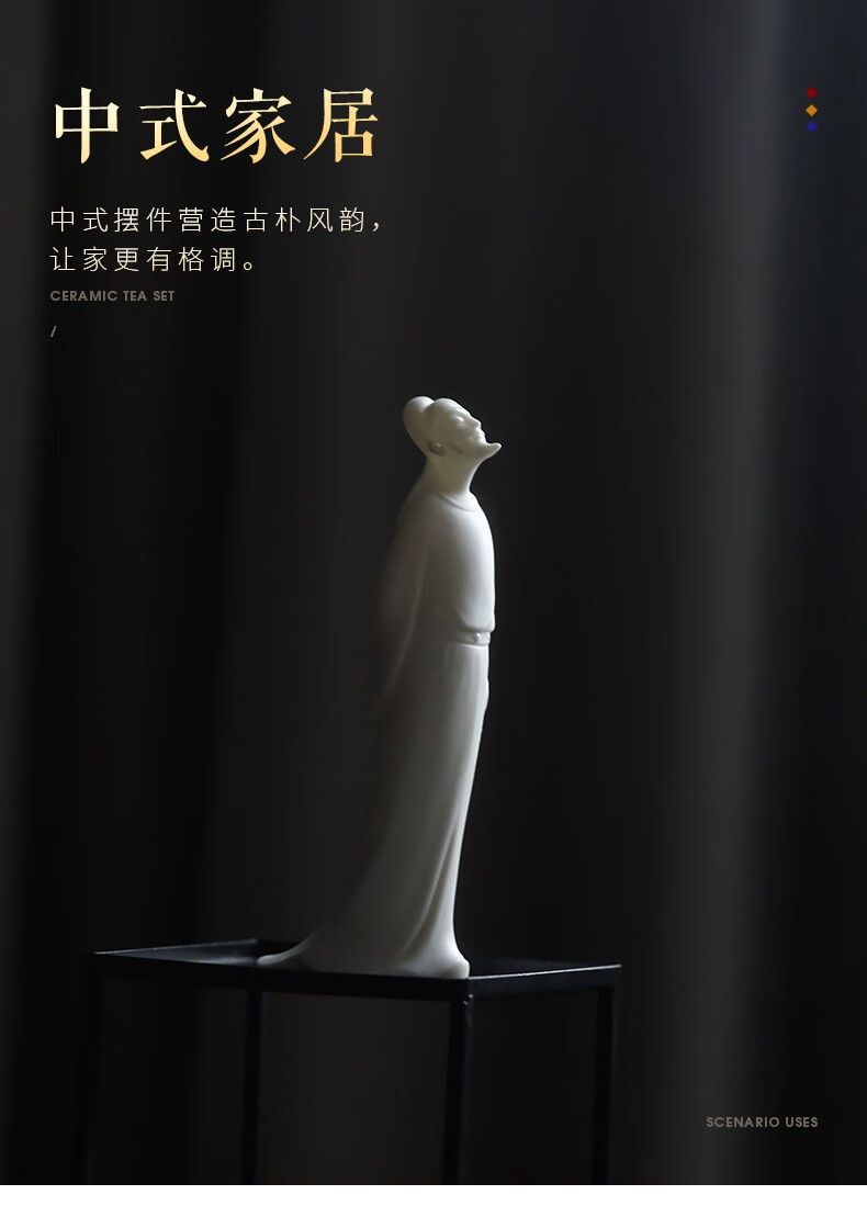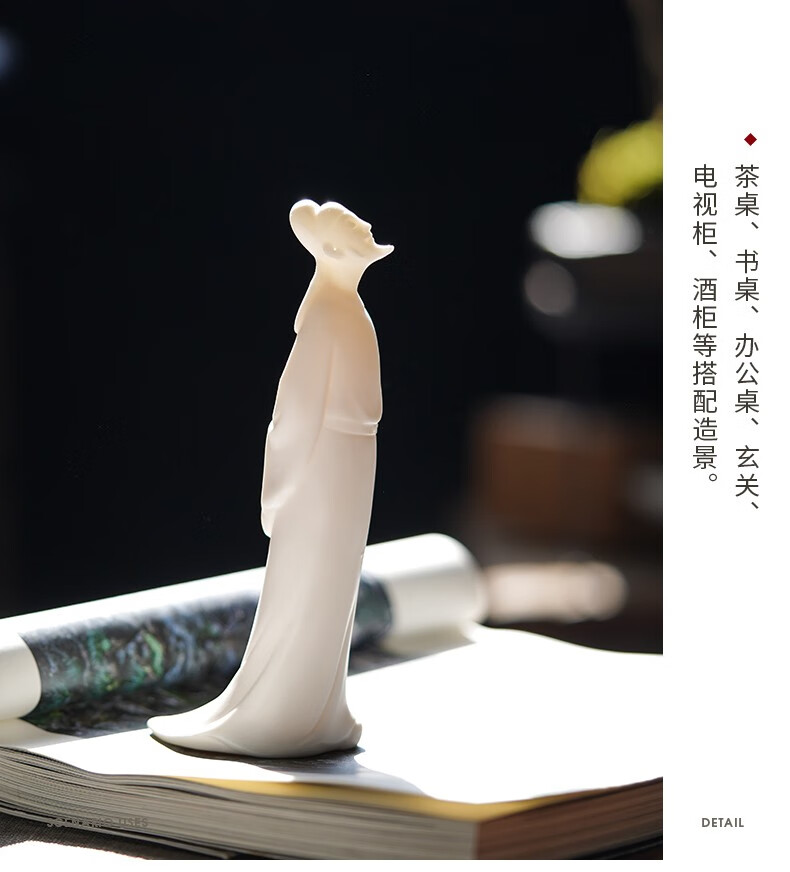 Fw Li Bai Statue Ancient Character Ceramic Sculpture Home Decoration Crafts Living Room Office Study Desktop Ornament Li Bai - Colored Sand Blue Gray Style