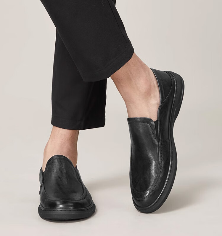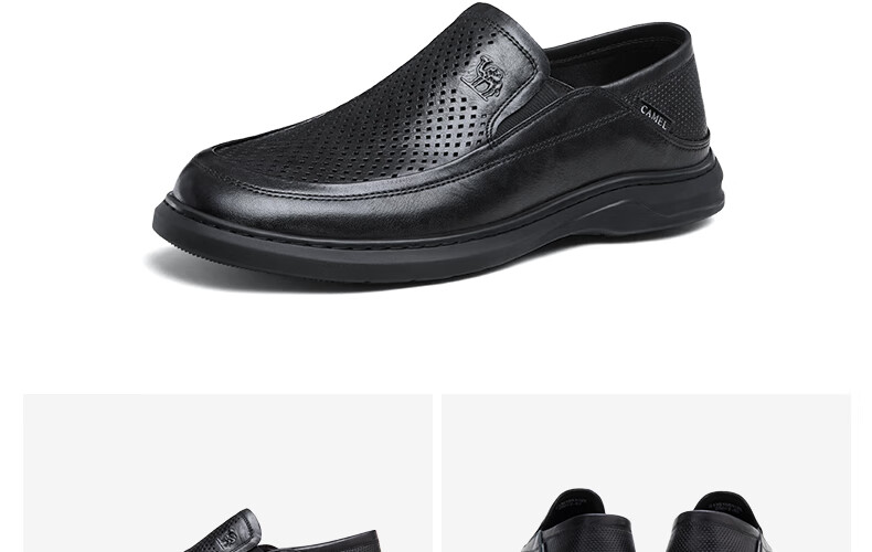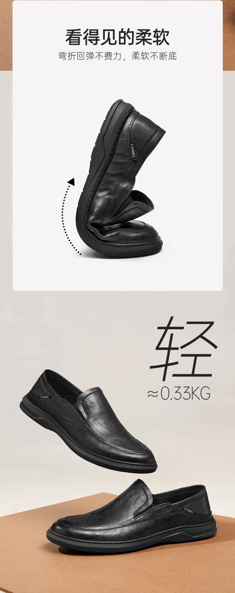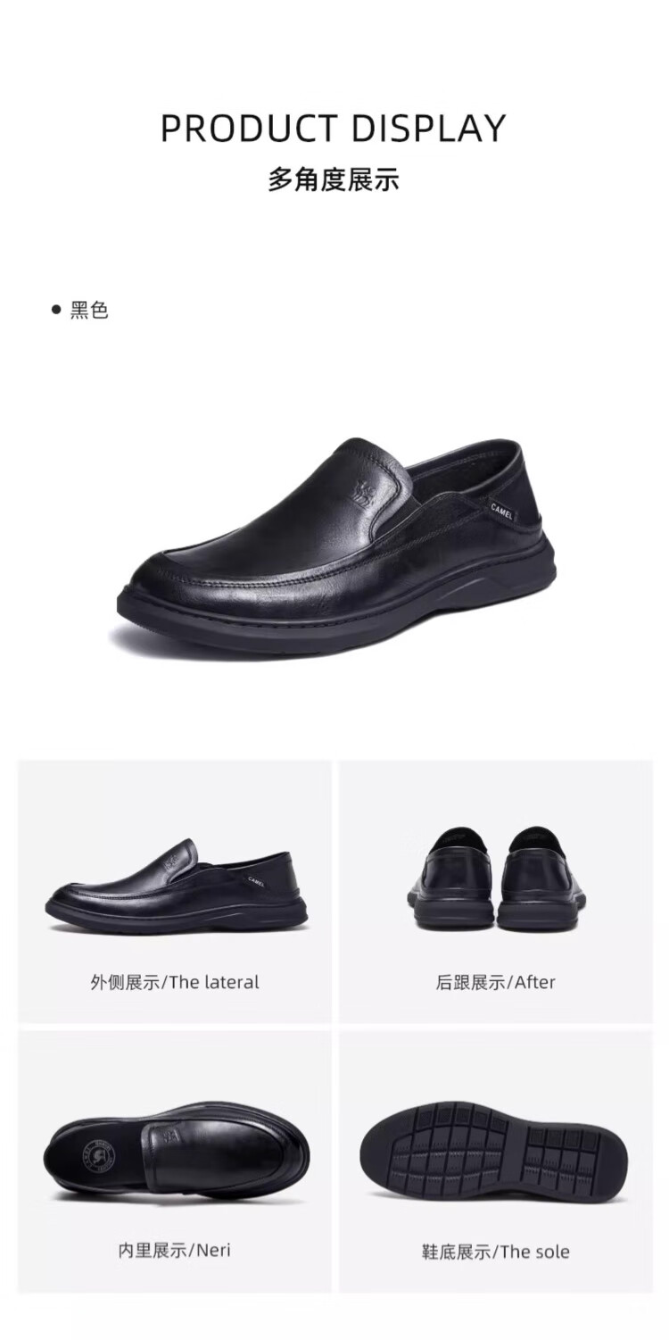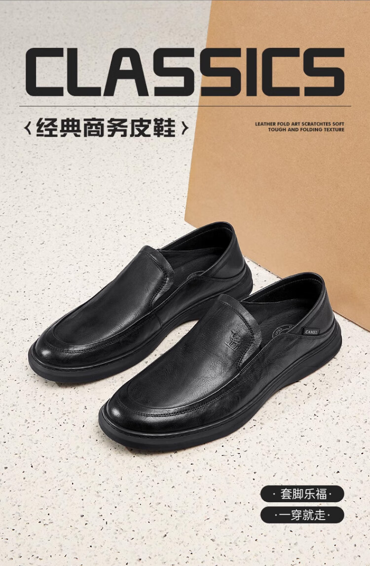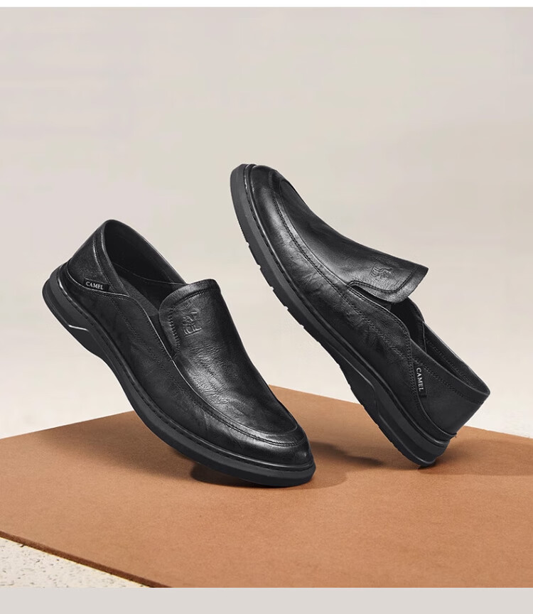 Camel (CAMEL) men's shoes autumn and winter genuine cowhide shoes breathable business casual shoes high-end slip-on middle-aged dad leather shoes G13S155102 black 43