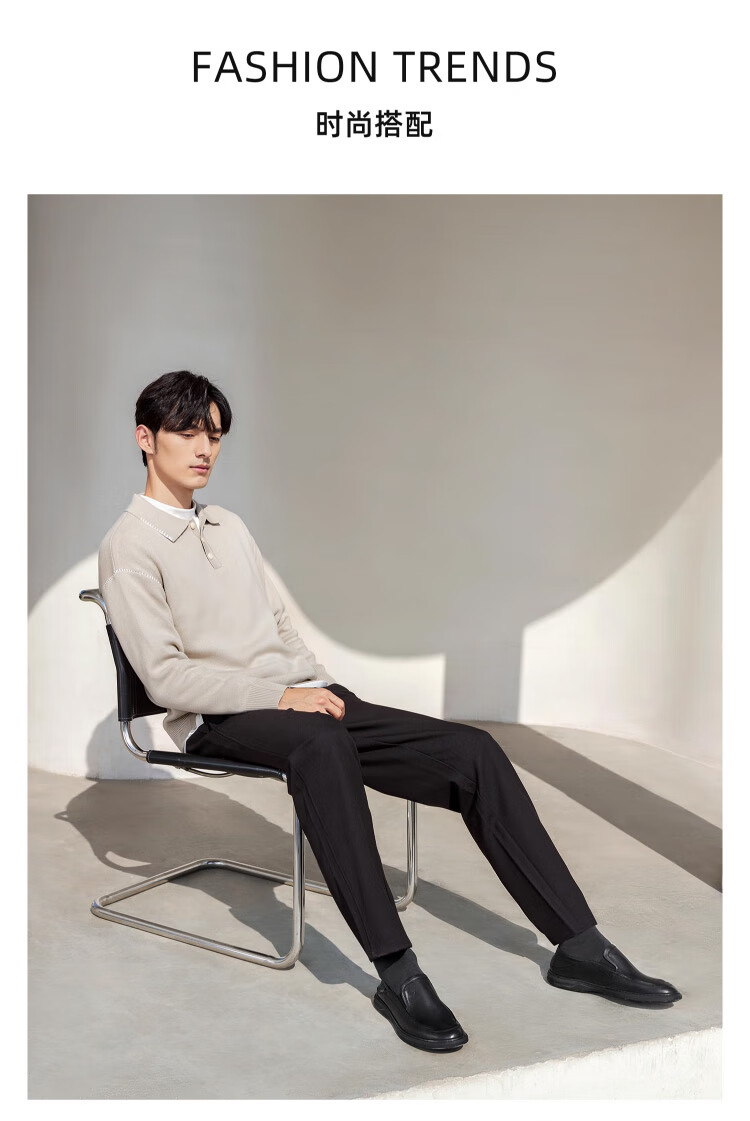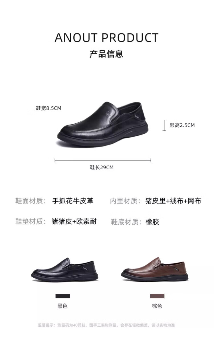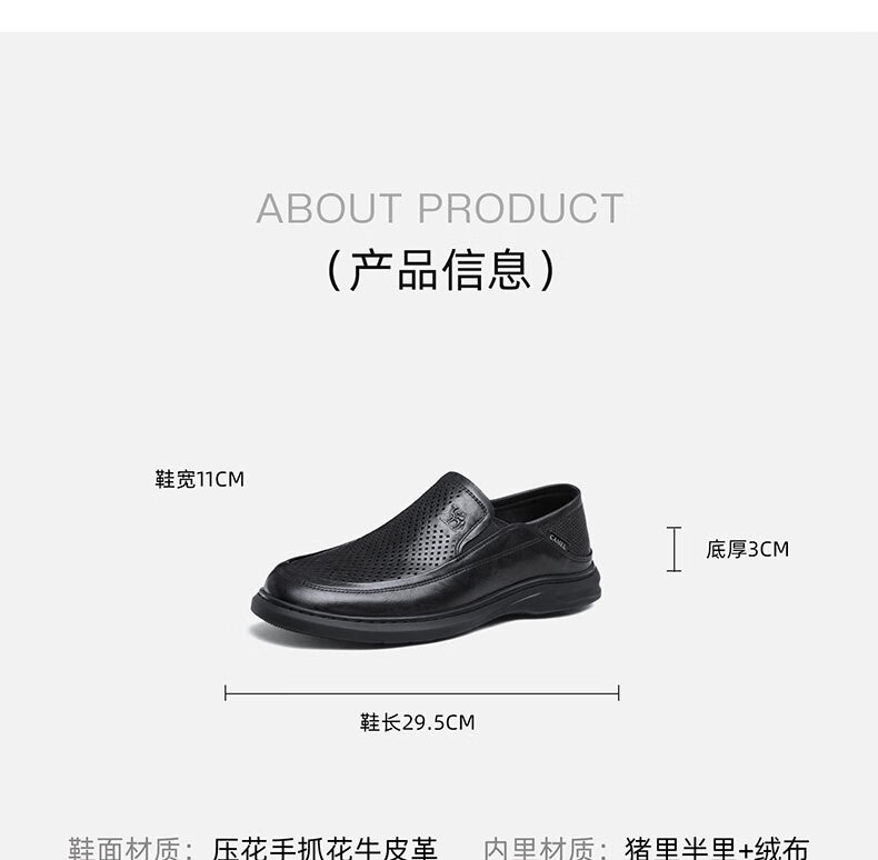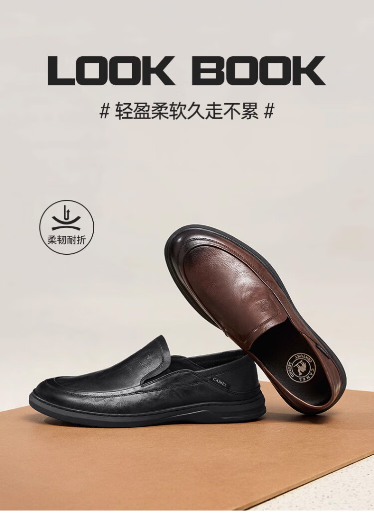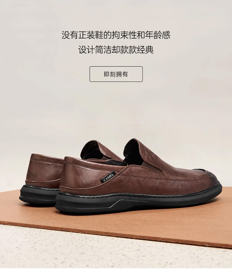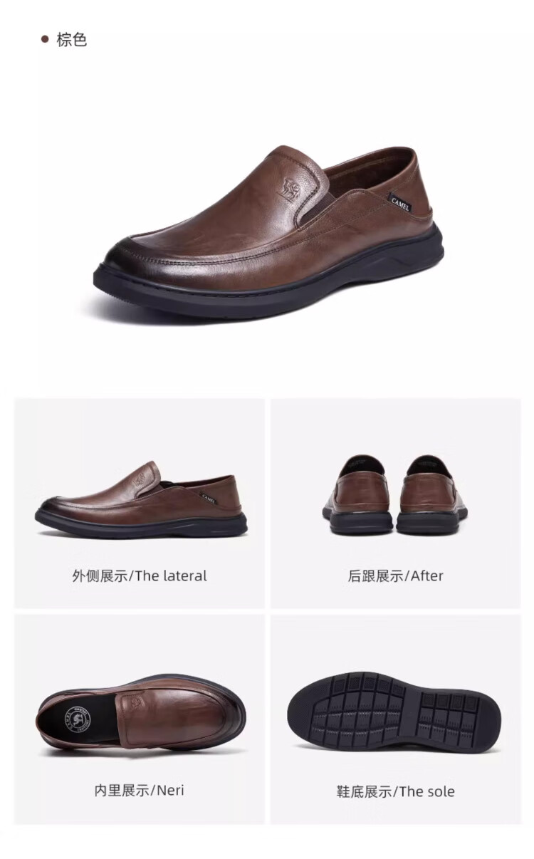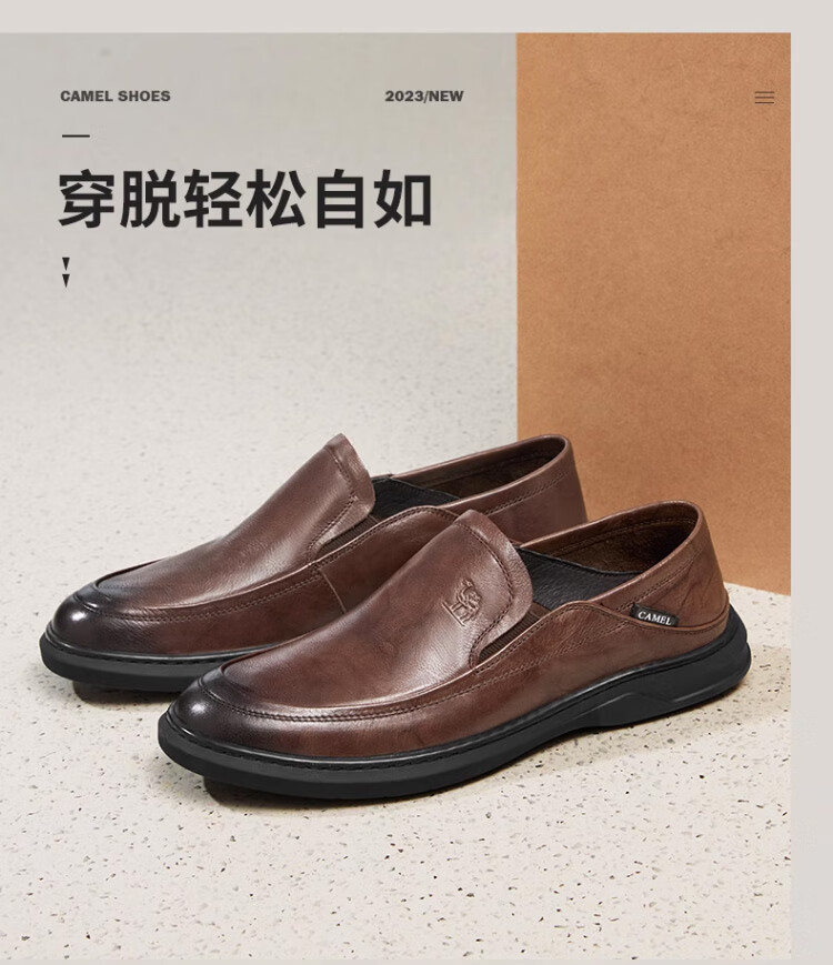 Camel (CAMEL) men's shoes autumn and winter genuine cowhide shoes breathable business casual shoes high-end slip-on middle-aged dad leather shoes G13S155102 black 43