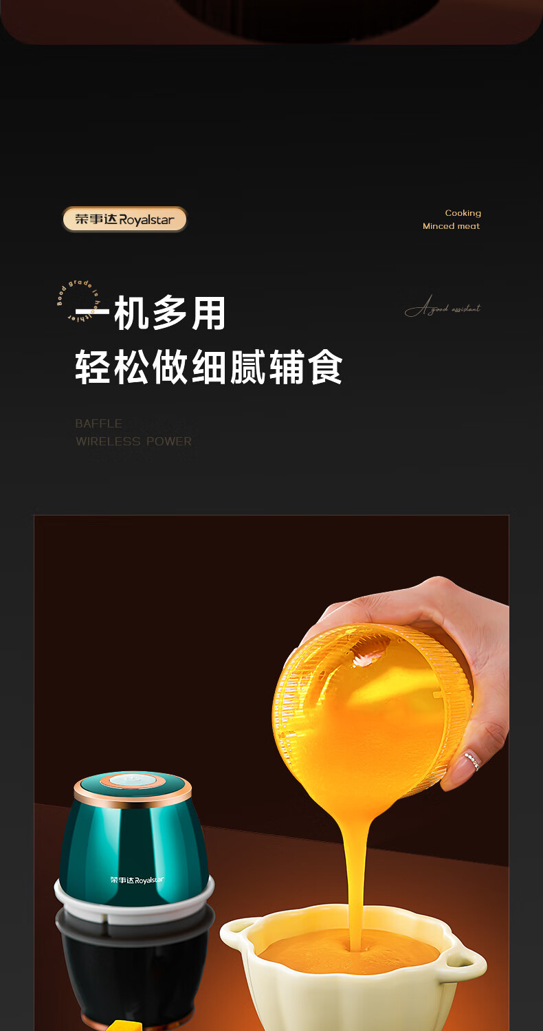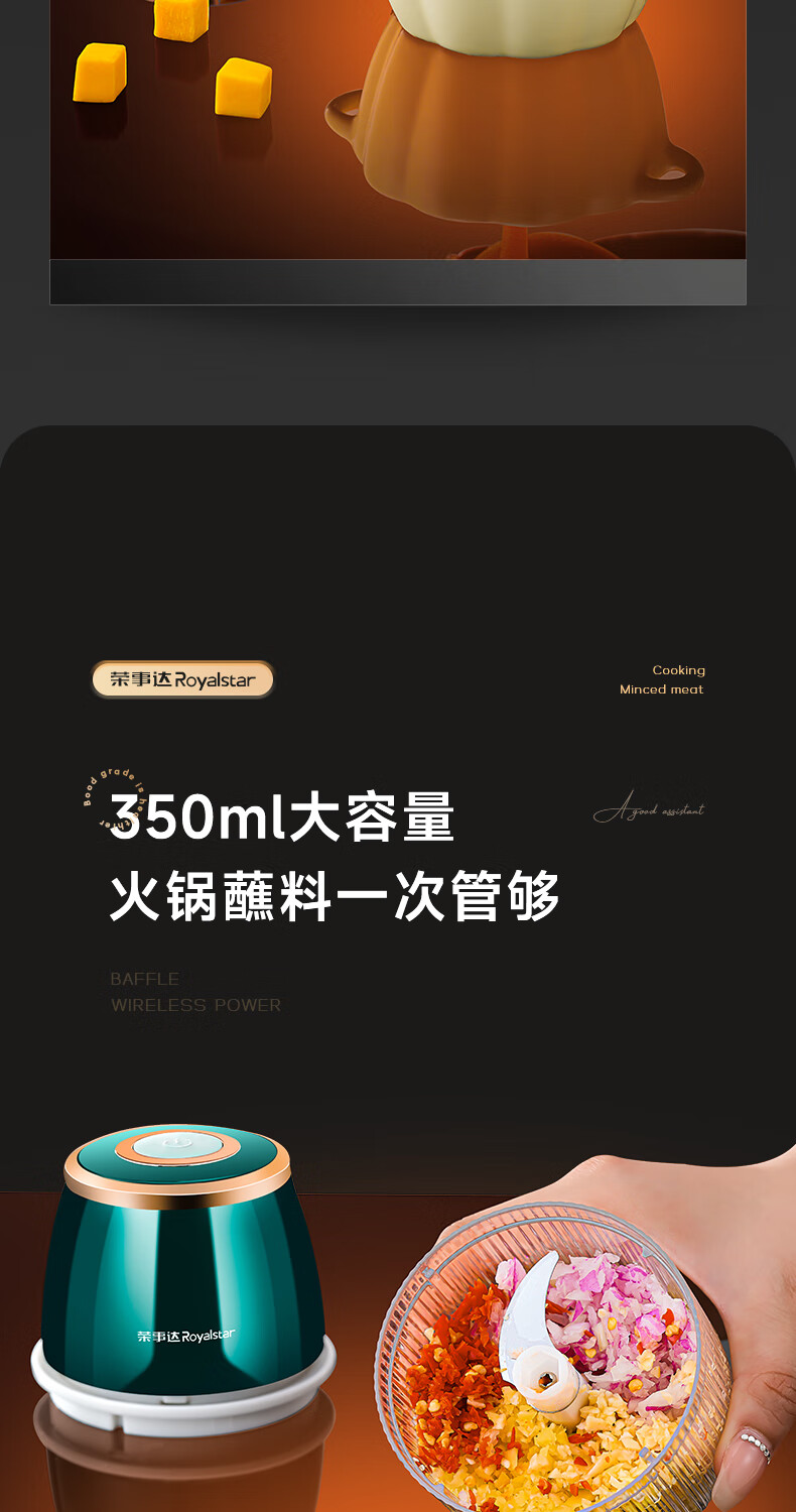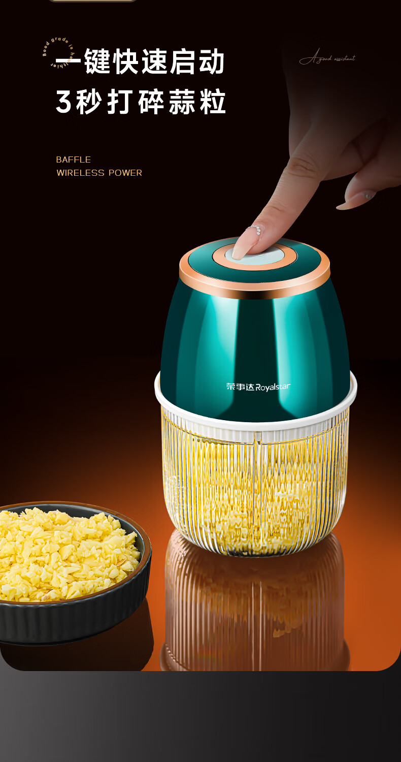 Royalstar Electric Garlic Pounder Small Meat Grinder Household Garlic Puller Garlic Beater Blender Garlic Press Garlic Stirrer Garlic Mash Standard Model 150ml One-button Start Easy to Clean