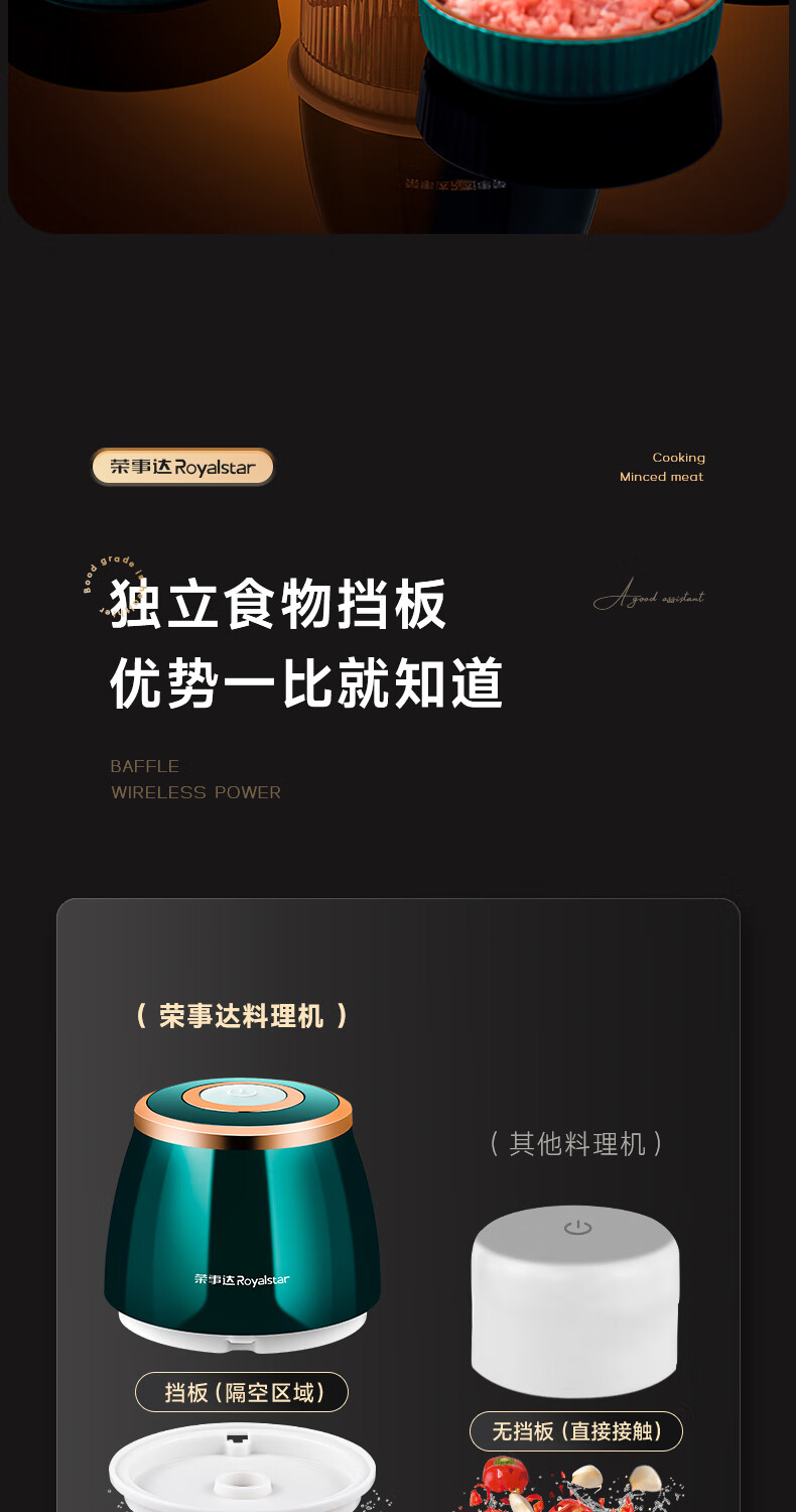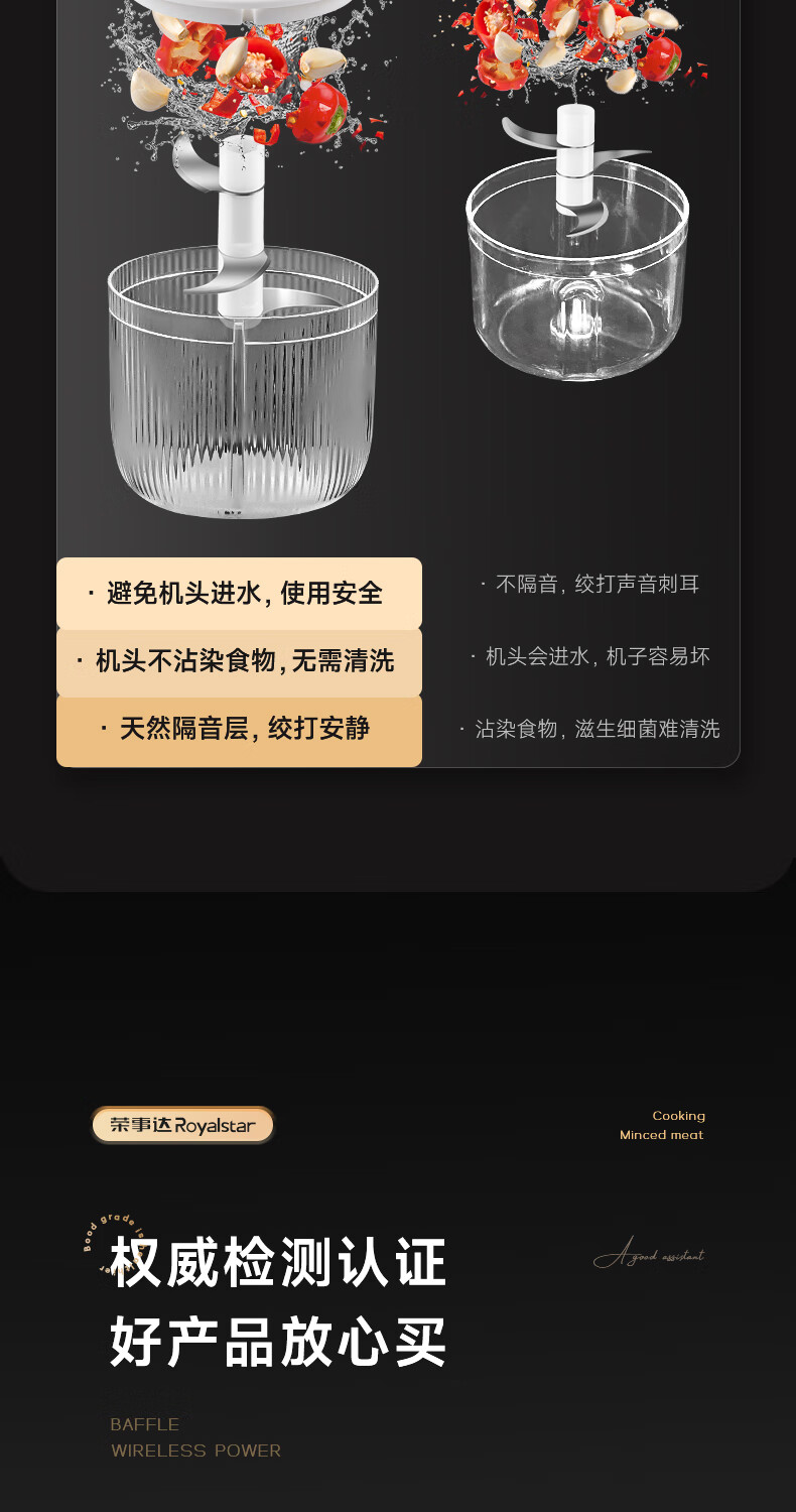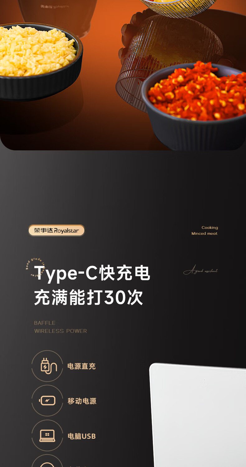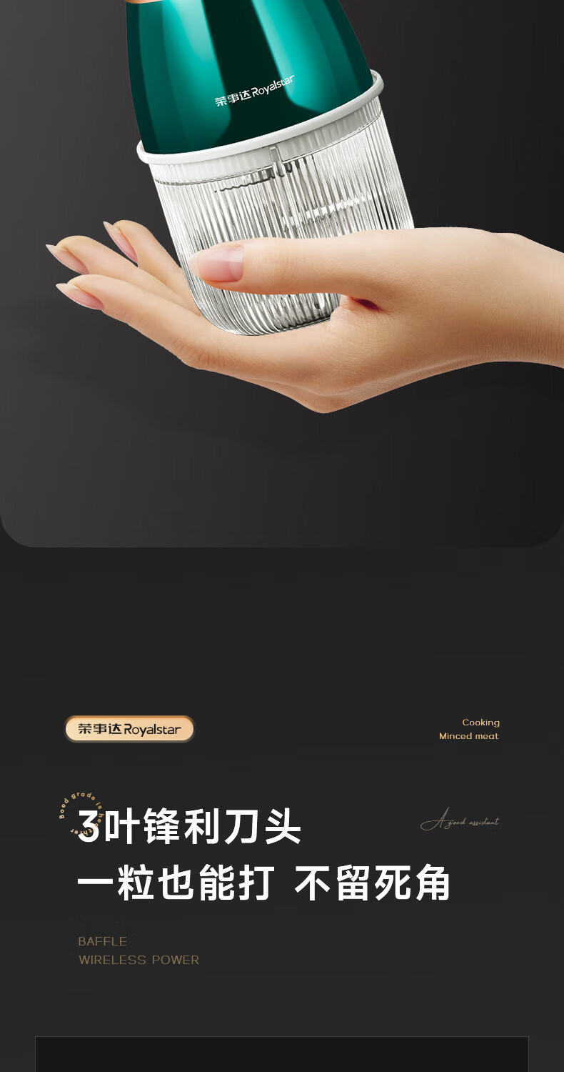 Royalstar Electric Garlic Pounder Small Meat Grinder Household Garlic Puller Garlic Beater Blender Garlic Press Garlic Stirrer Garlic Mash Standard Model 150ml One-button Start Easy to Clean