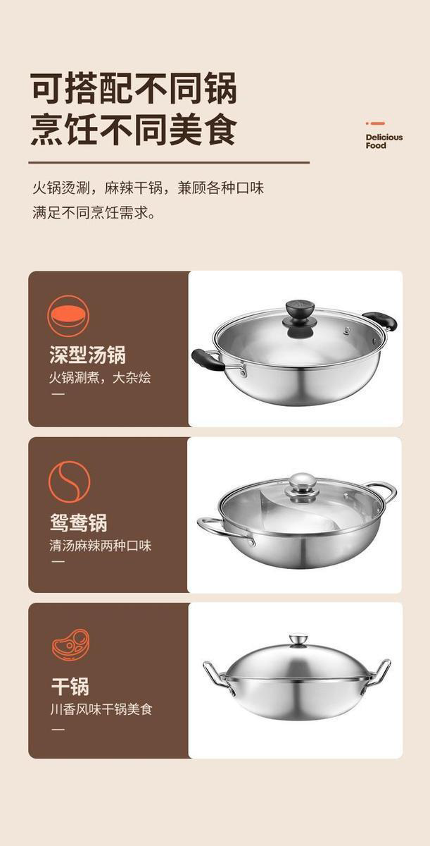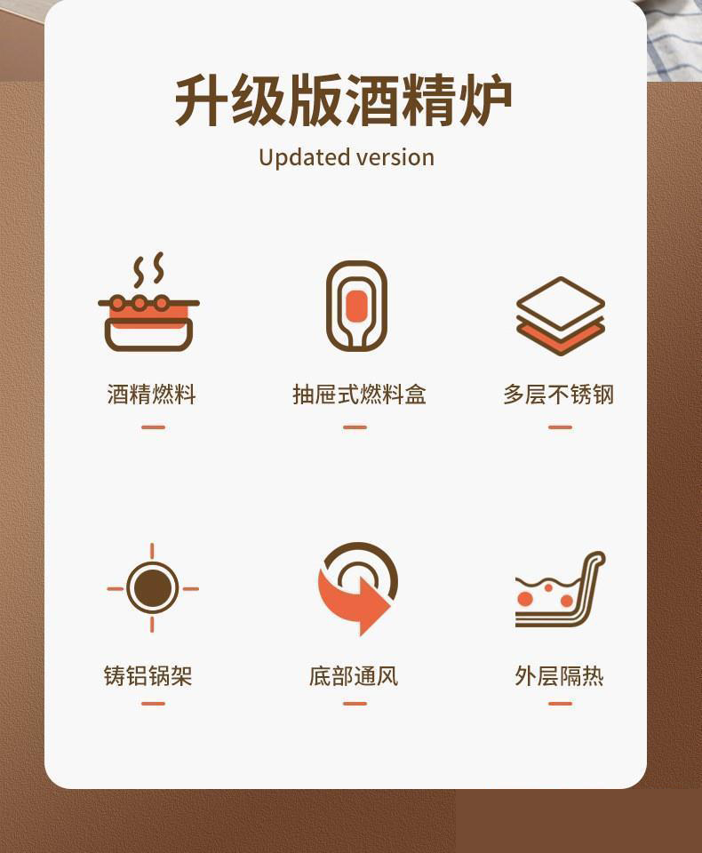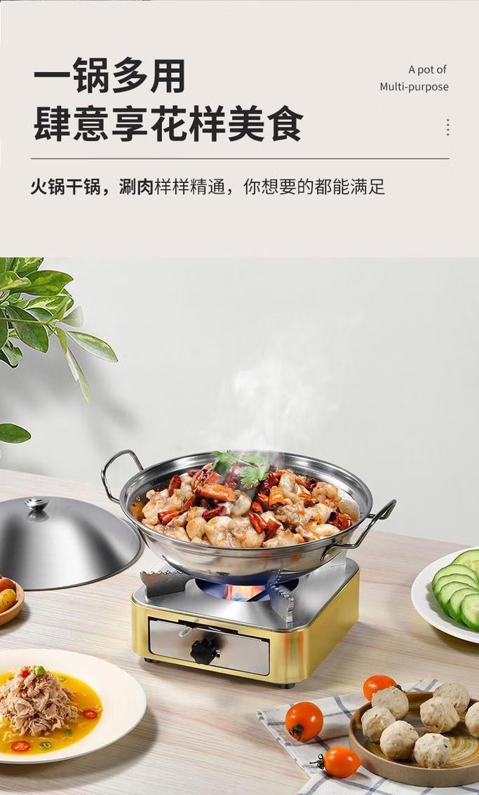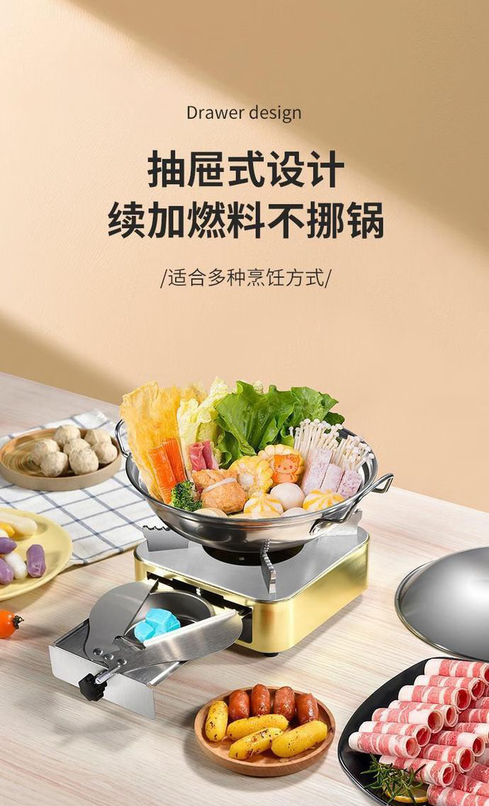 Runpeng stainless steel drawer-type alcohol stove household banquet dry pot base pot restaurant hotel commercial small hot pot original color 18.5cm