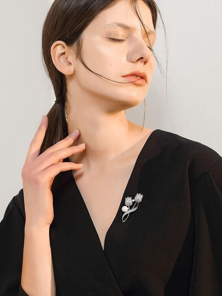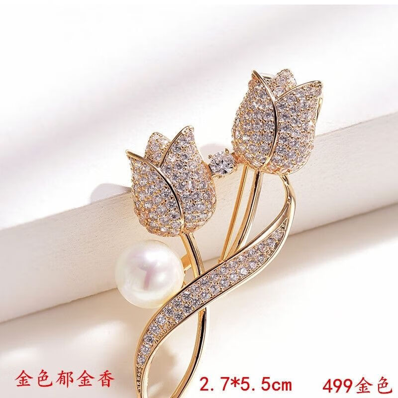 He Niang Rose Brooch Summer Suit Suit Women's Corsage Brooch Light Luxurious Autumn and Winter Brooch Gold