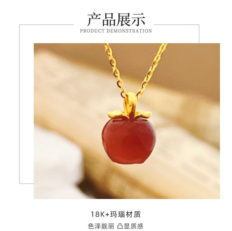 CHINA GOLD Apple Pendant 18K Gold Ping An Fruit Agate Pendant Apple Pendant Christmas Gift for Wife and Girlfriend Birthday Gift