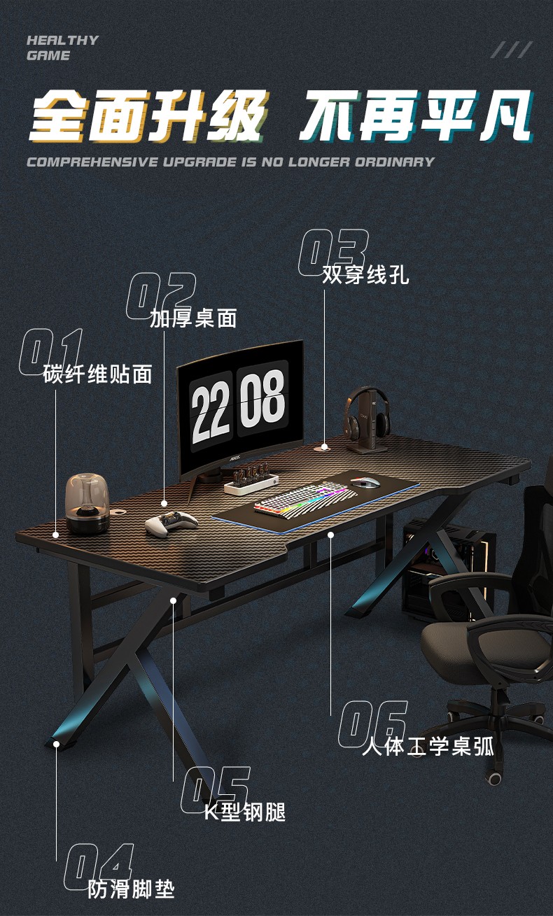 Jinxi computer desk desktop home e-sports table and chair set office desk simple desk game table study writing table 140*60 single table carbon fiber texture desktop
