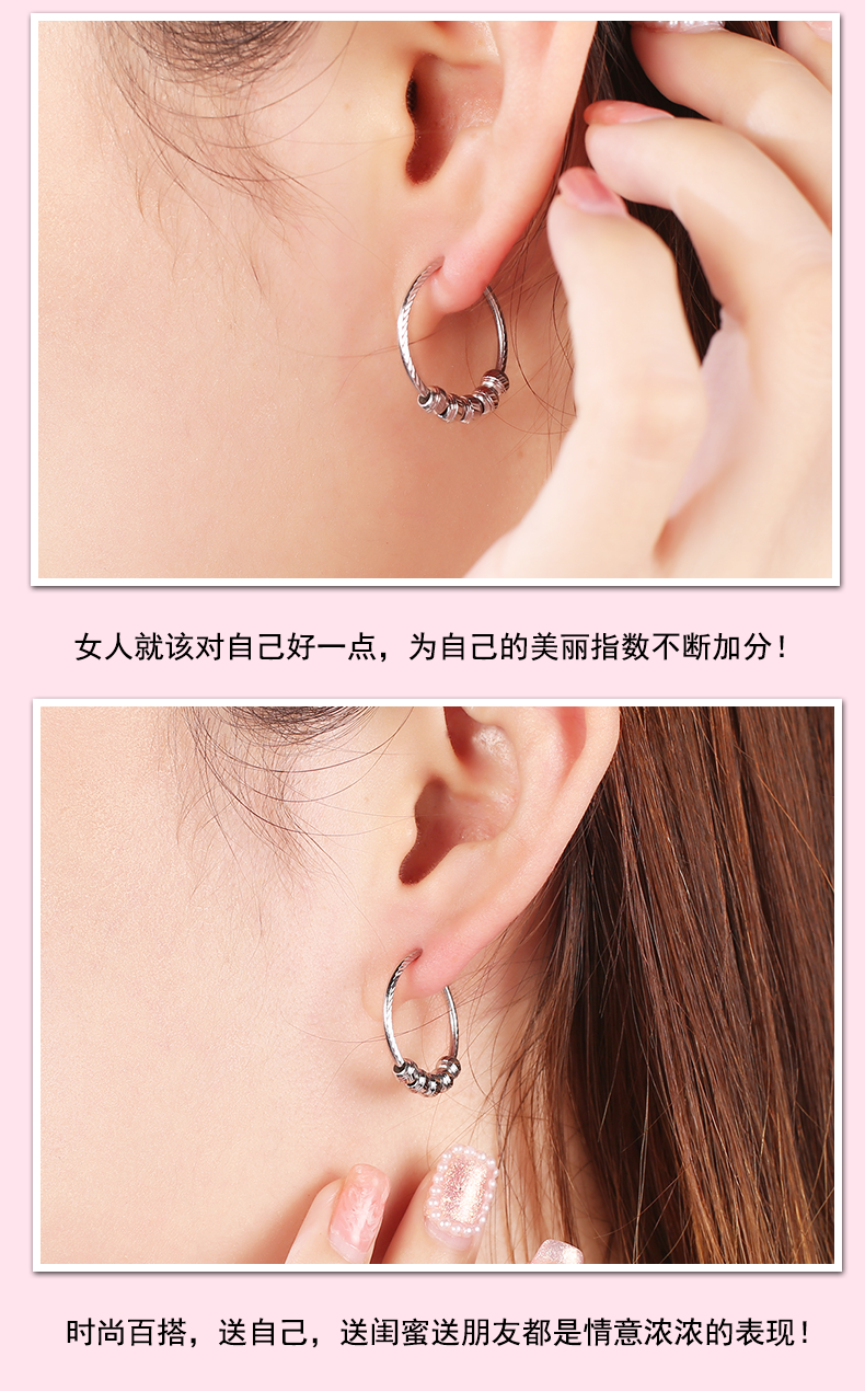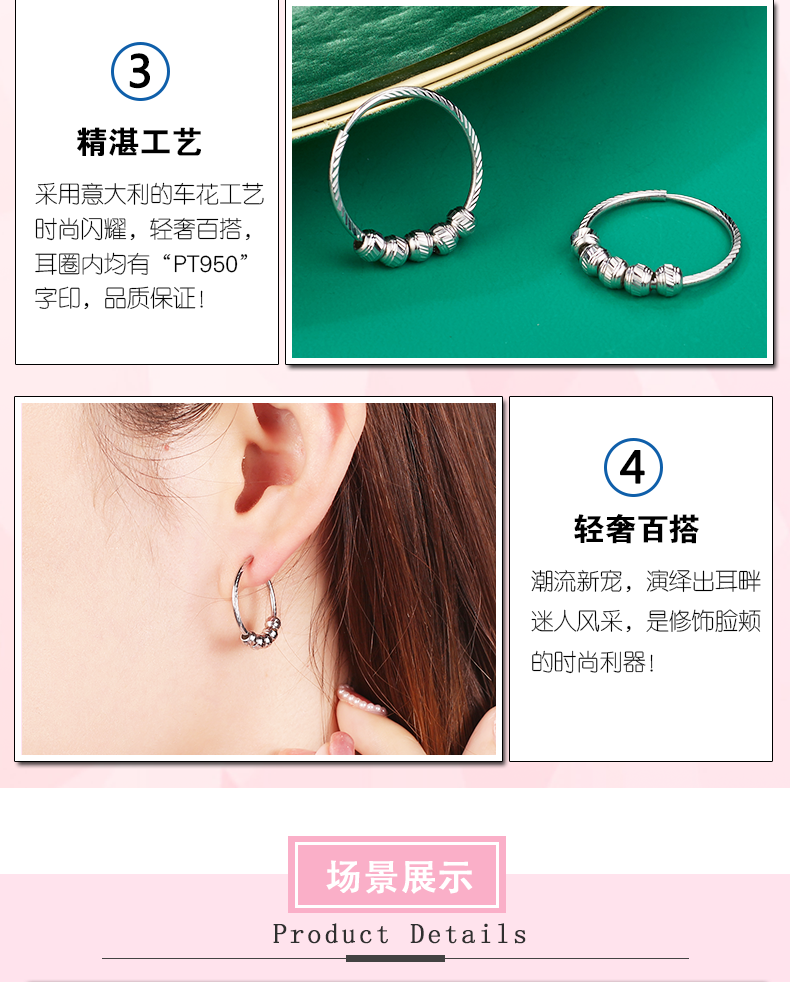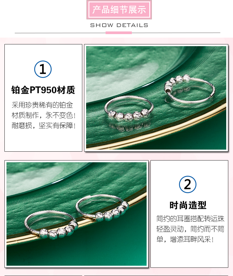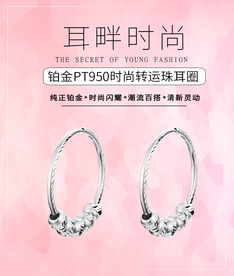 Yuan Shengfu's new PT950 transfer bead hoop platinum earrings platinum earrings 3.19 grams inner diameter about 2cm