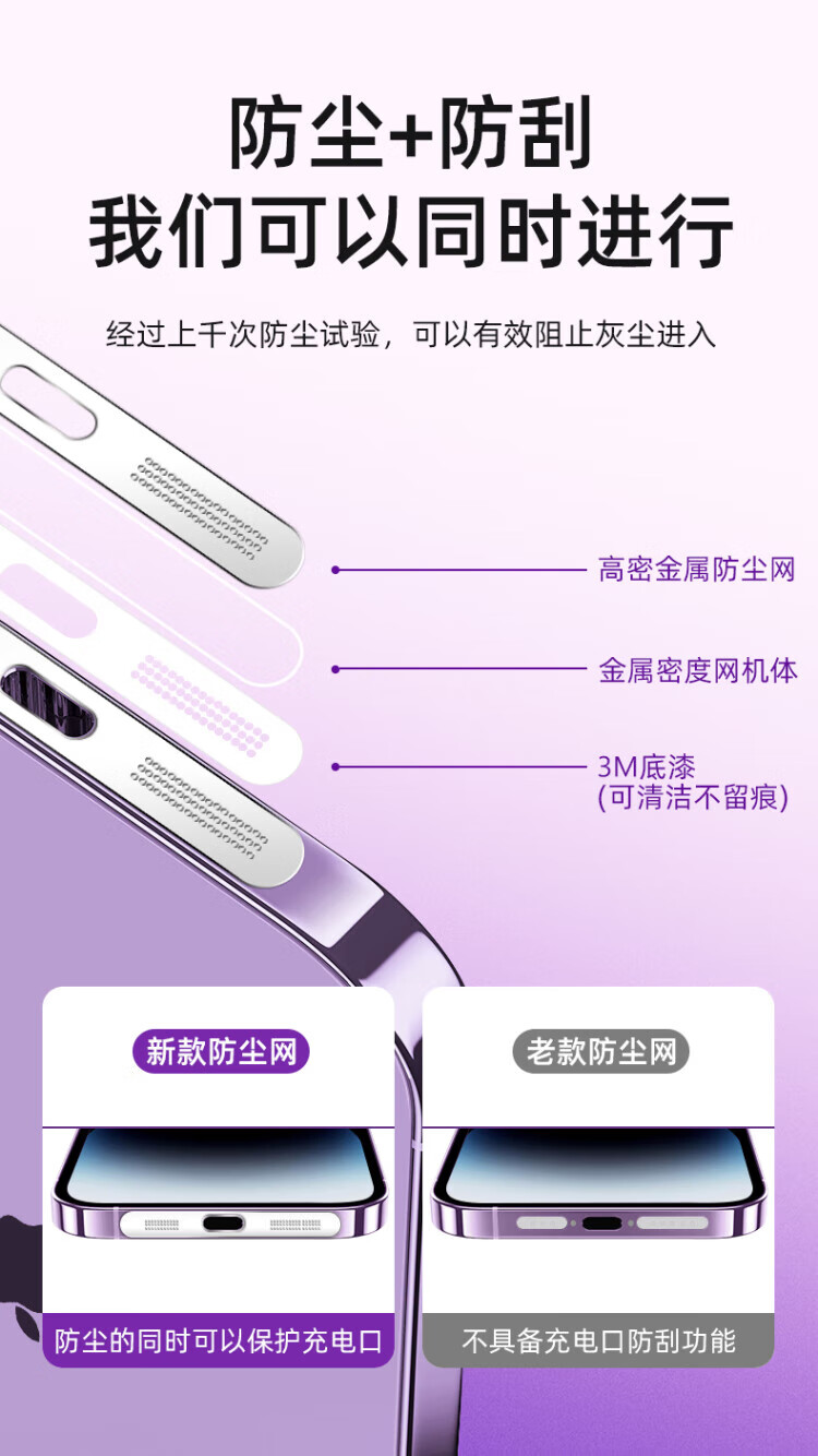 Suitable for Apple 14 mobile phone dustproof net 13promax speaker dustproof sticker 12 charging port speaker protective film metal integrated accessories microphone charging hole anti-scratch silver round 1 piece + tool + 5 dustproof plugs integrated dustproof net