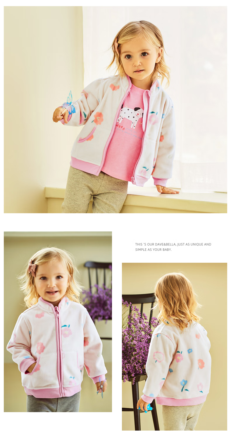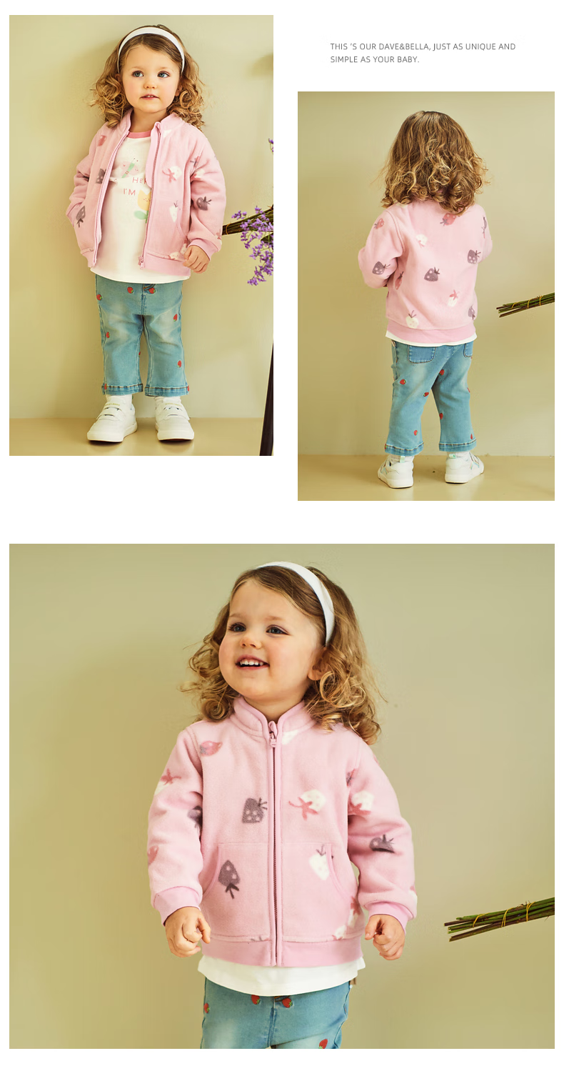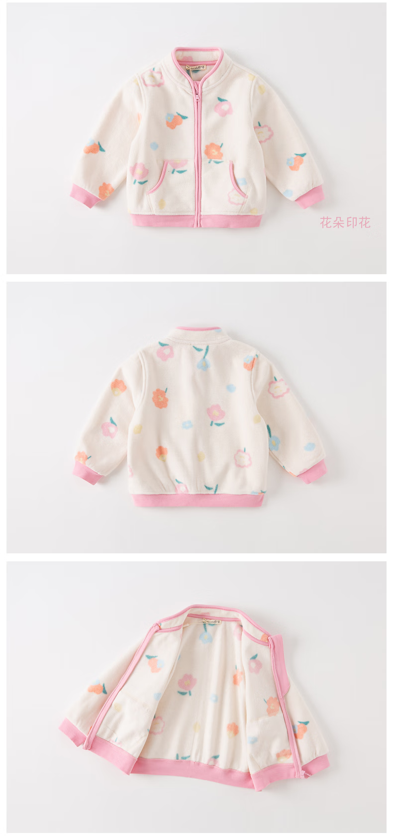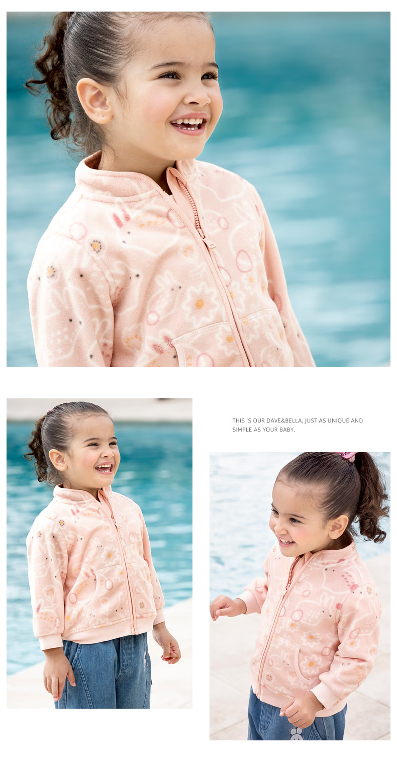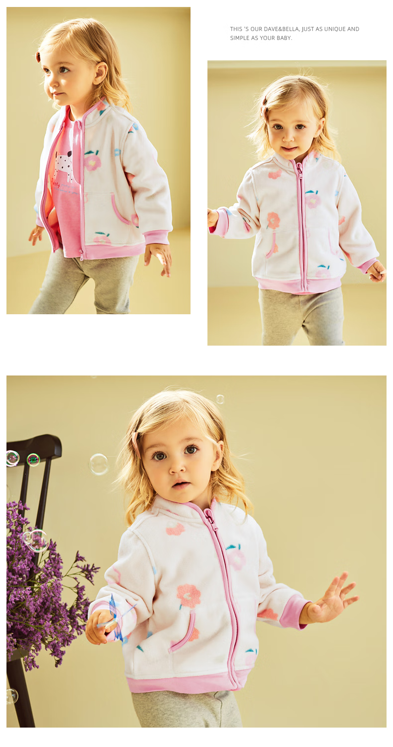 DAVE&BELLA Children's Clothes Boys' Jackets Girls' Polar Fleece Tops Children's Clothes Autumn Jackets Baby Outerwear 2025 New Flower Print 100 cm (recommended height 90-100cm)