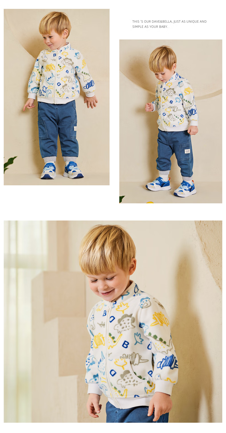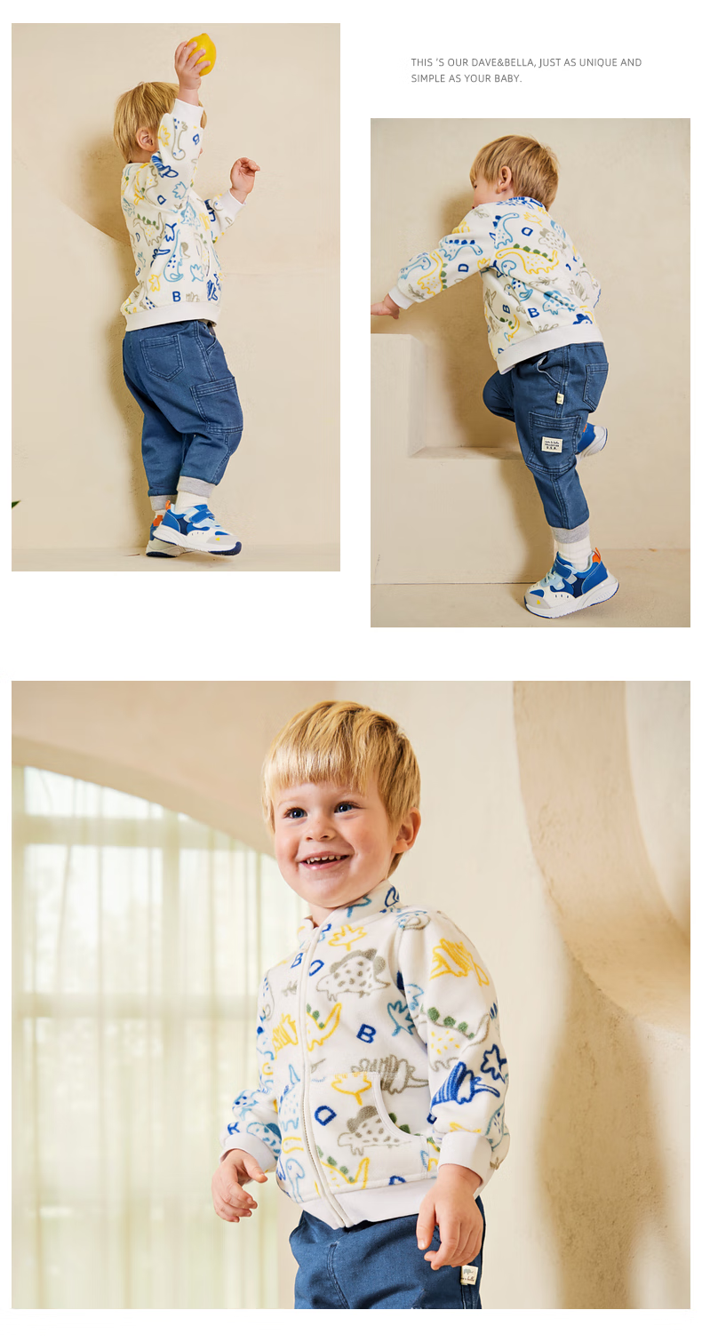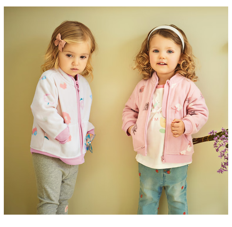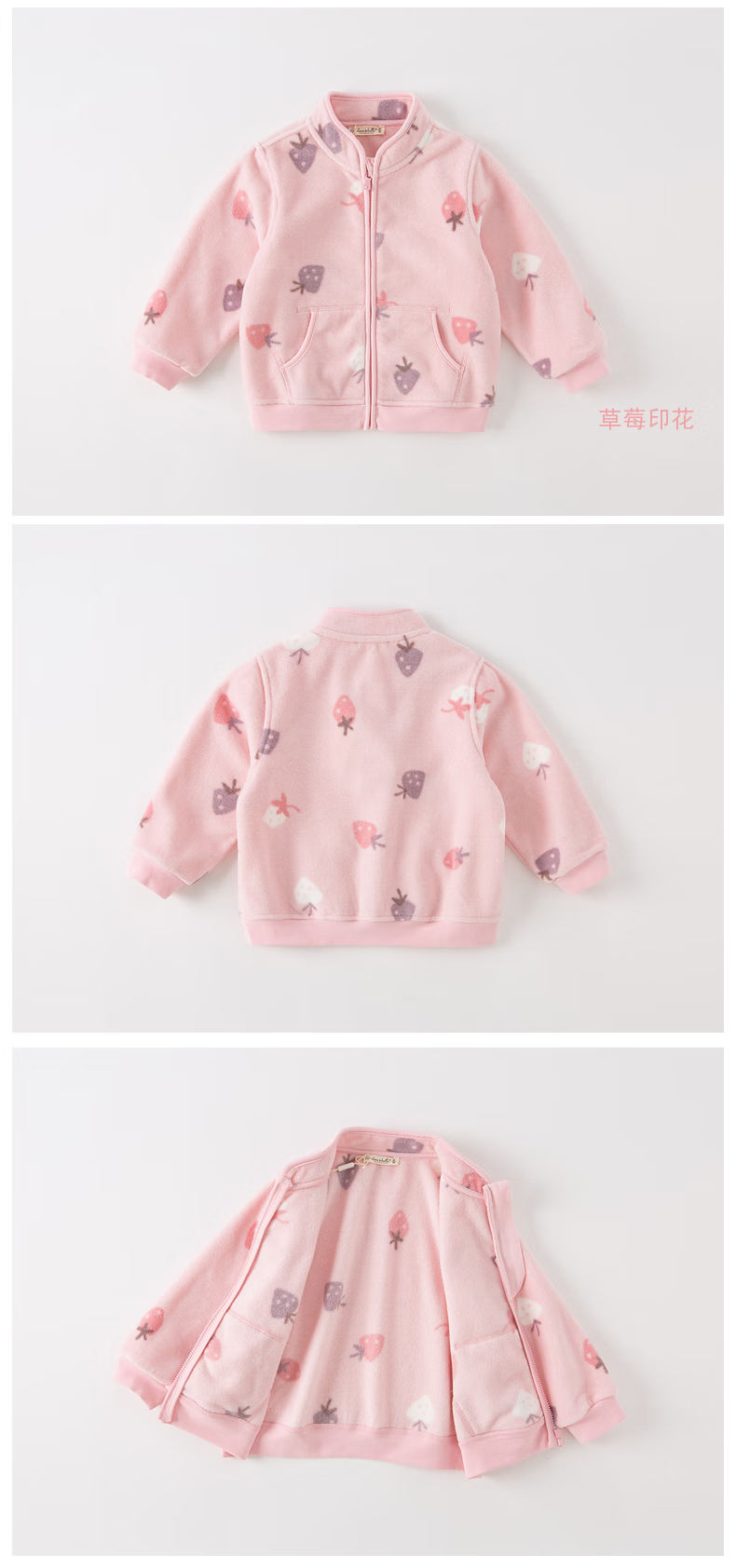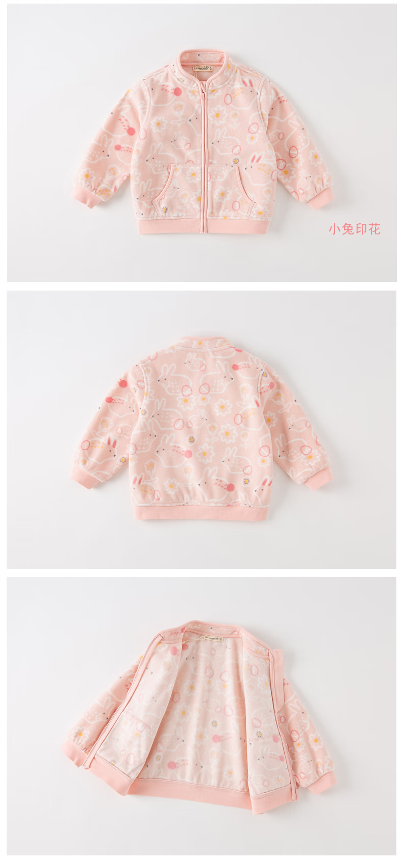 DAVE&BELLA Children's Clothes Boys' Jackets Girls' Polar Fleece Tops Children's Clothes Autumn Jackets Baby Outerwear 2025 New Flower Print 100 cm (recommended height 90-100cm)