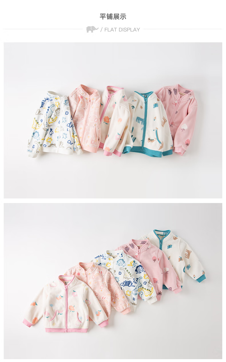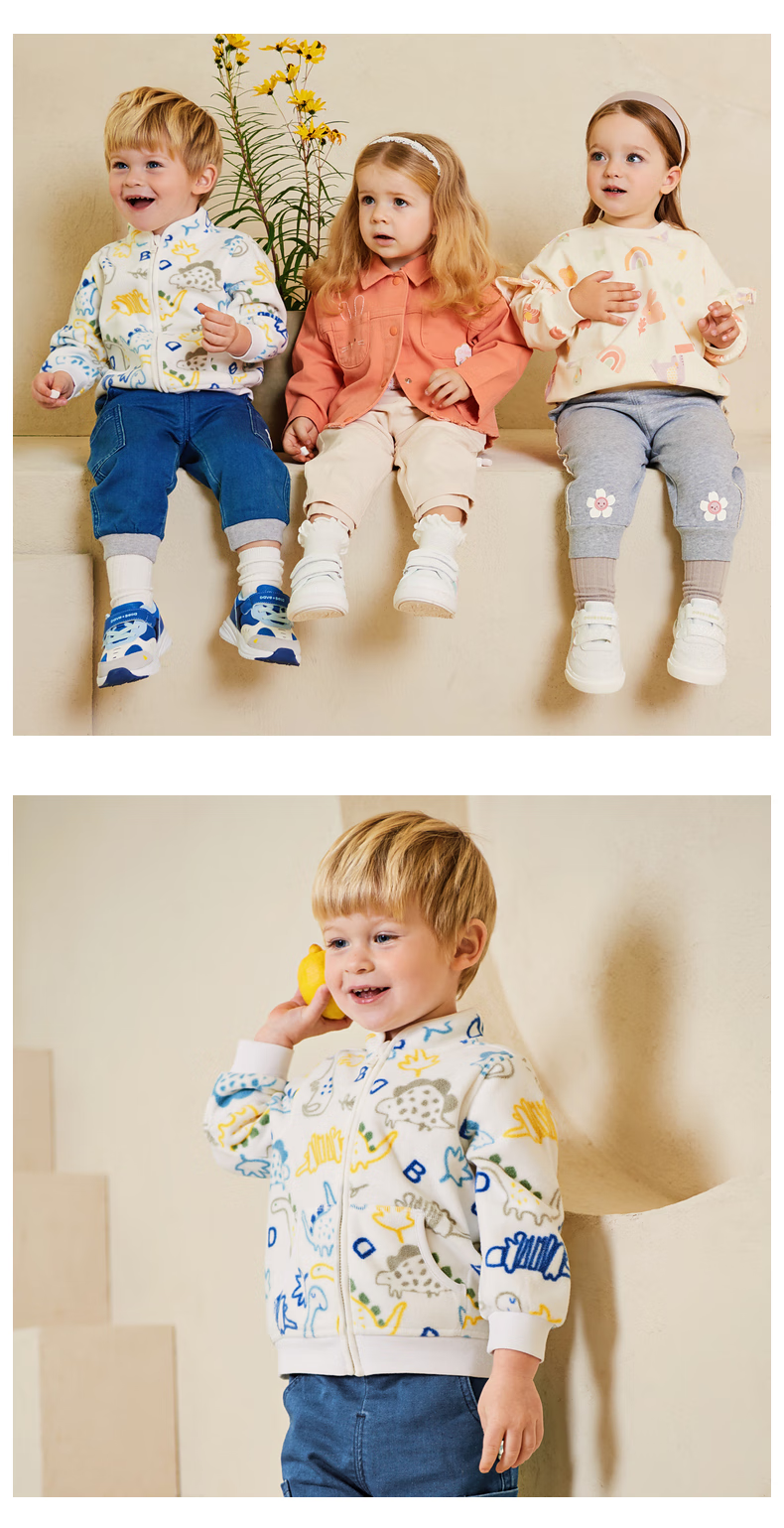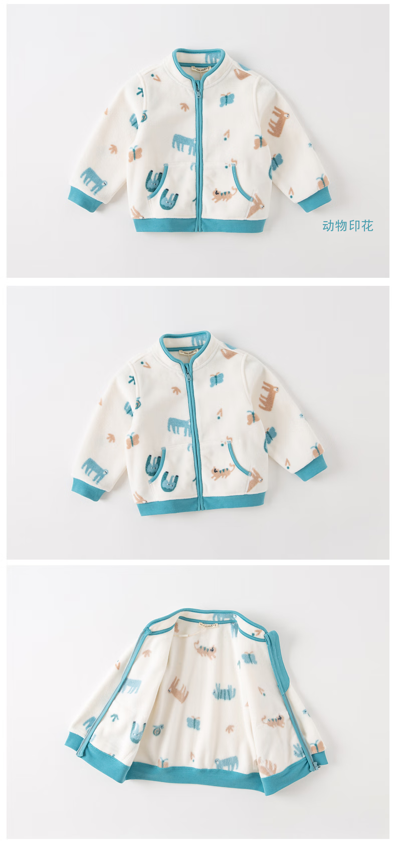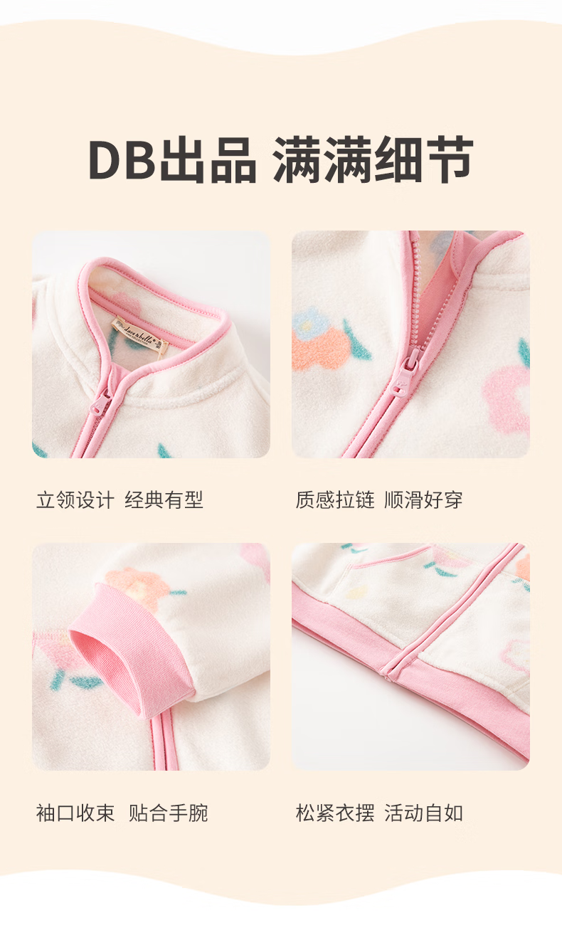 DAVE&BELLA Children's Clothes Boys' Jackets Girls' Polar Fleece Tops Children's Clothes Autumn Jackets Baby Outerwear 2025 New Flower Print 100 cm (recommended height 90-100cm)