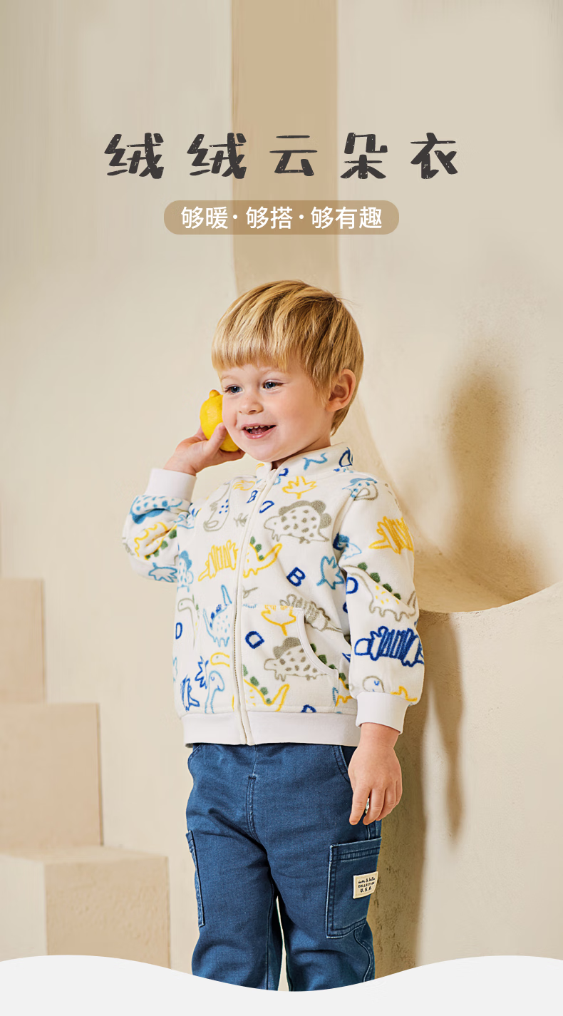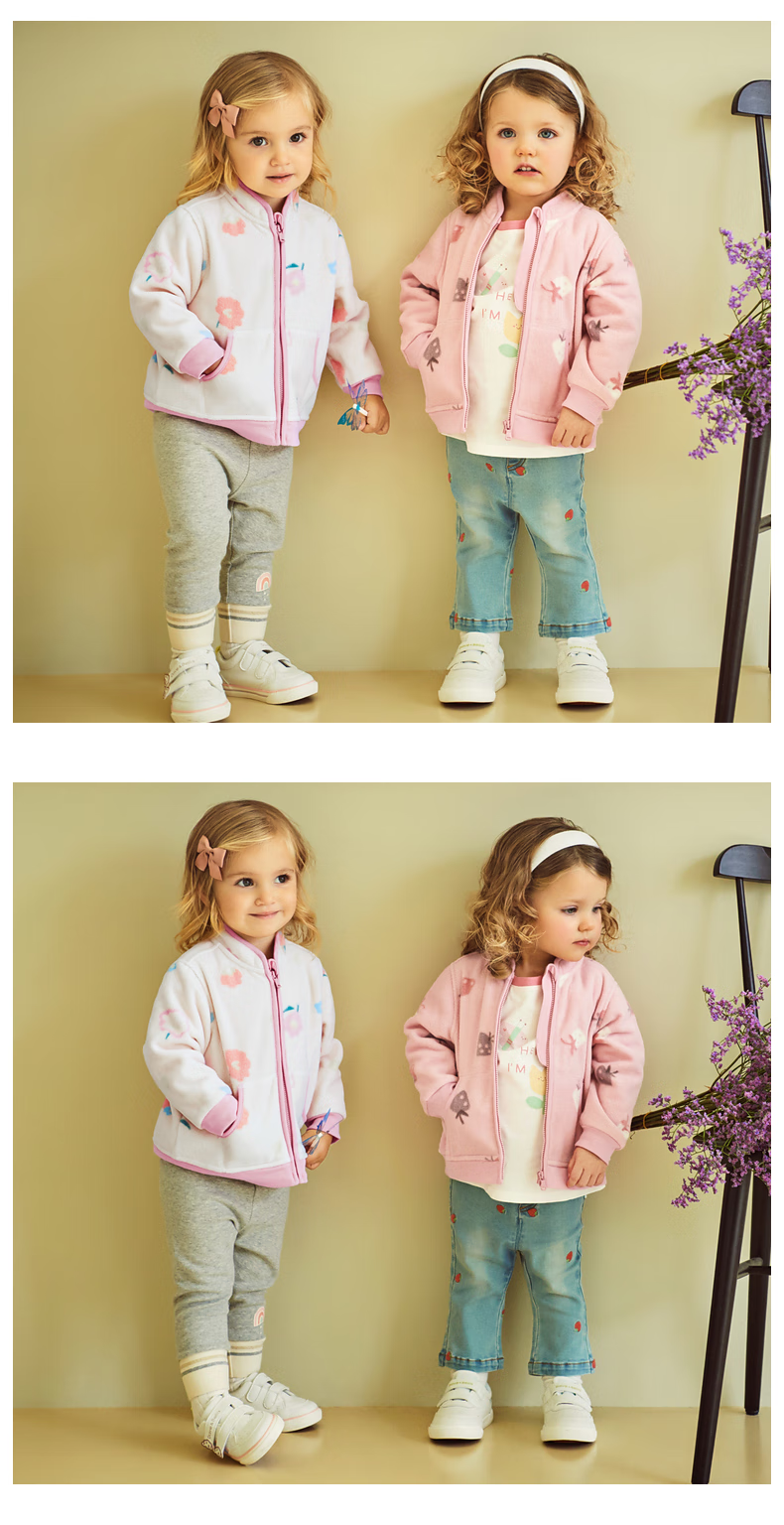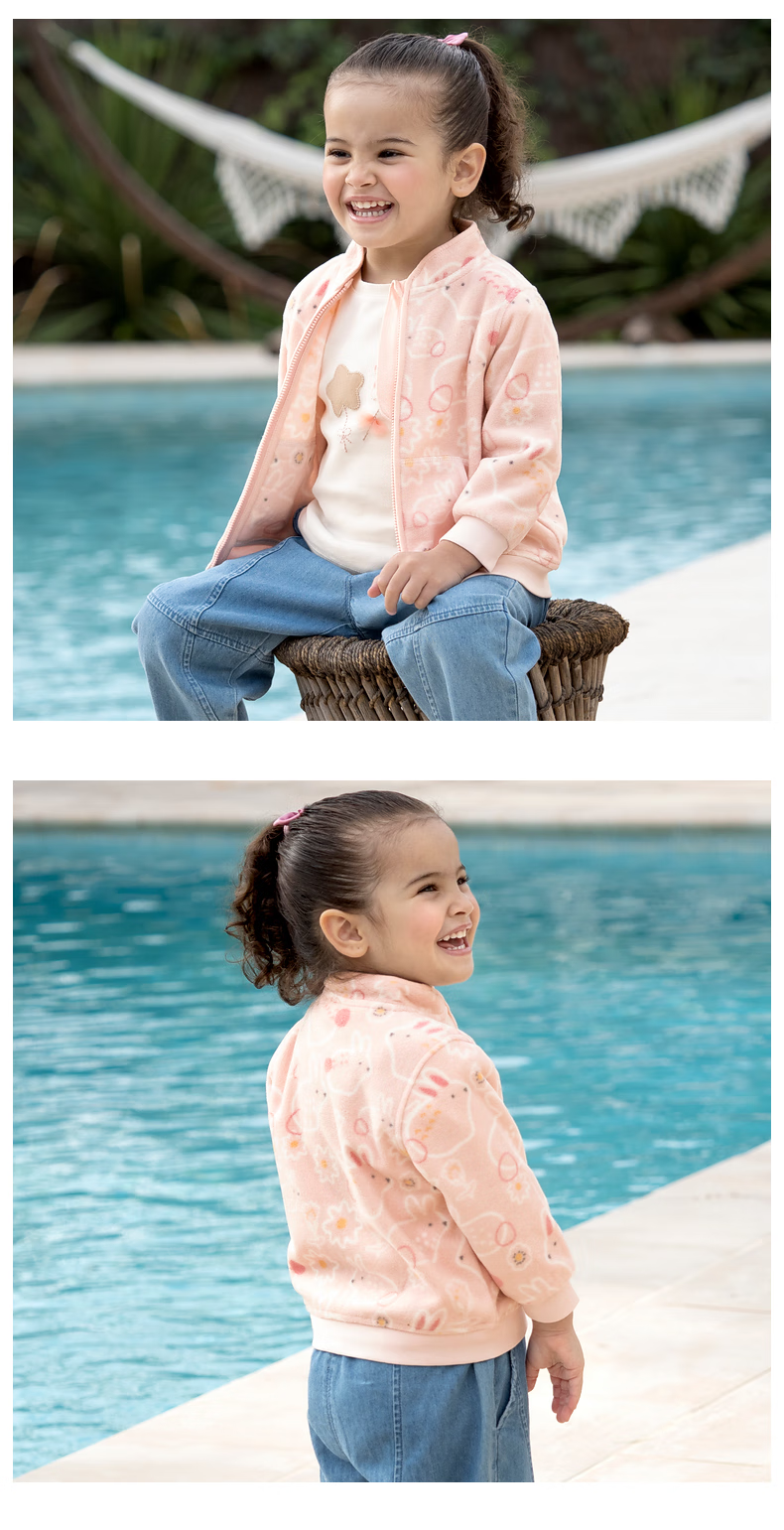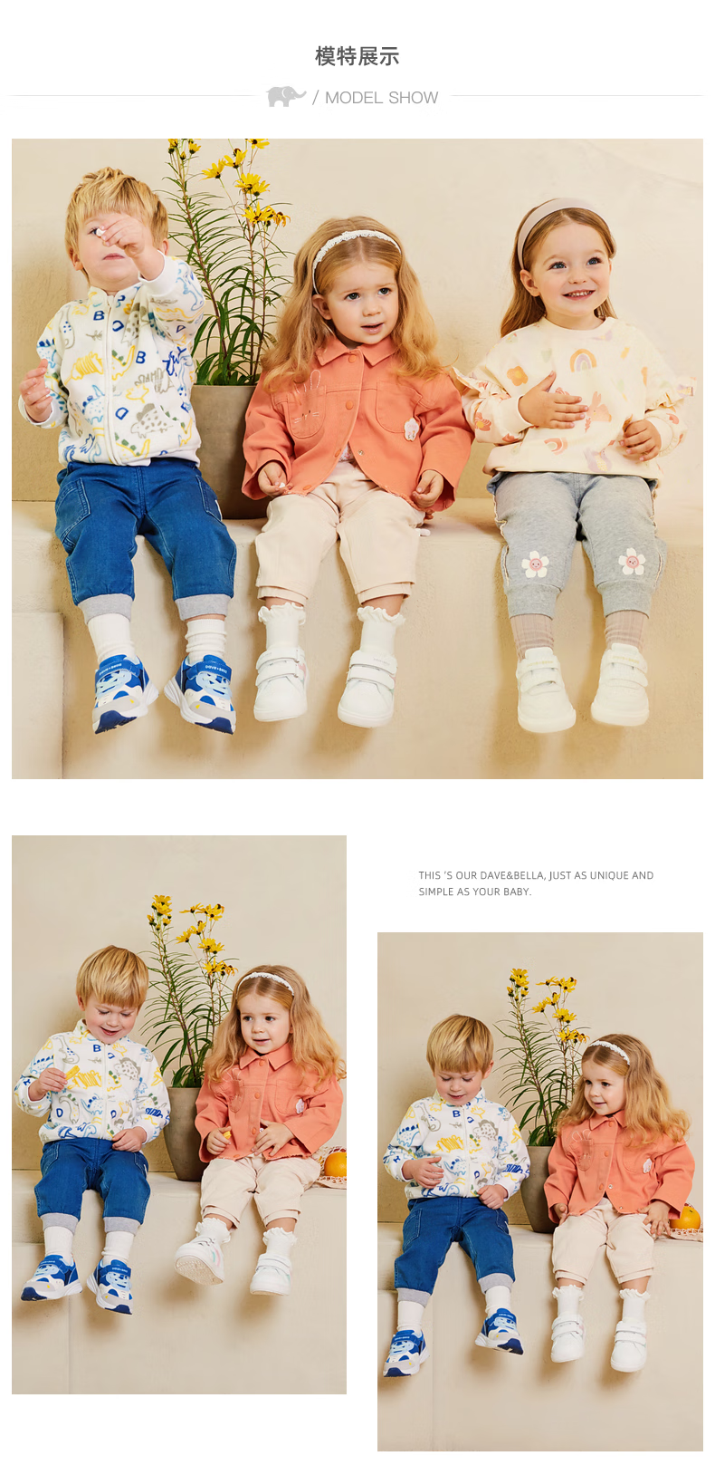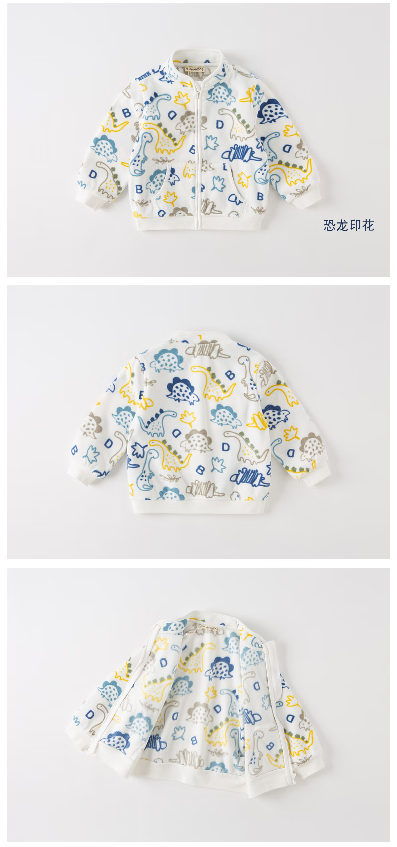 DAVE&BELLA Children's Clothes Boys' Jackets Girls' Polar Fleece Tops Children's Clothes Autumn Jackets Baby Outerwear 2025 New Flower Print 100 cm (recommended height 90-100cm)