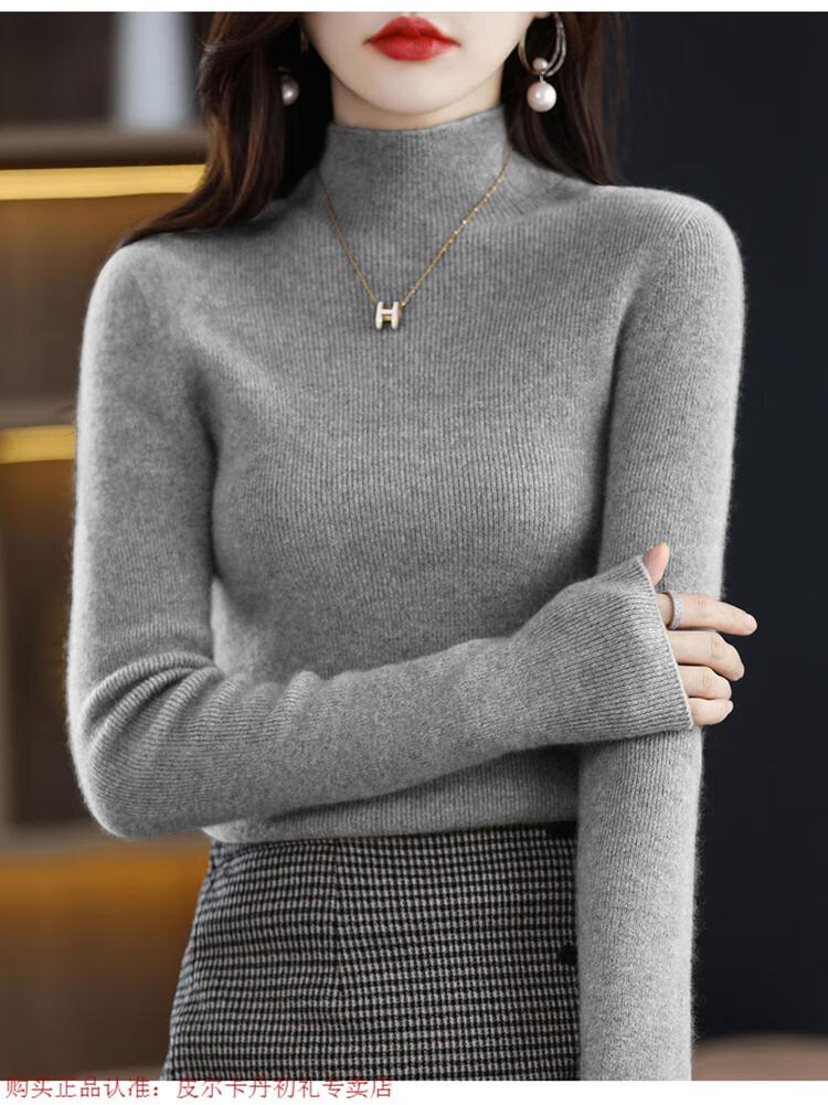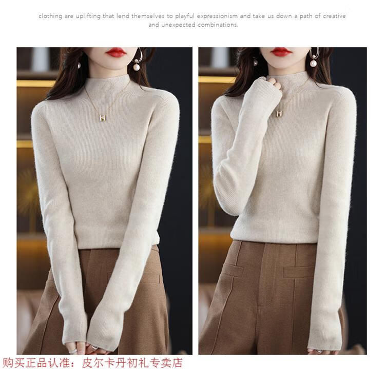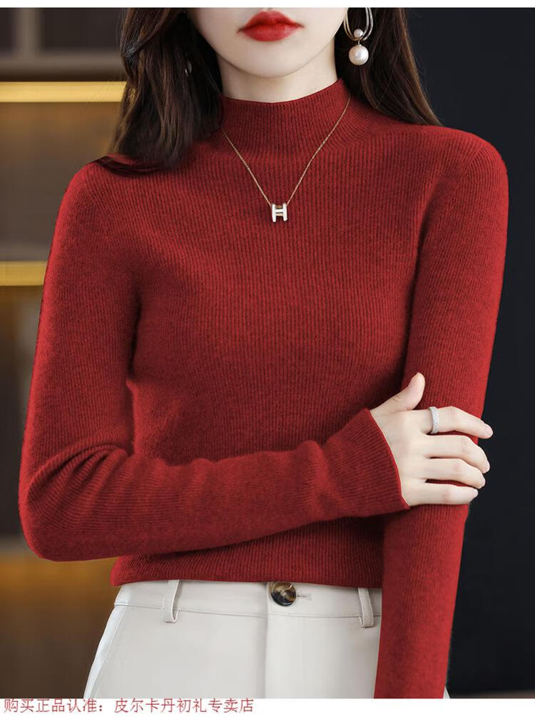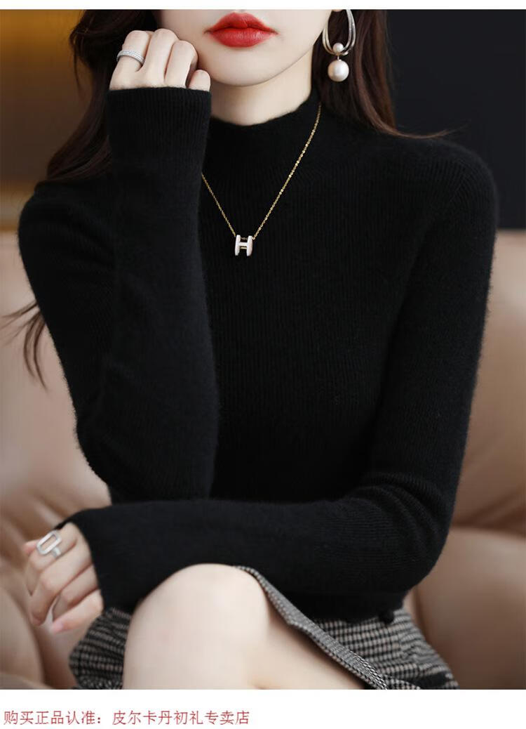 Pierre Cardin 100% pure wool sweater women's half turtleneck pullover sweater slim fit versatile wool knitted bottoming shirt black M size recommended 100-110 Jin Jin equals 0.5 kg to wear