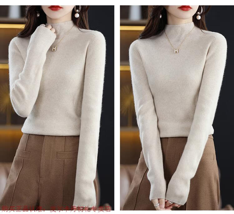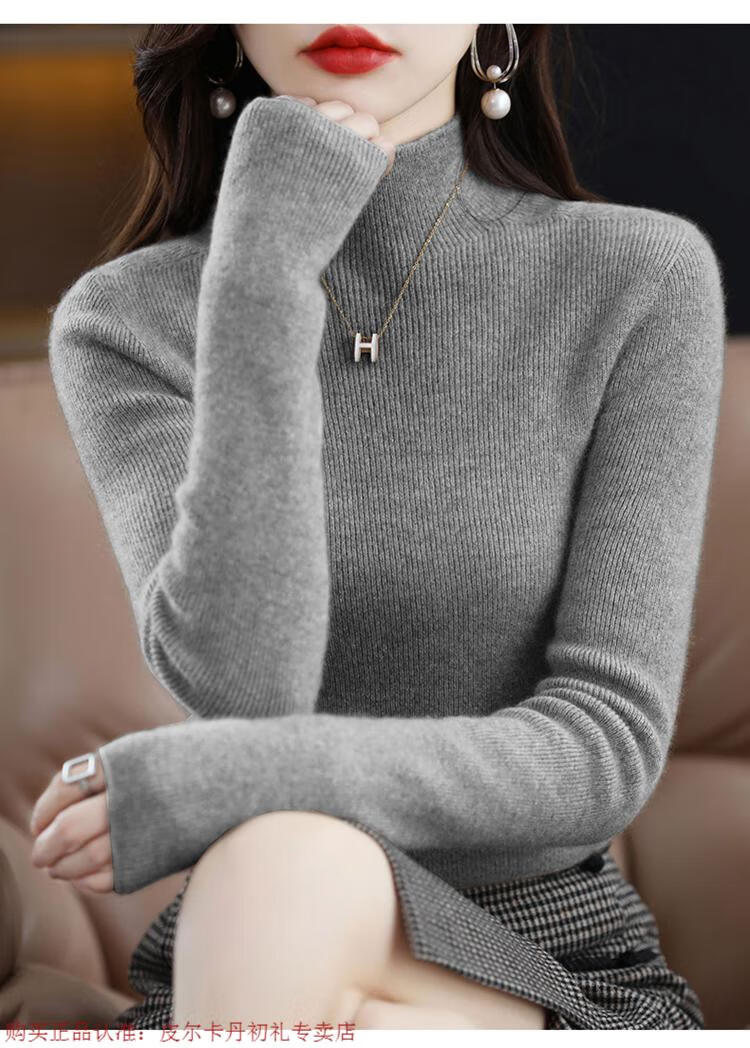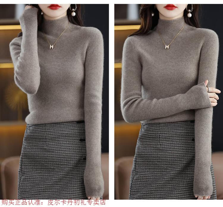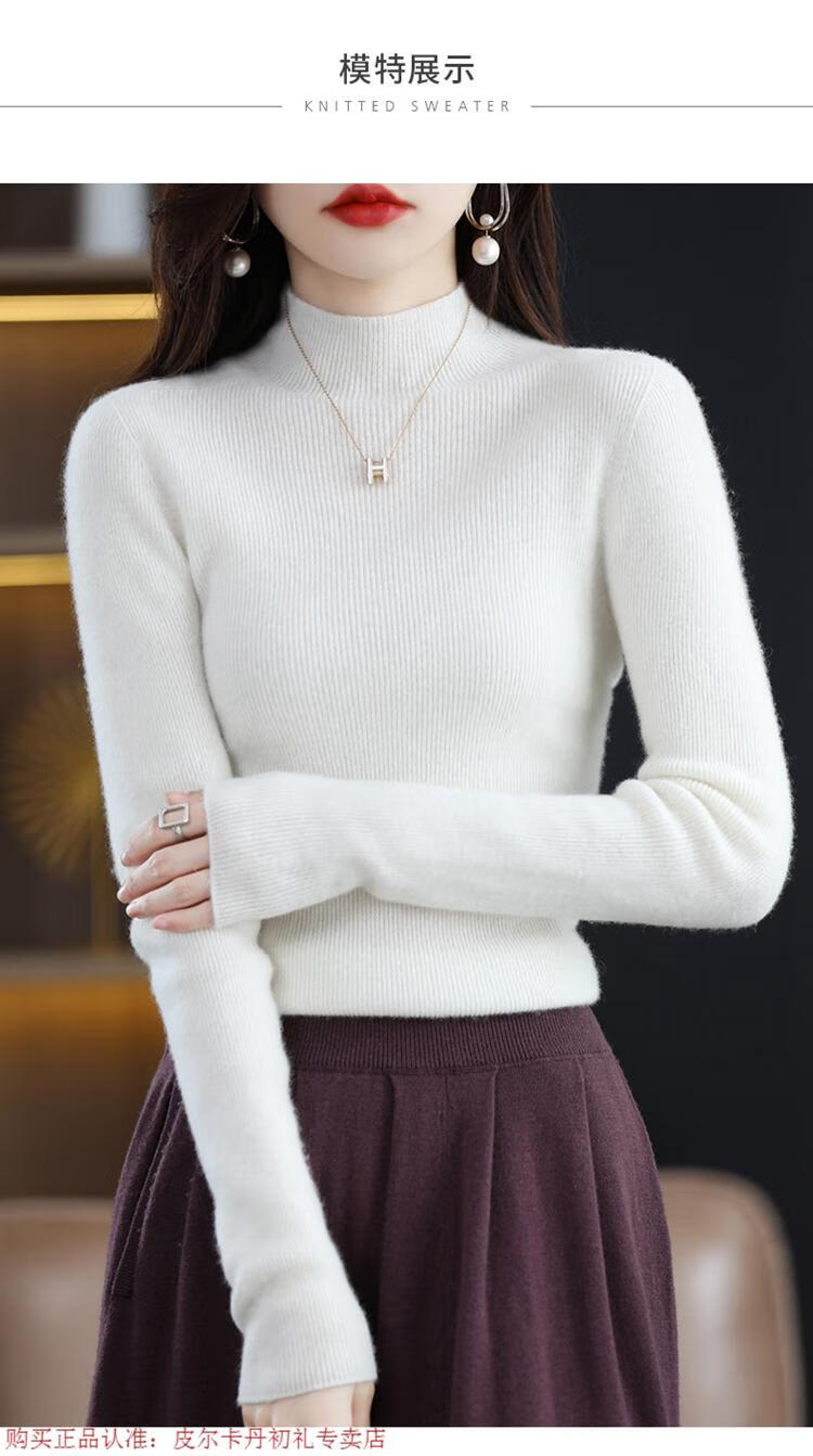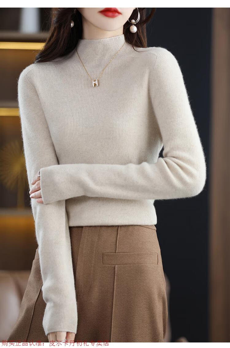 Pierre Cardin 100% pure wool sweater women's half turtleneck pullover sweater slim fit versatile wool knitted bottoming shirt black M size recommended 100-110 Jin Jin equals 0.5 kg to wear