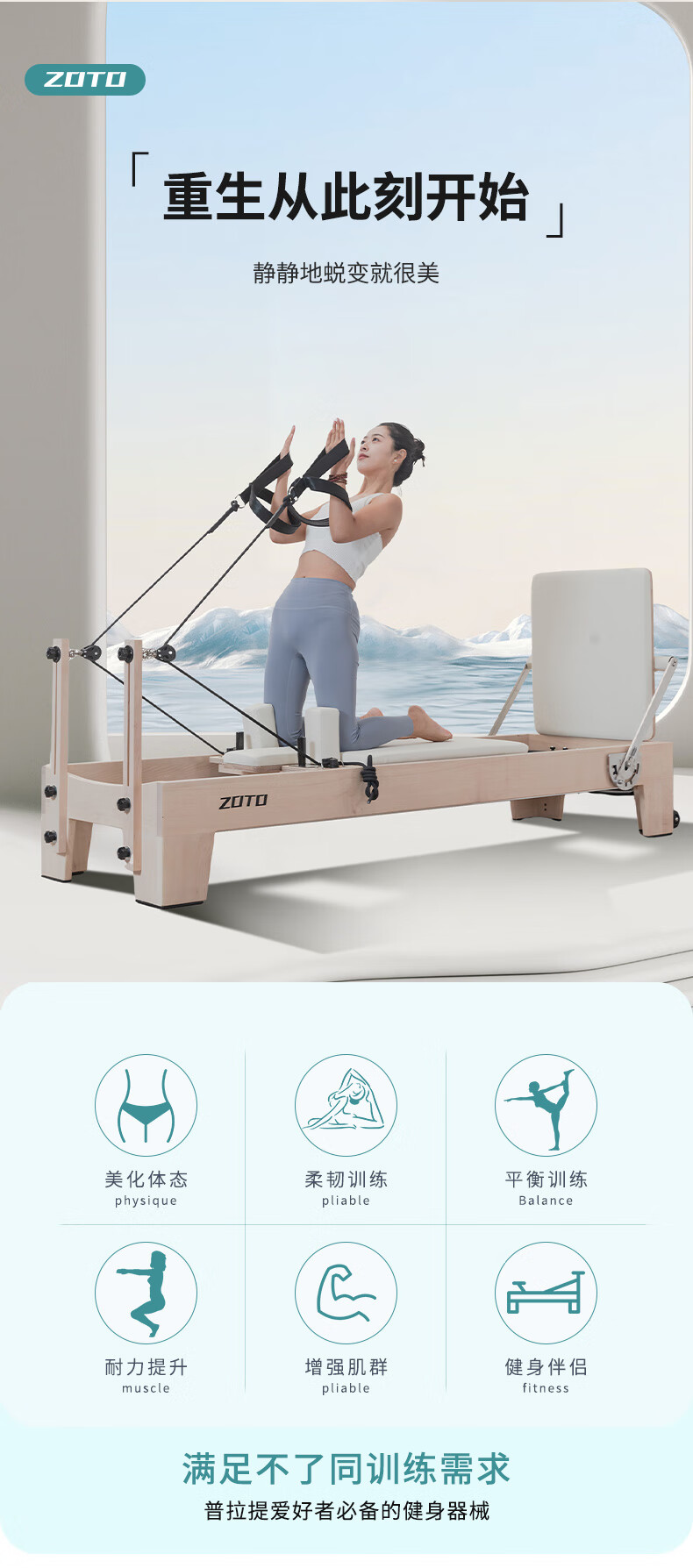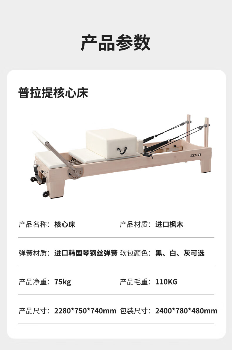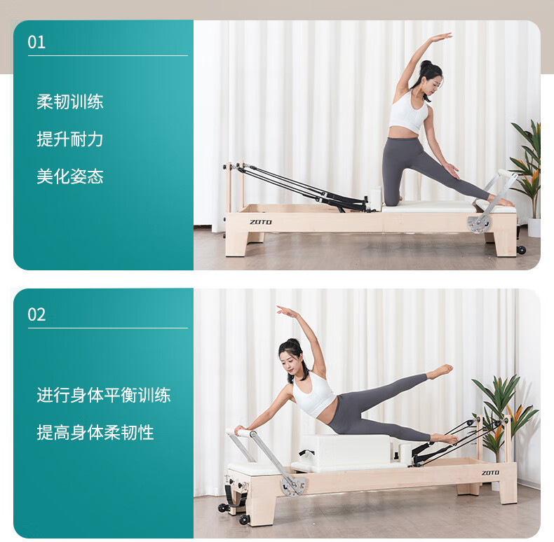 Zoto (ZOTO) Pilates core bed household foldable large equipment sports fitness Cadillac bed yoga equipment five-piece set rubber wood Korean version core bed comes with a square box for pedals