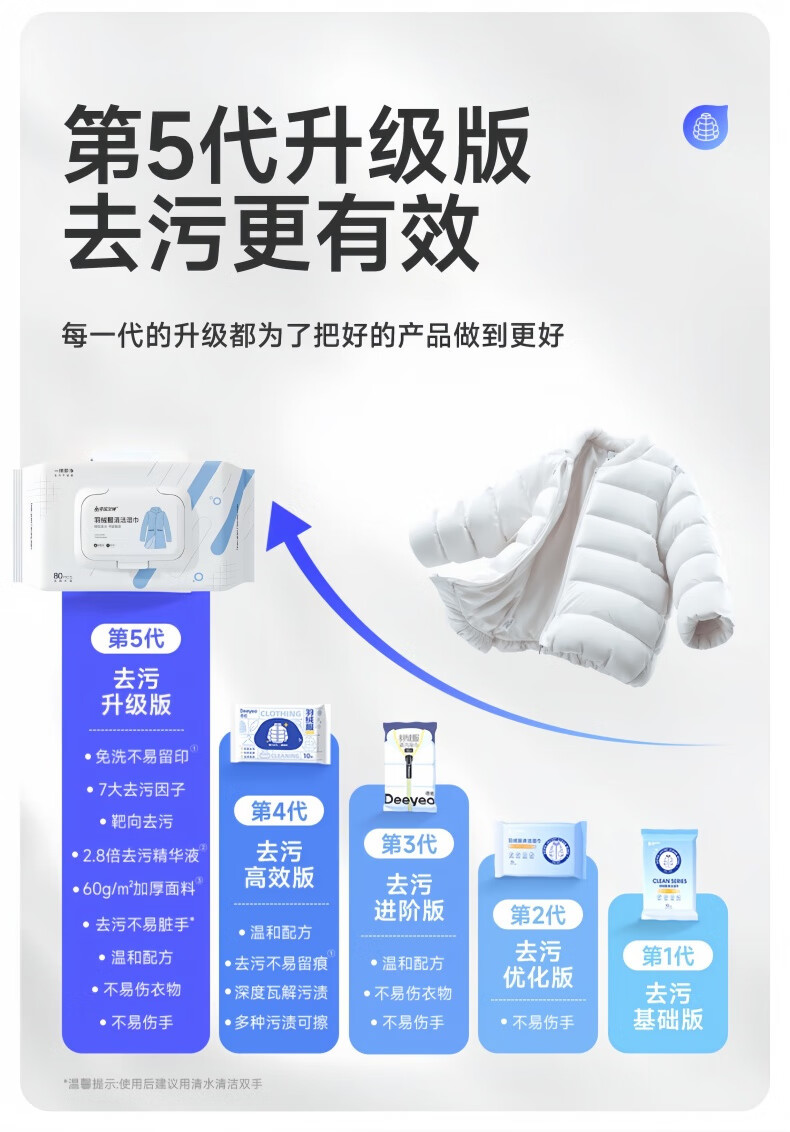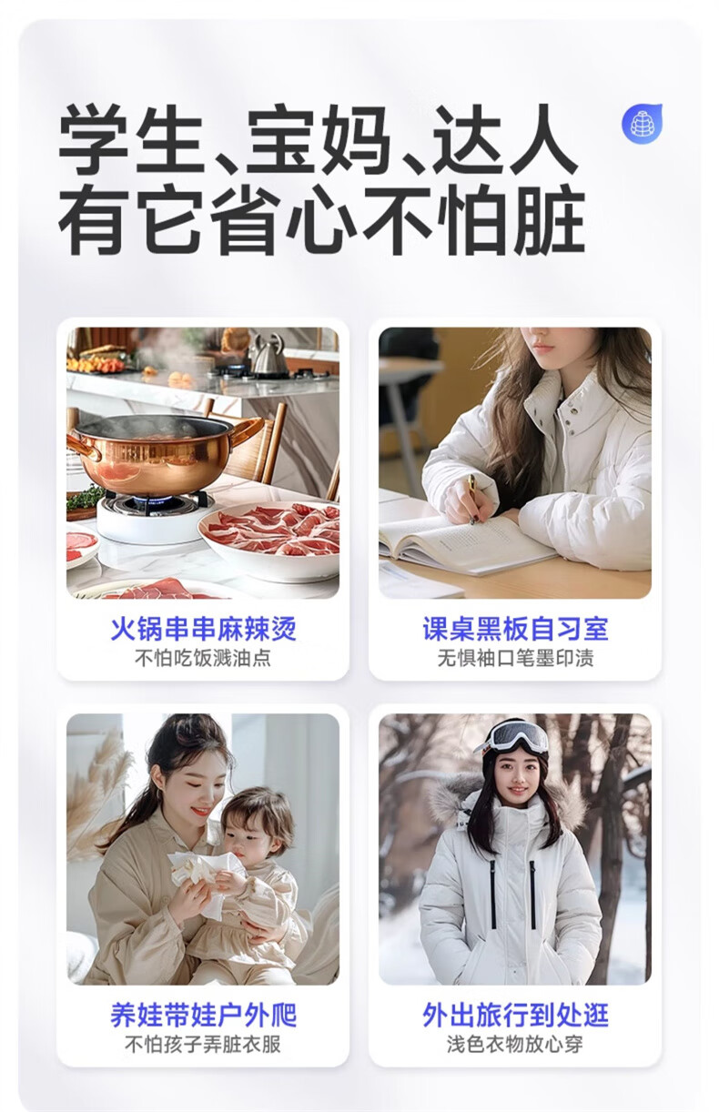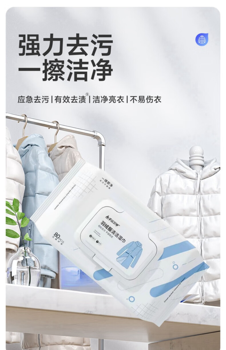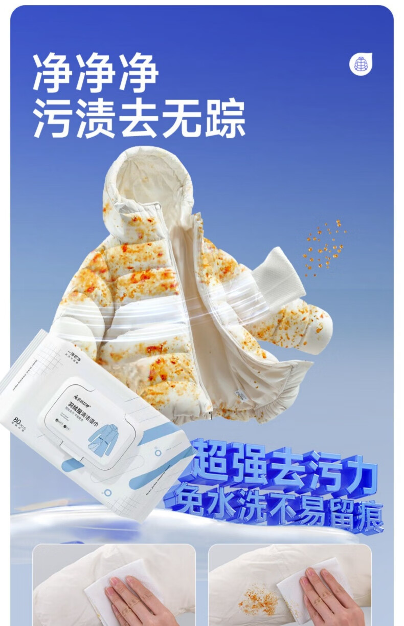 Qianjuhui Down Jacket Cleaning Wipes Cleaning Agent Decontamination-free Water-Free Washing Down Jacket Wet Wipes Decontamination and Oil Stains 1 Pack 80 Tablets