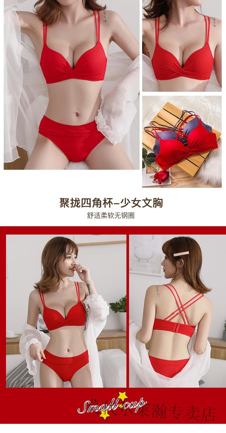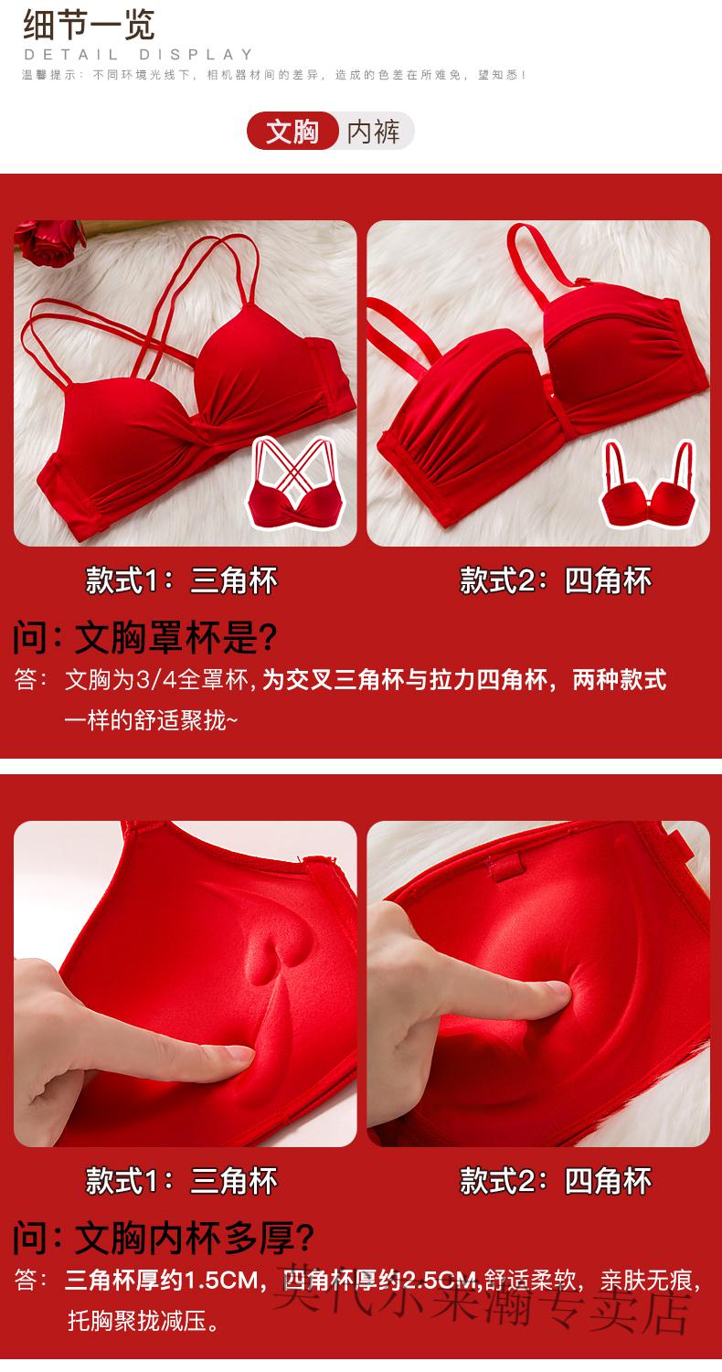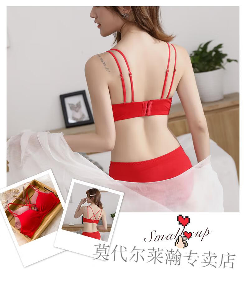 Modal Underwear Set Women's Red Zodiac Year Bra Women's Small Breast Gathered Wireless Underwear Wedding Bride Small Breast Bra Red Set 75B 75/34B