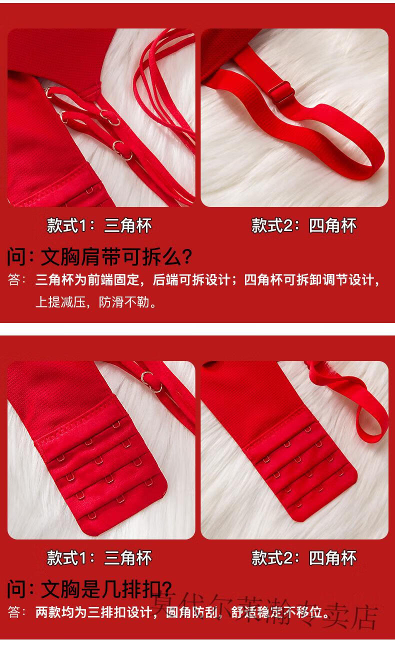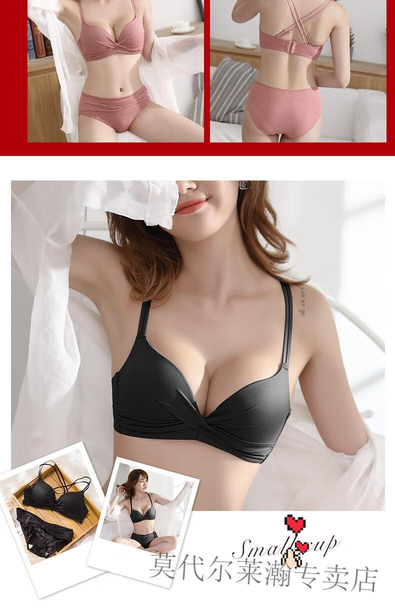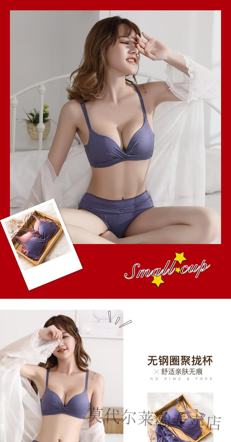 Modal Underwear Set Women's Red Zodiac Year Bra Women's Small Breast Gathered Wireless Underwear Wedding Bride Small Breast Bra Red Set 75B 75/34B