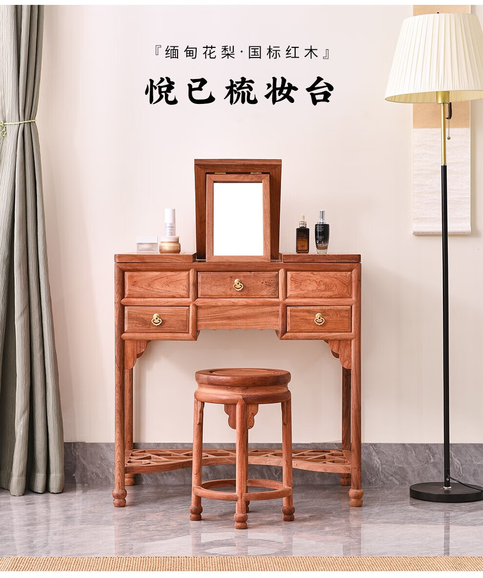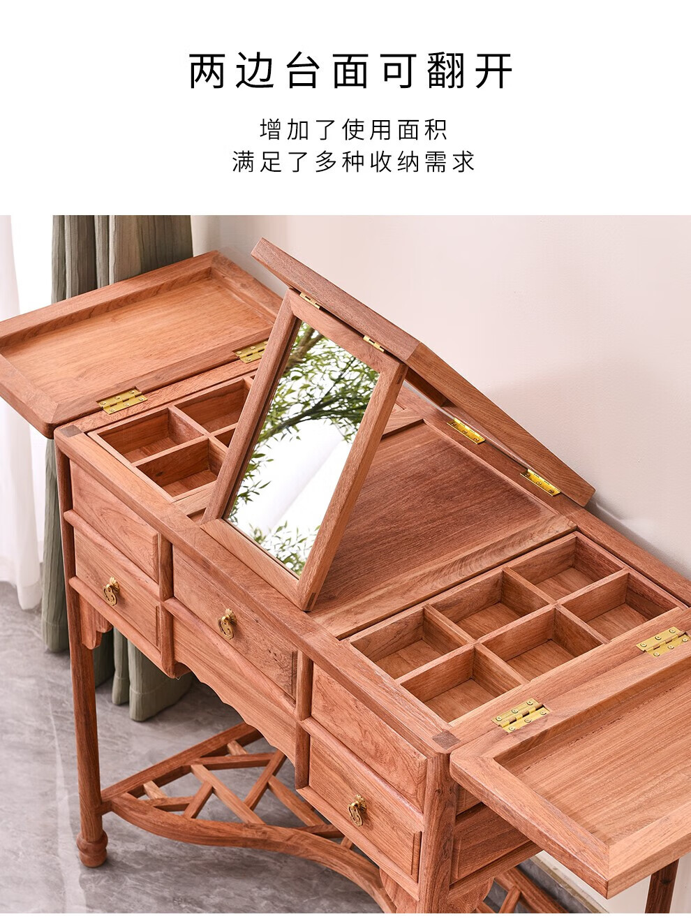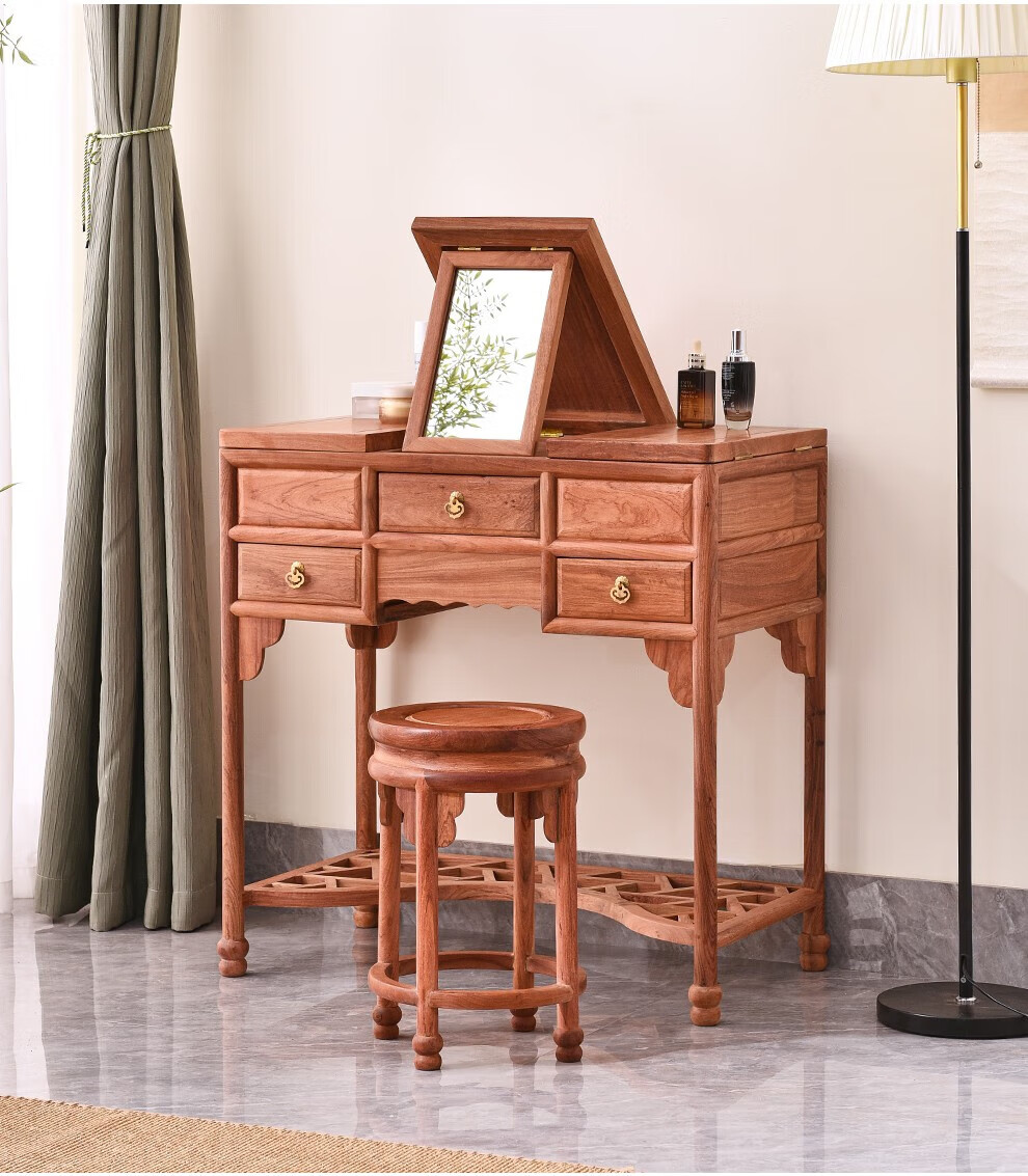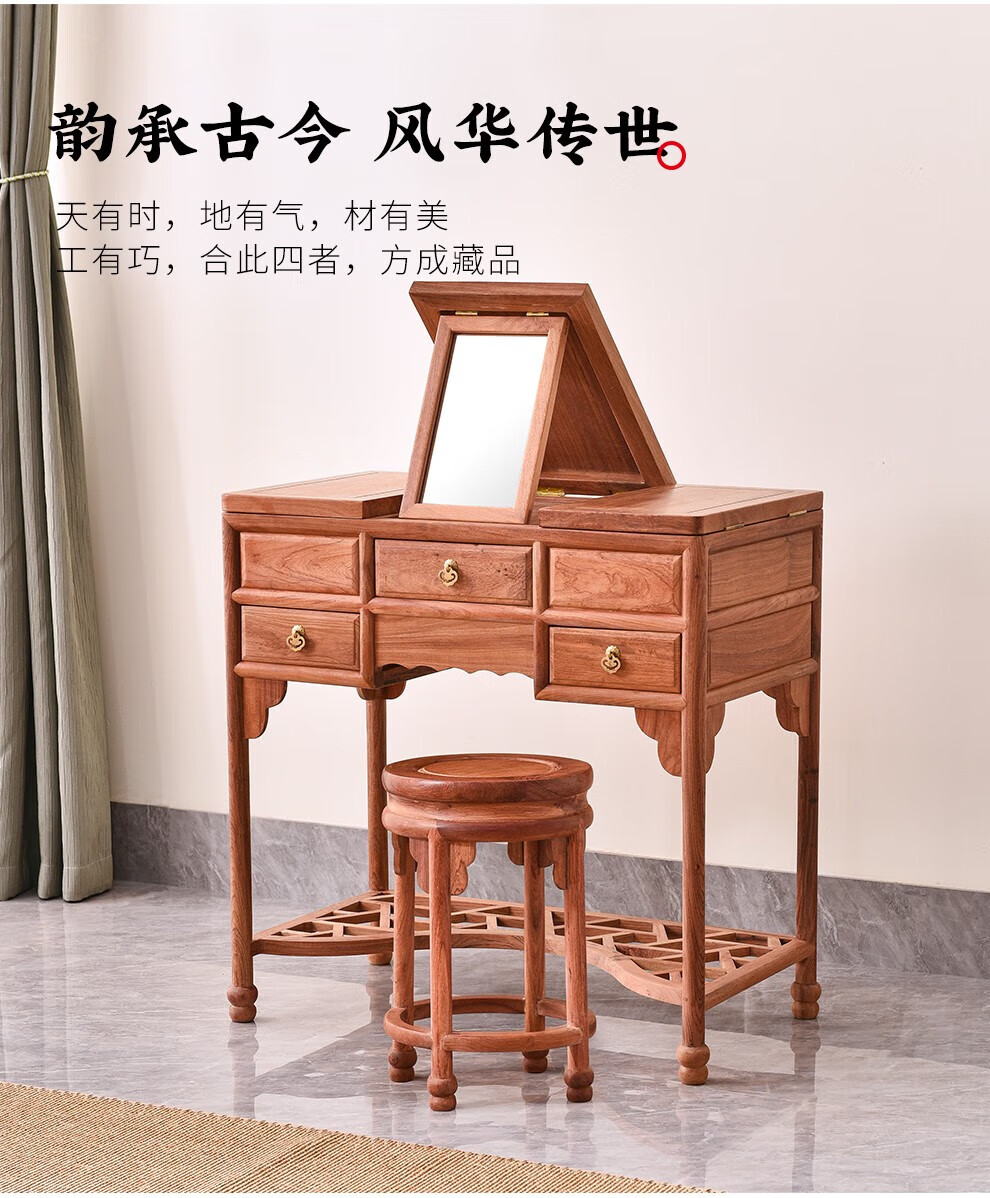 Tang Huangxuan mahogany furniture Burmese rosewood (scientific name: Big Fruit Rosewood) dressing table Ming style bedroom dressing table foldable dressing table + stool