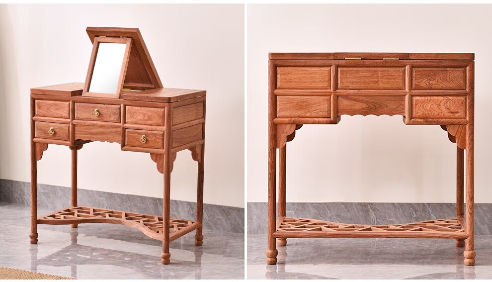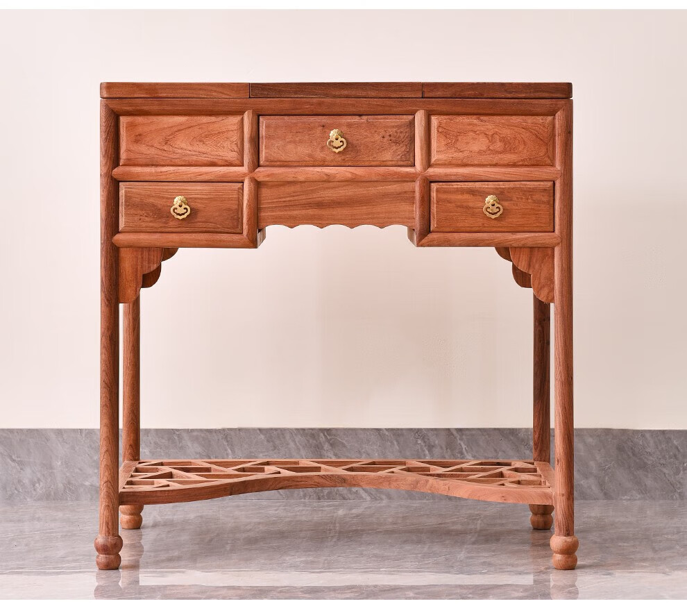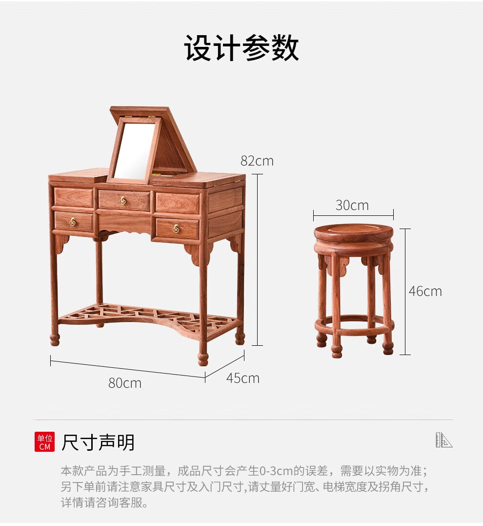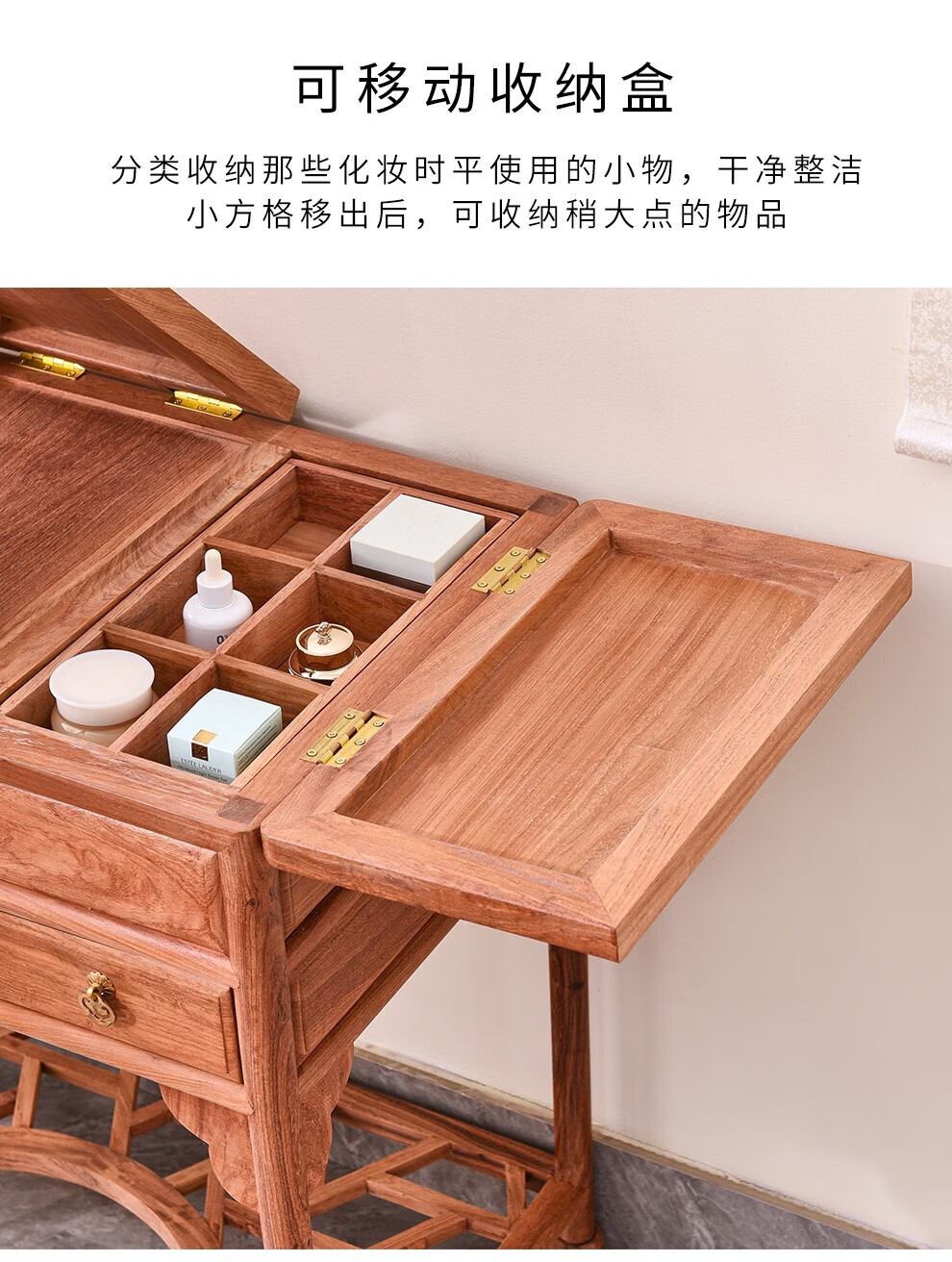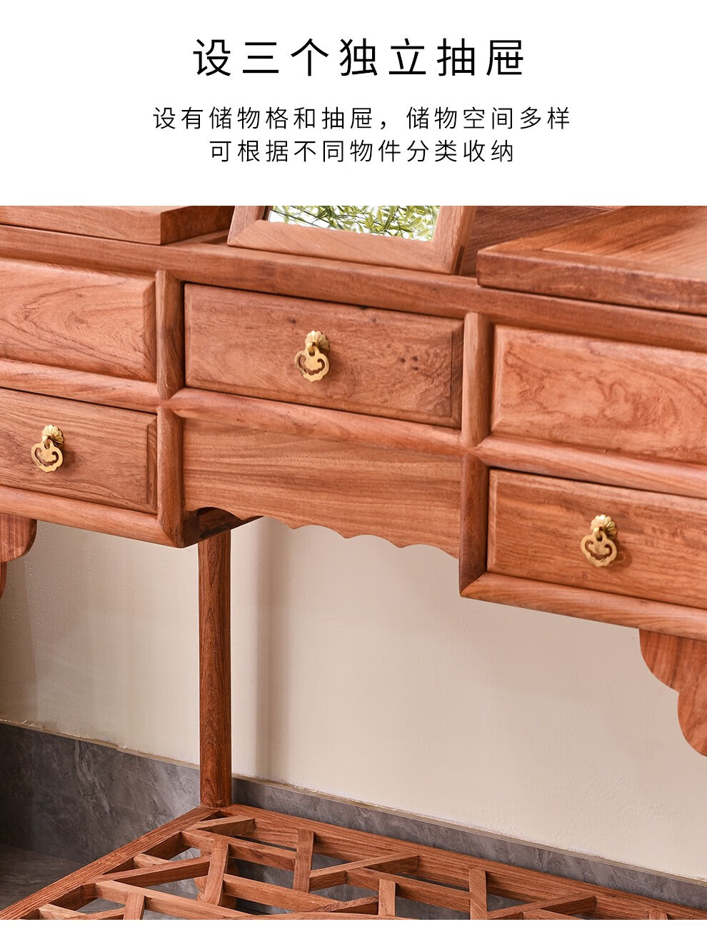 Tang Huangxuan mahogany furniture Burmese rosewood (scientific name: Big Fruit Rosewood) dressing table Ming style bedroom dressing table foldable dressing table + stool
