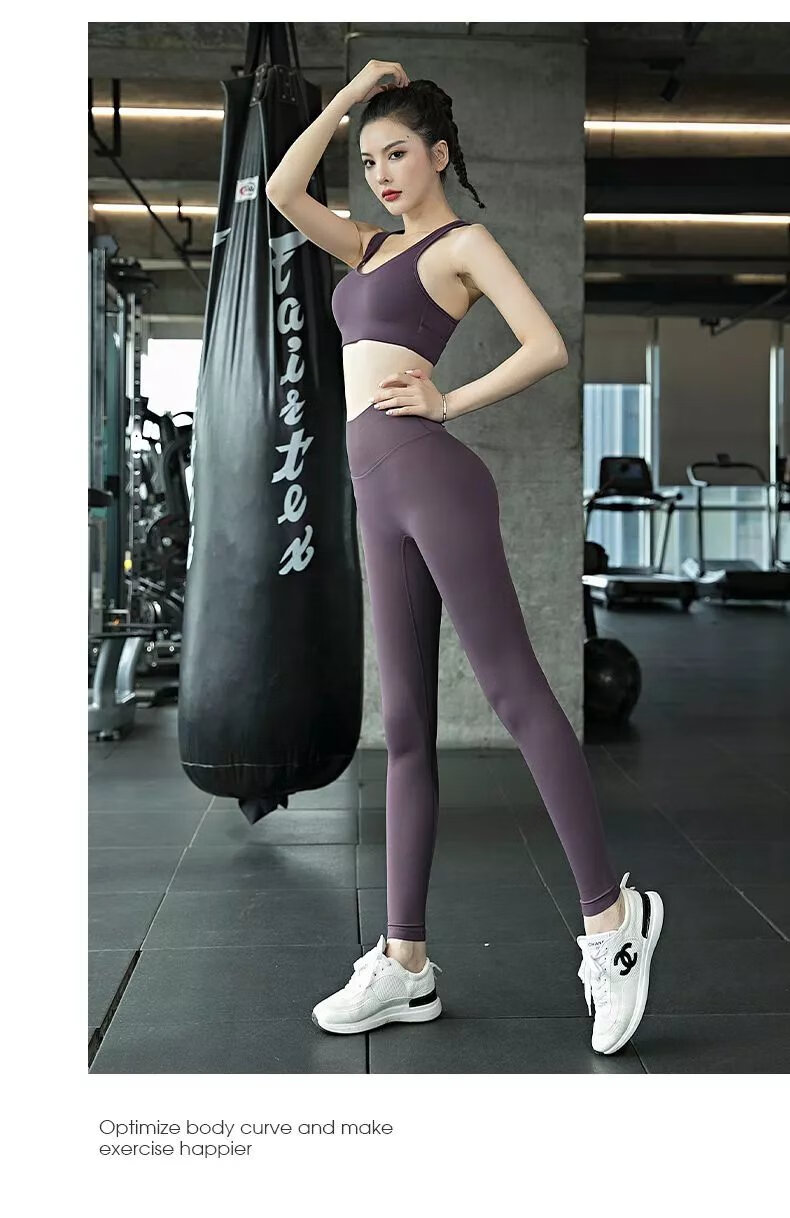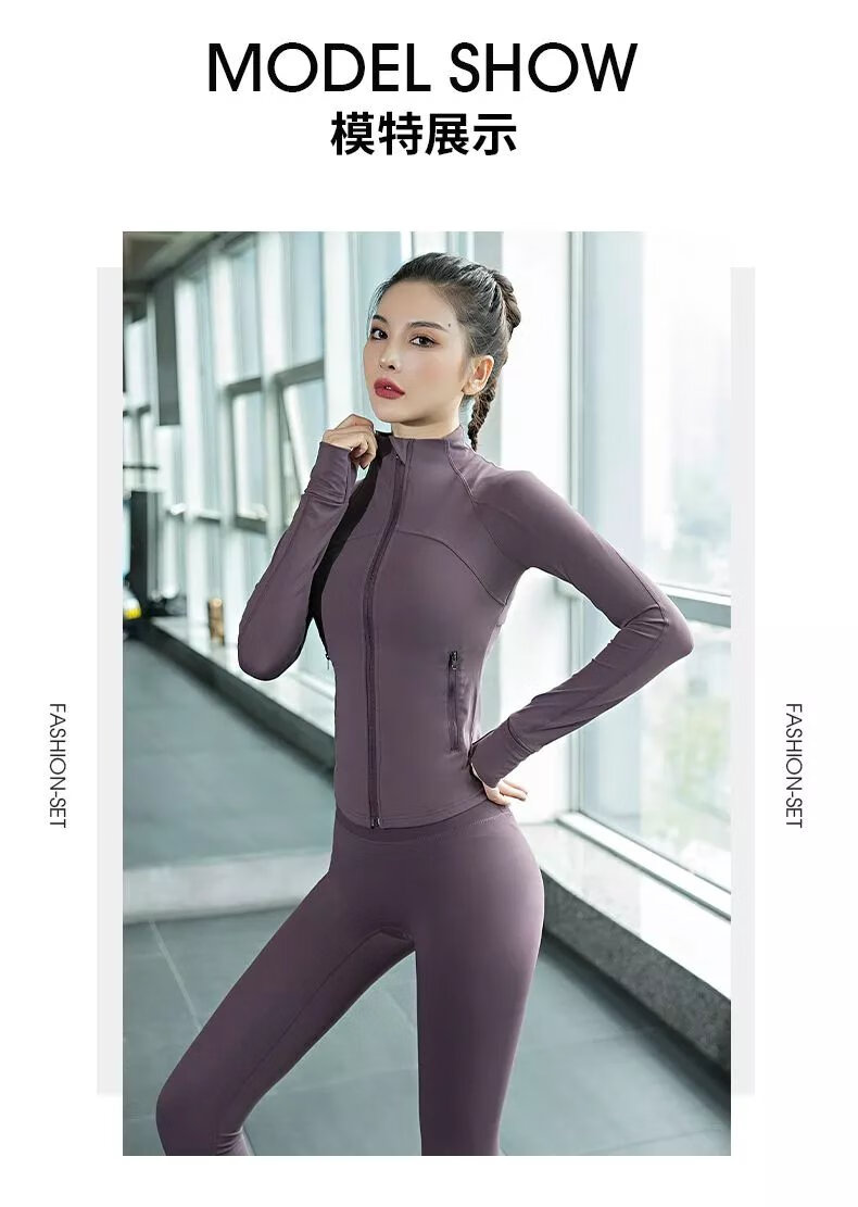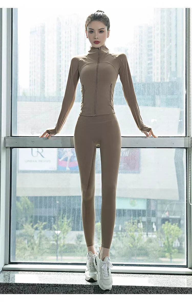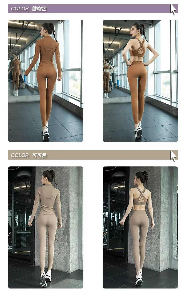 YUNTH brand yoga clothes for women 2025 new autumn and winter Pilates training clothes quick-drying high-looking fitness morning running coffee purple jacket three-piece set M recommended 95-105 Jin Jin equals 0.5 kg