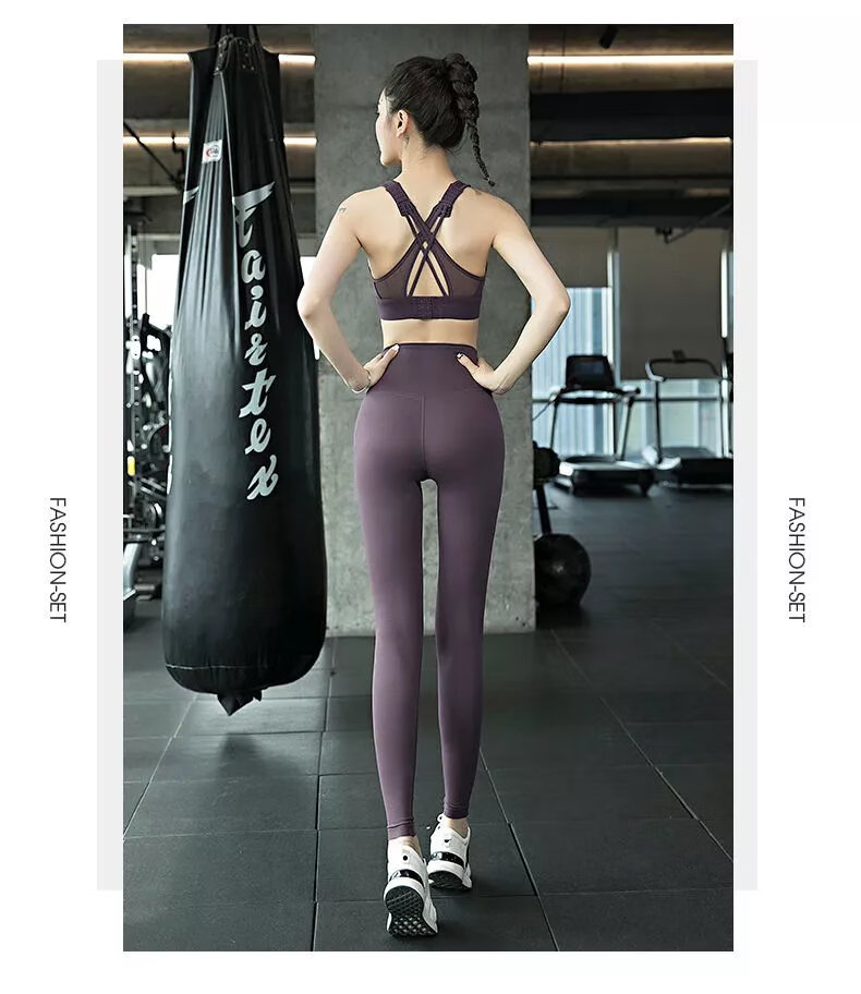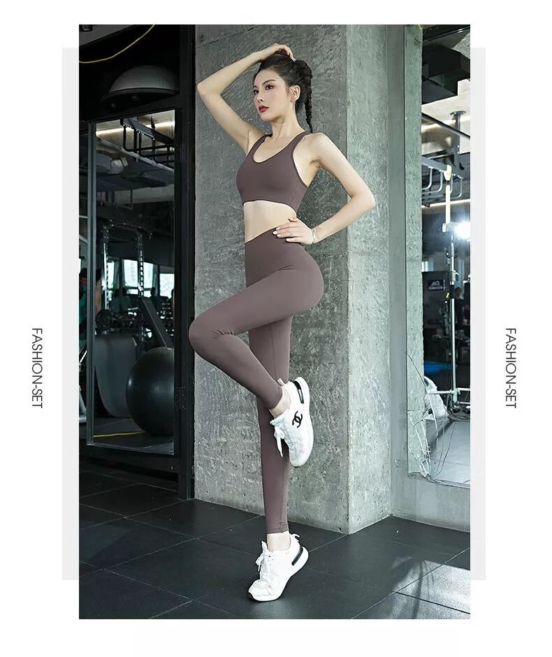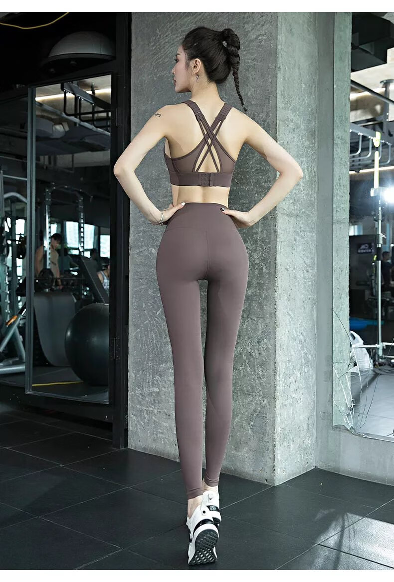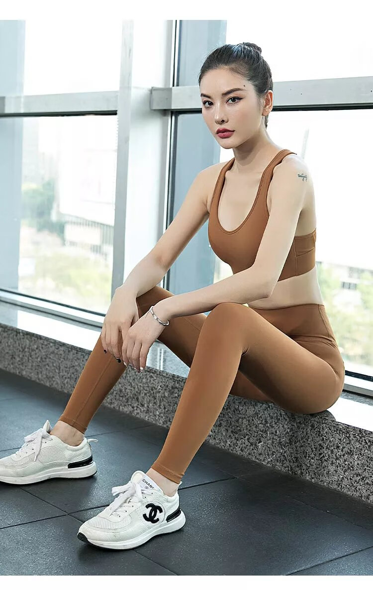 YUNTH brand yoga clothes for women 2025 new autumn and winter Pilates training clothes quick-drying high-looking fitness morning running coffee purple jacket three-piece set M recommended 95-105 Jin Jin equals 0.5 kg