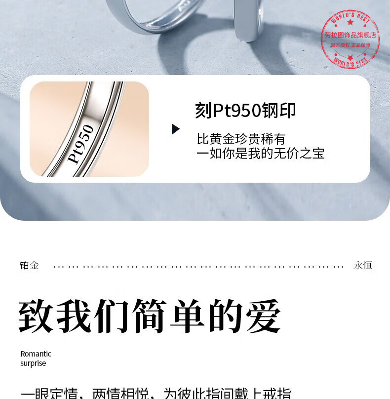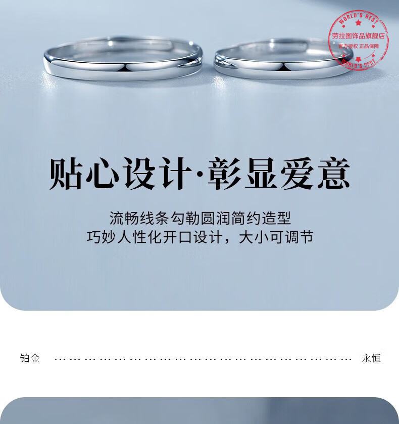 LAOLATU platinum ring for women PT950 platinum couple ring opening anniversary Chinese Valentine's Day gift for wife pt950 platinum female ring live mouth adjustable