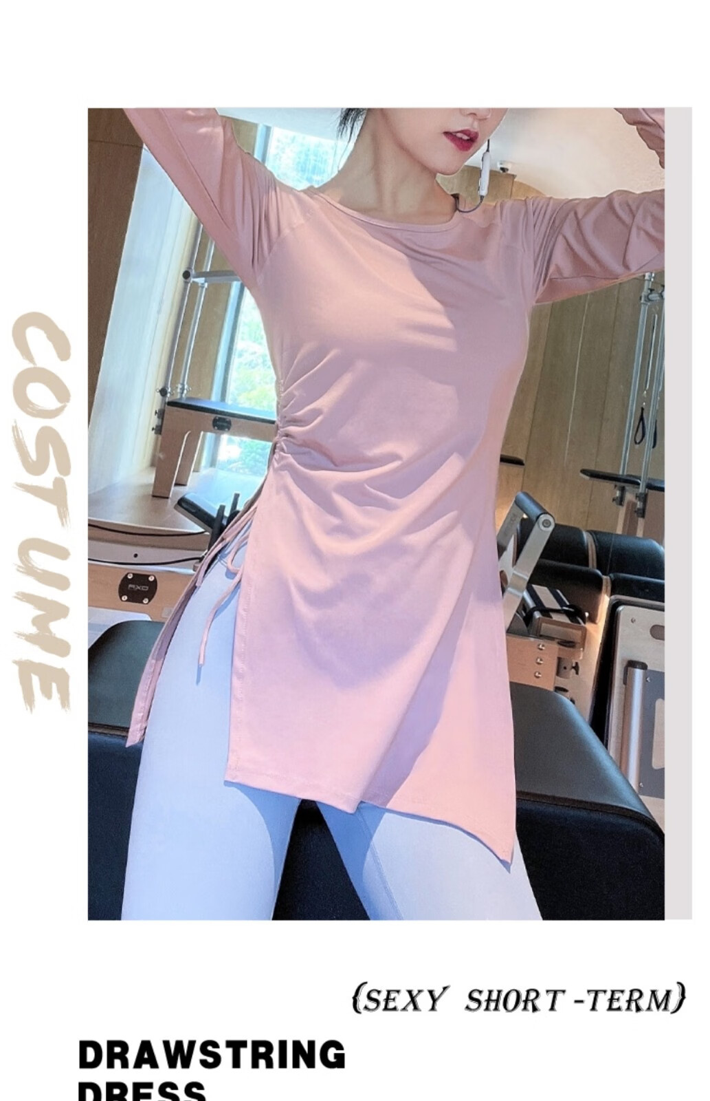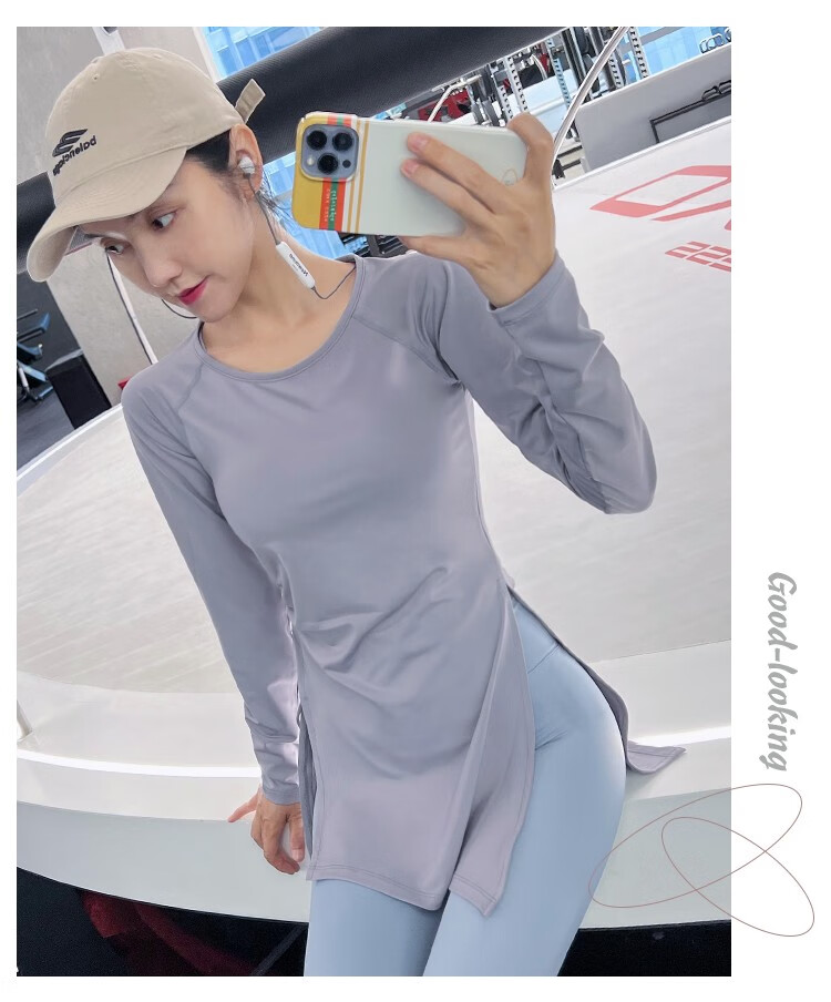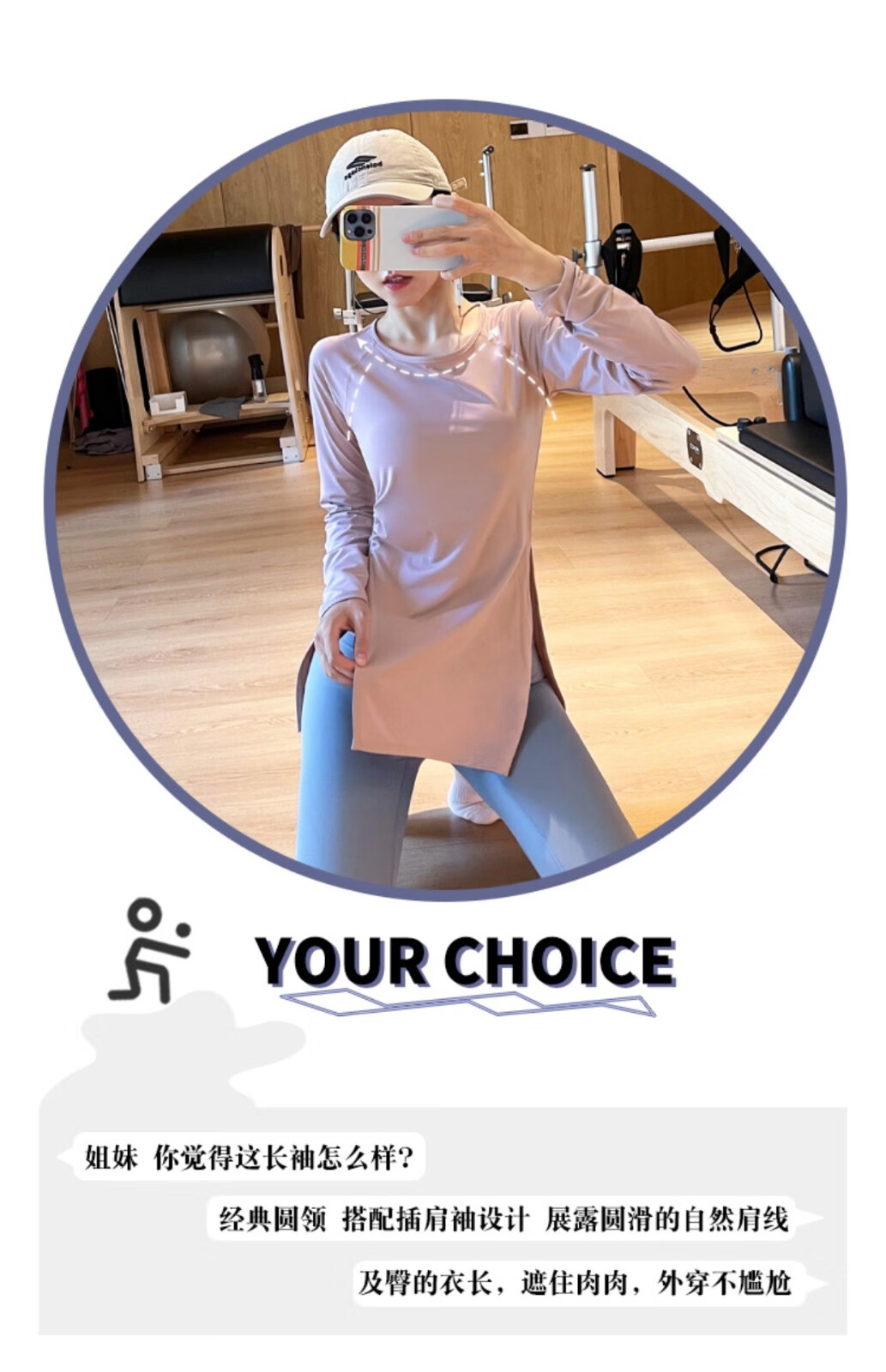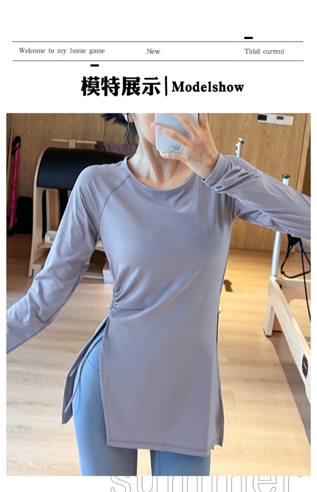 Aisunstyle long yoga wear women's running fitness cover-up Pilates training wear T-shirt tight sports top long-sleeved autumn and winter pink L size
