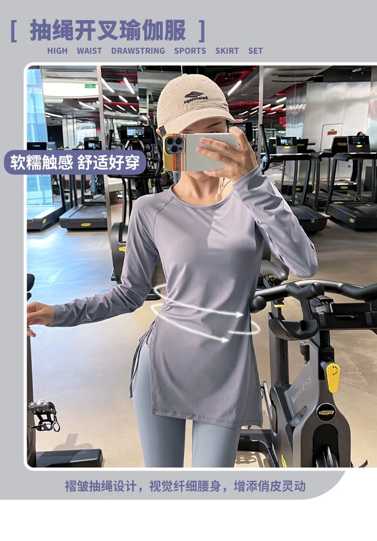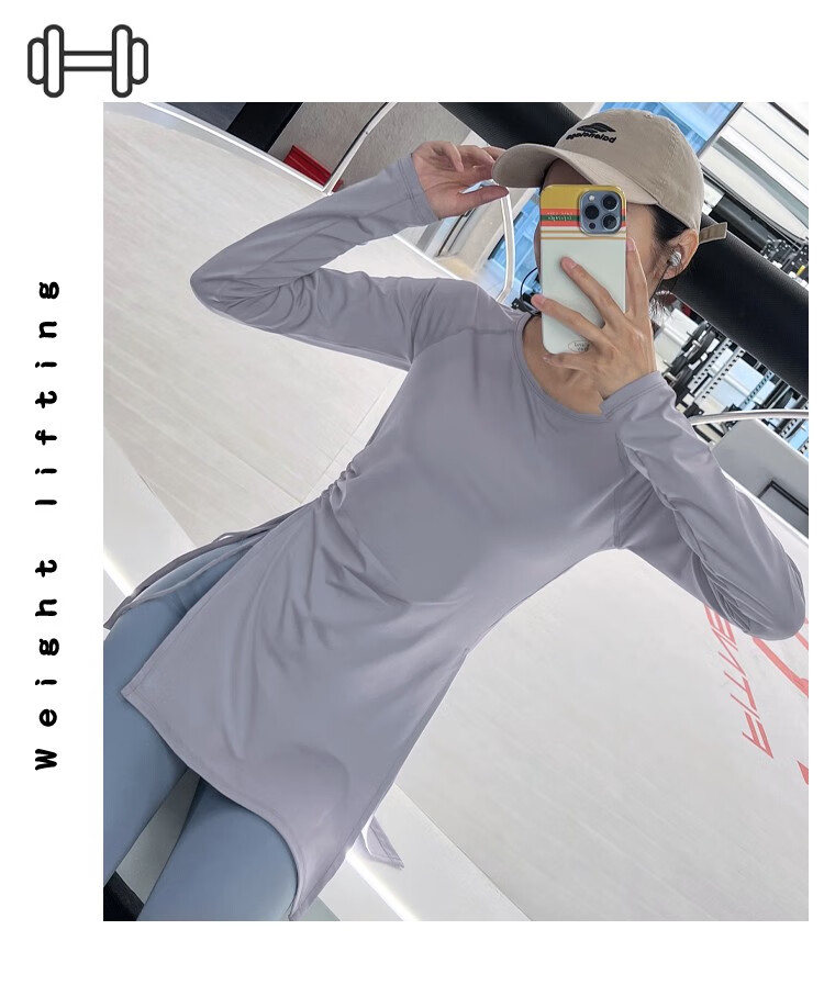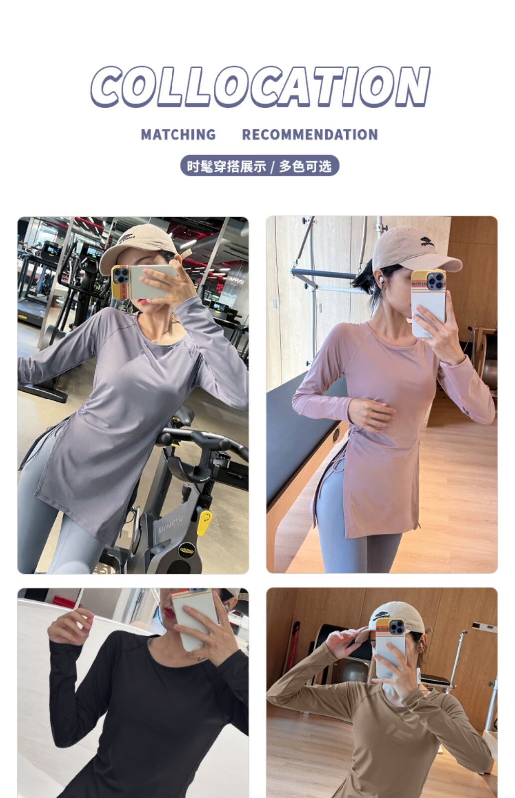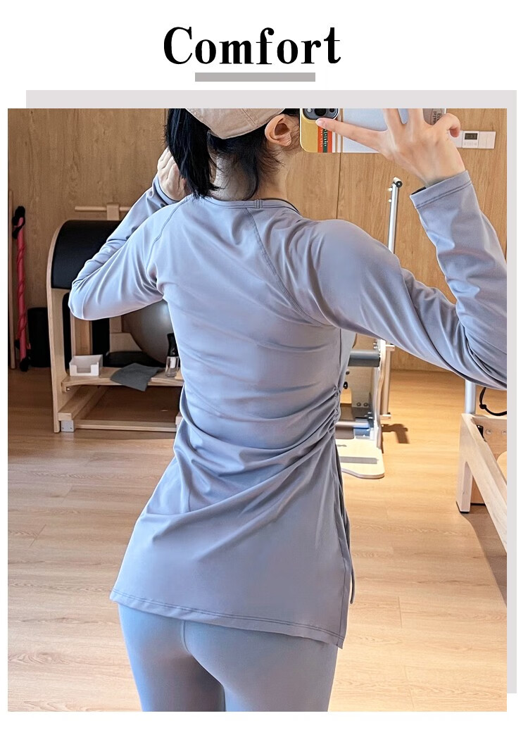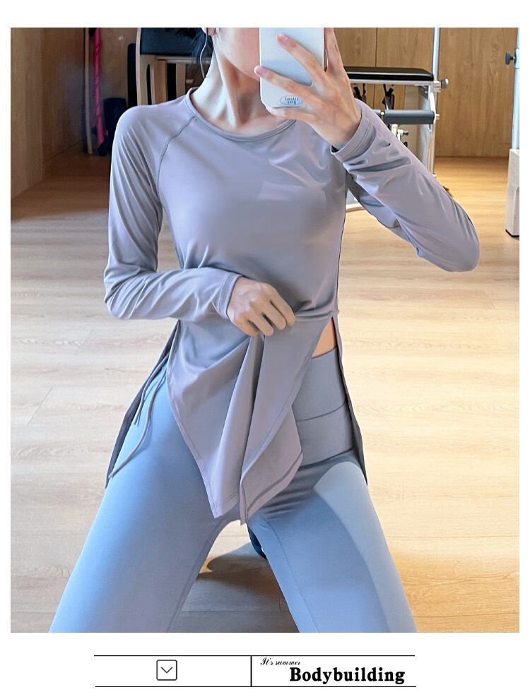 Aisunstyle long yoga wear women's running fitness cover-up Pilates training wear T-shirt tight sports top long-sleeved autumn and winter pink L size