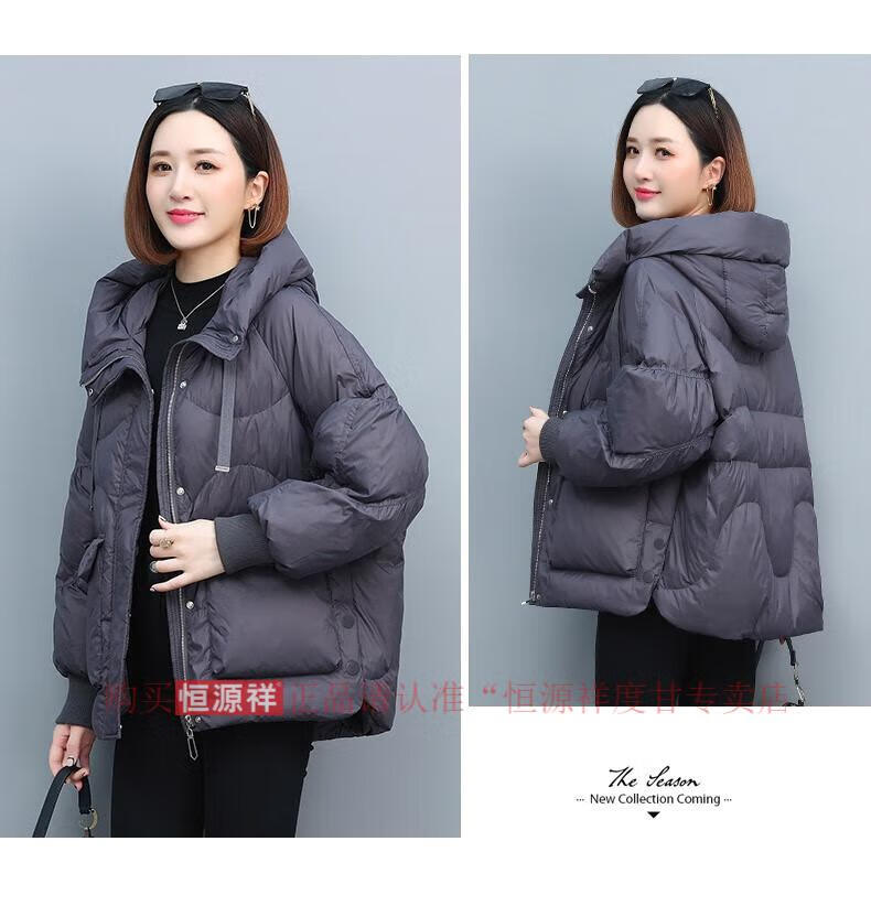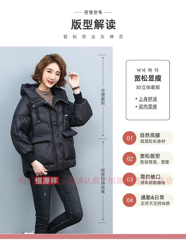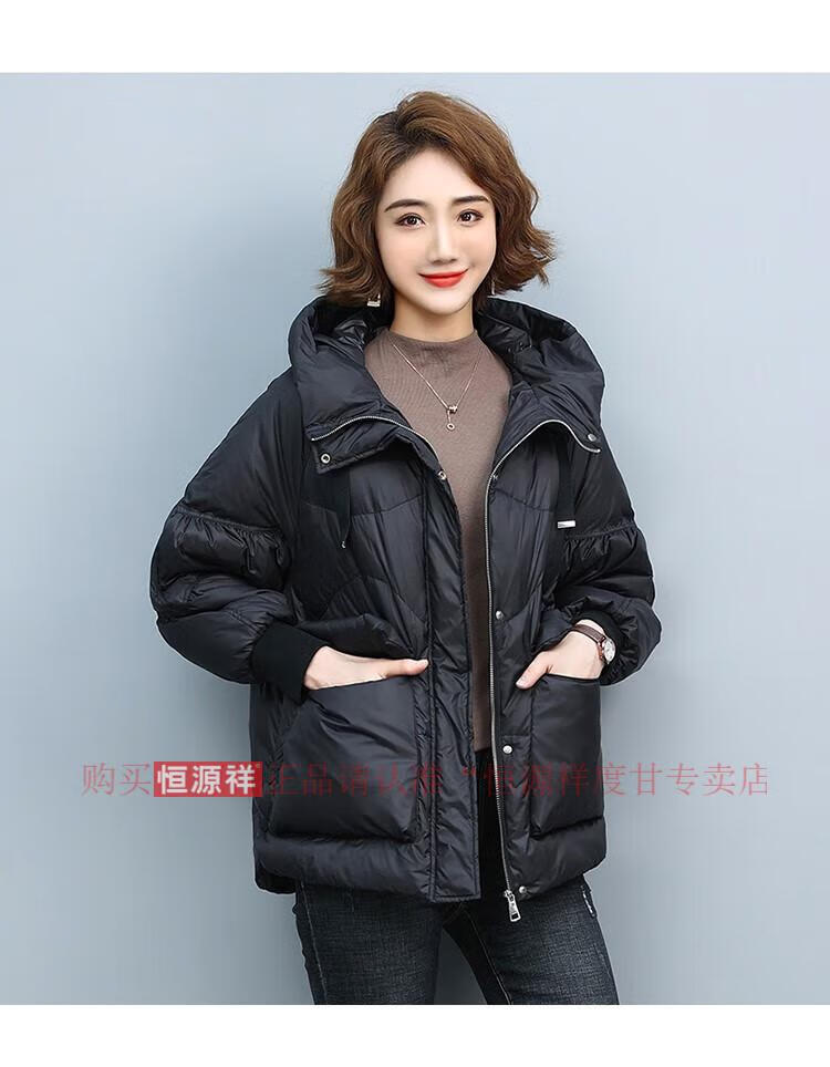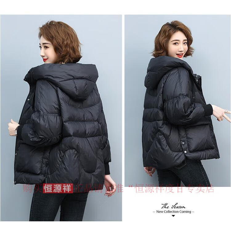 Hengyuanxiang New National Standard Down Jacket Women's Casual Age-Reducing Jacket Short 2025 New Winter Korean Style Loose Fashionable Warm Black 2XL Recommended 130-145Jin Jin equals 0.5 kg