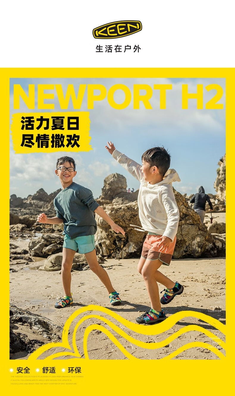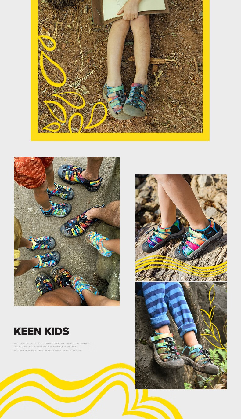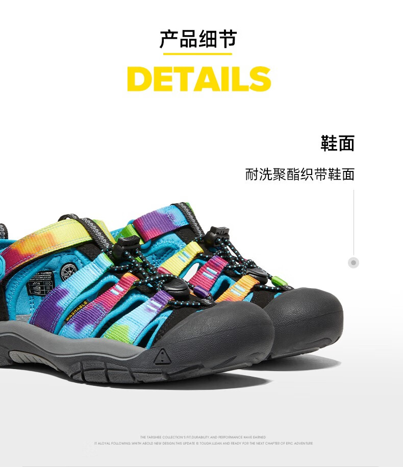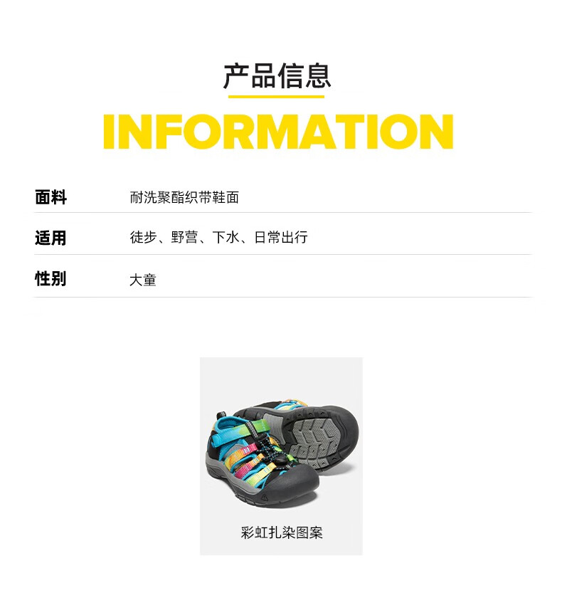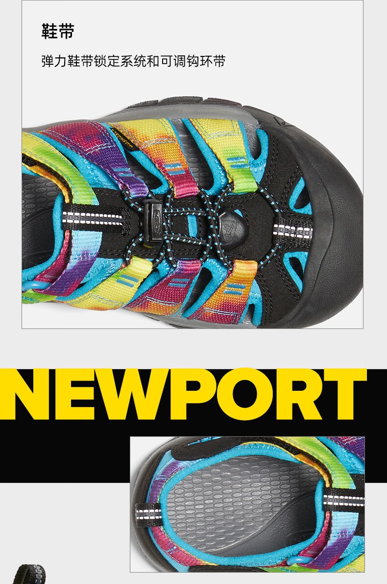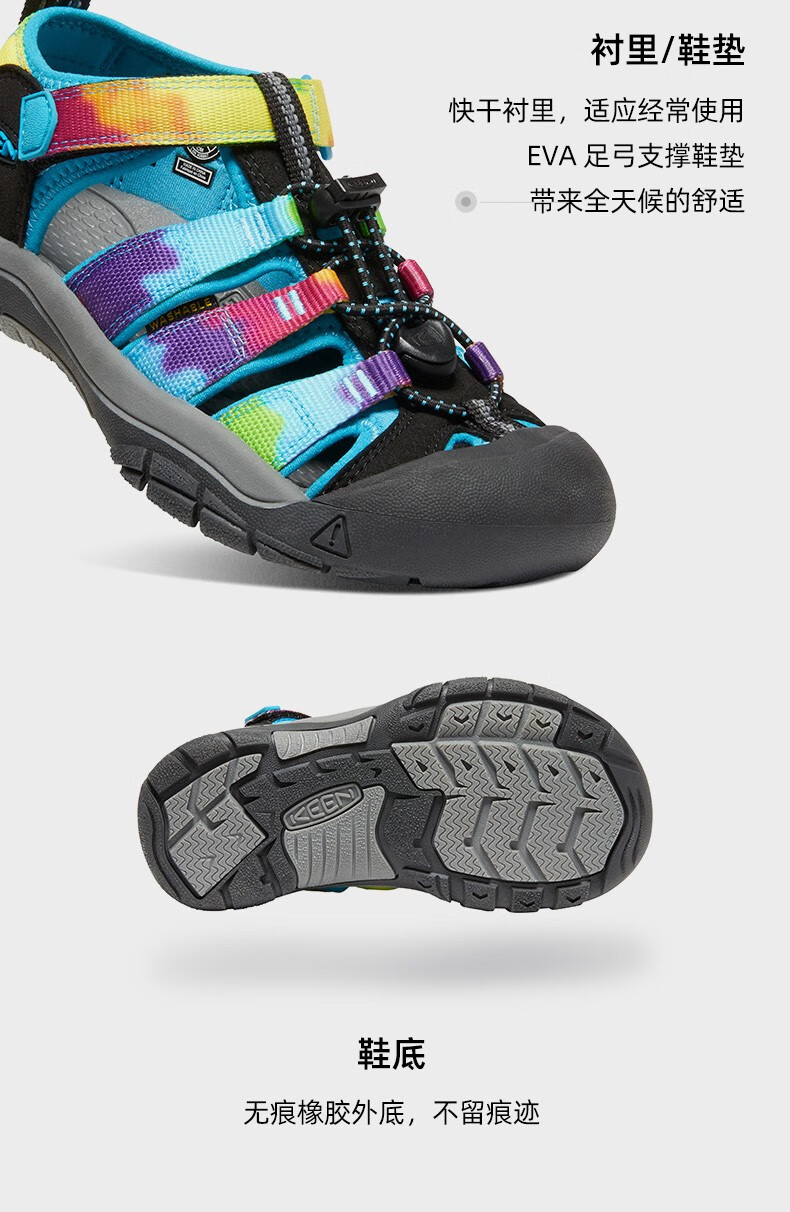 KEEN official NEWPORT H2 children's outdoor wading shoes, river shoes, anti-collision toe sandals, rainbow tie-dye pattern-1018441-big children 35