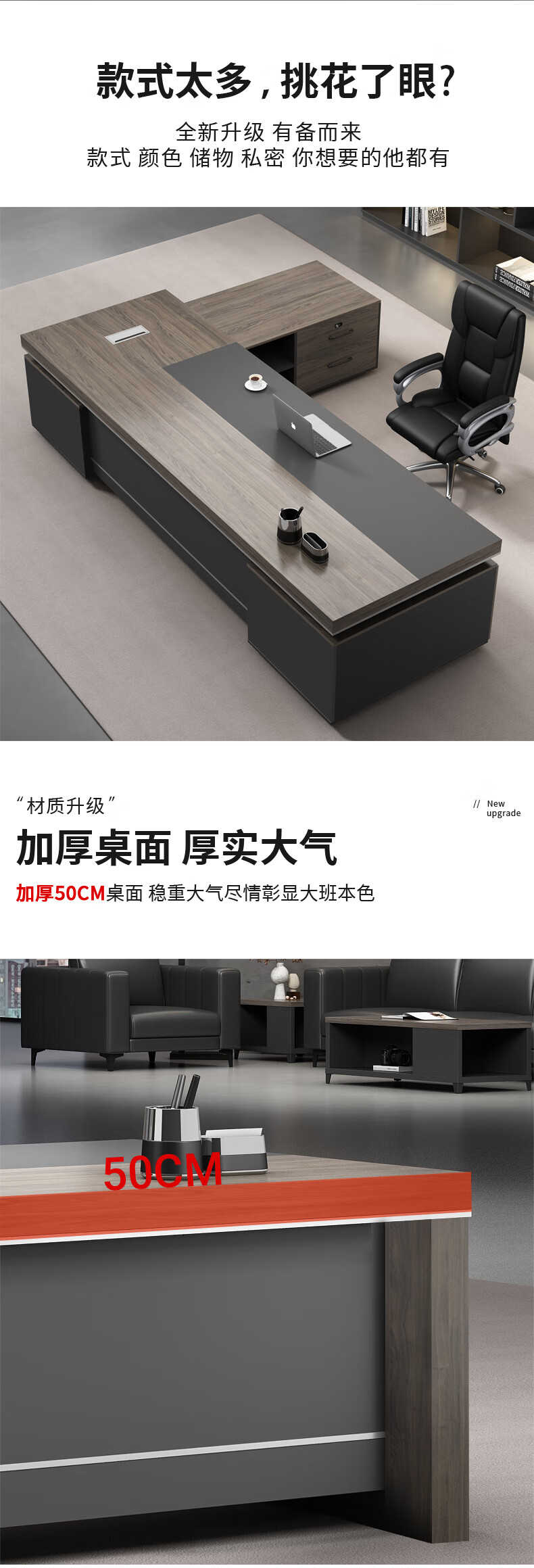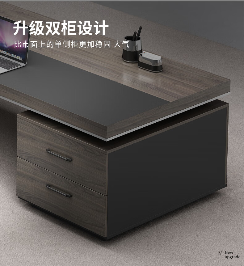 Nuoxiong boss desk office simple modern grand office desk fashion light luxury president desk manager desk supervisor desk black relief + iron gray 1.8 meters boss table including side cabinets