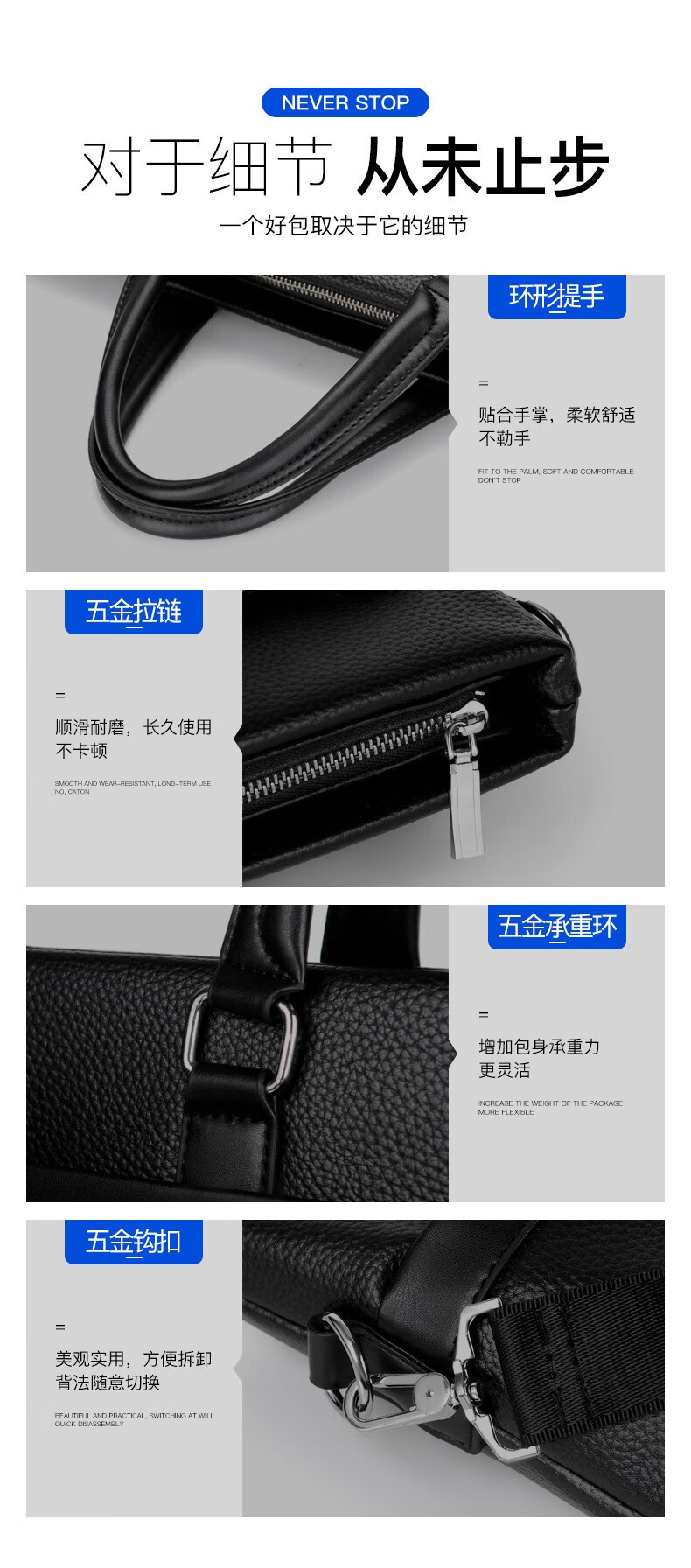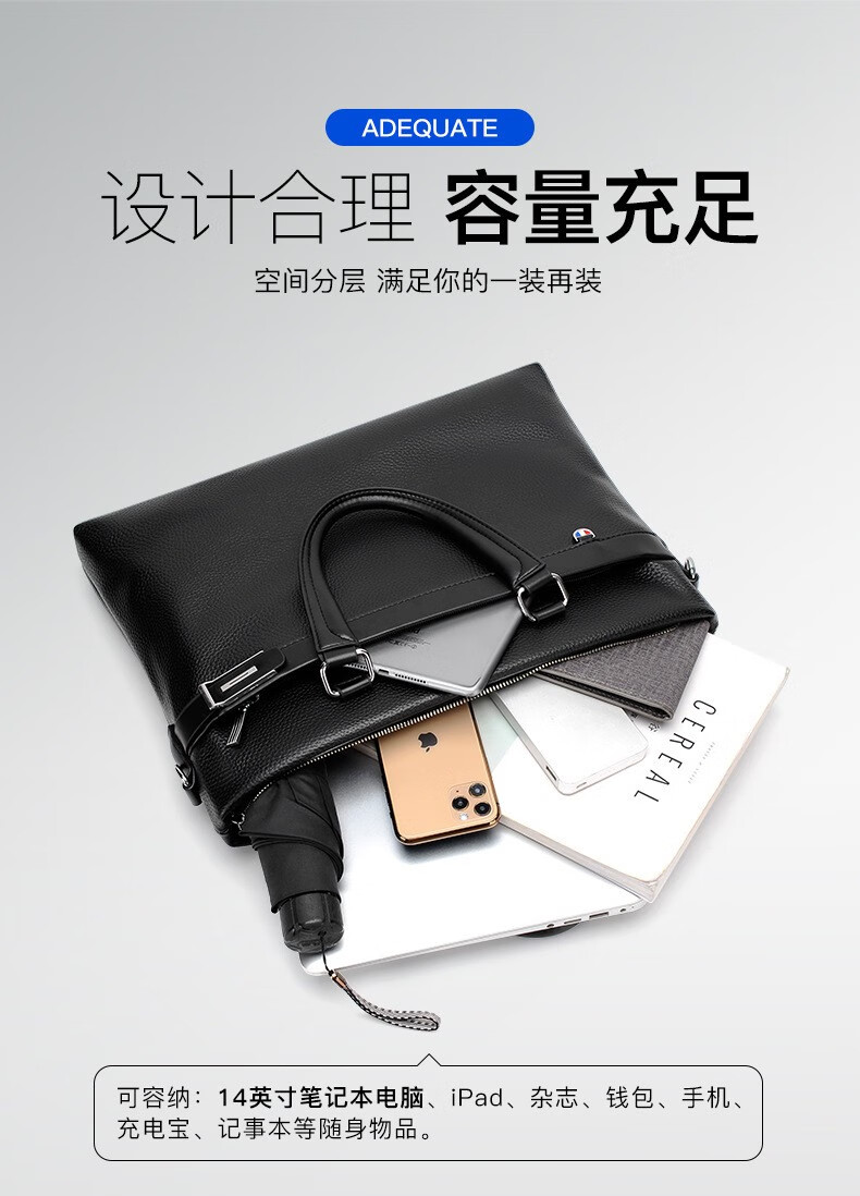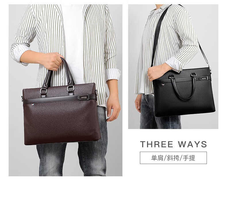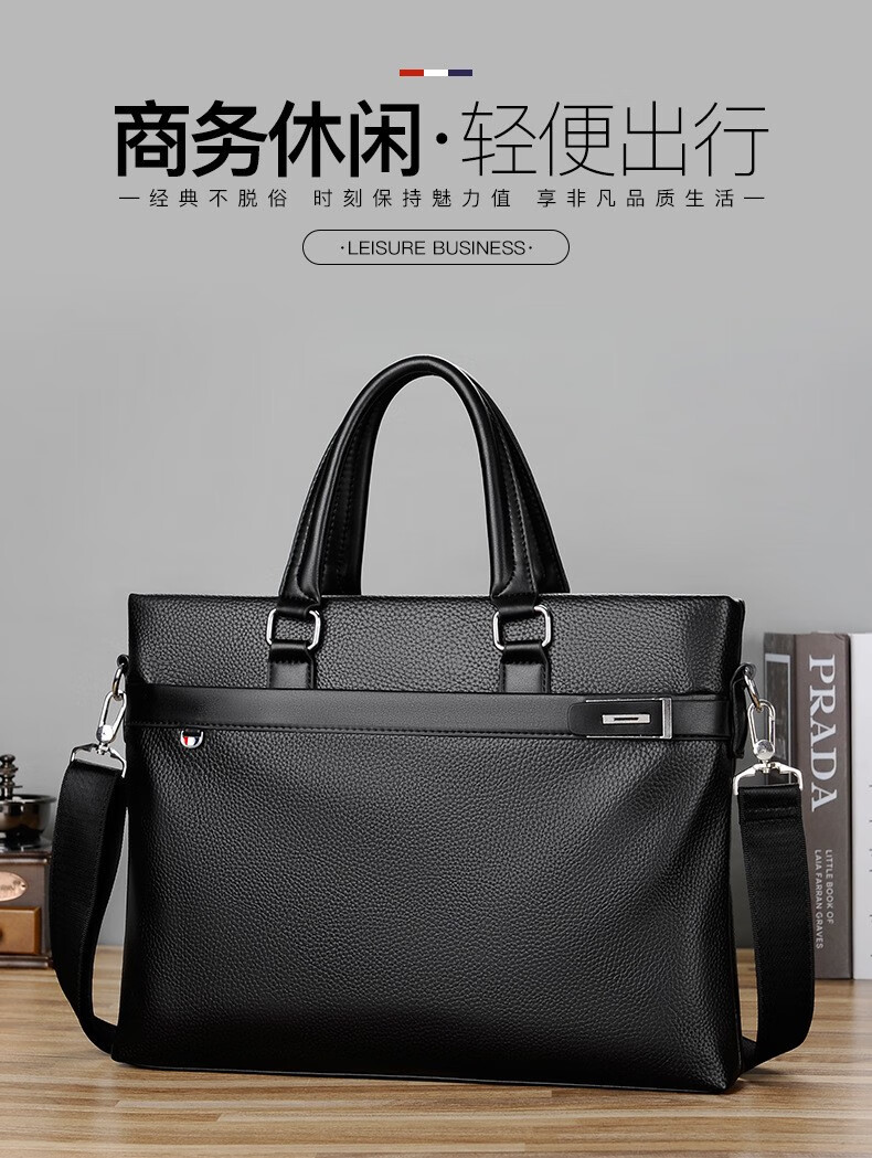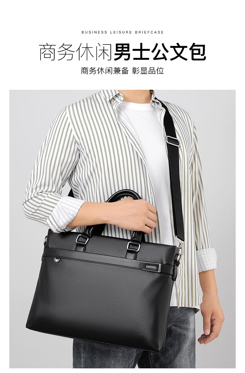 Woodpecker (TUCANO) men's handbag horizontal style men's business briefcase shoulder crossbody men's bag computer file bag Valentine's Day black large bag 14 inches