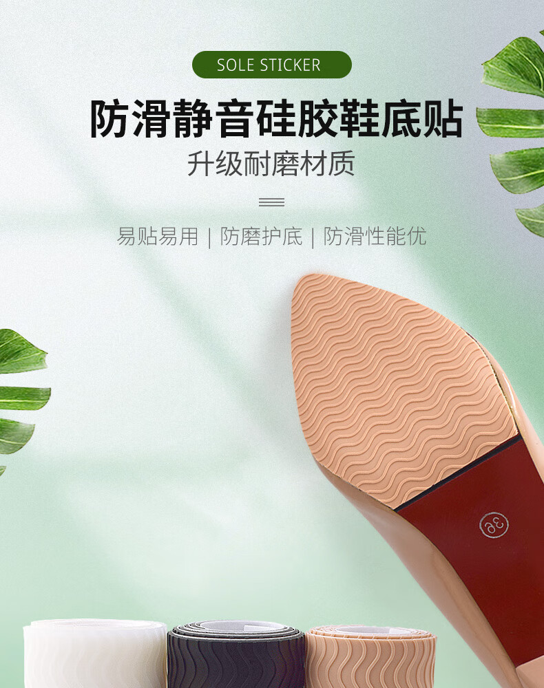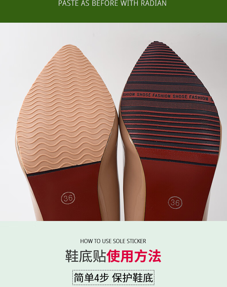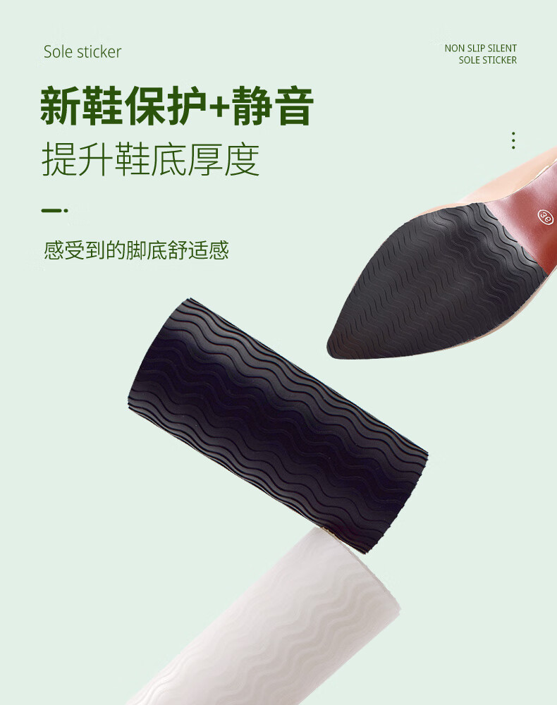 Huabaochi anti-slip sole stickers for high-heeled shoes and leather shoes, wear-resistant silent repair protective film, beef tendon sole anti-wear stickers, black (2 pieces)