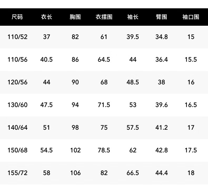 China (cm) 160-165/84-86 165-170 / 88-90 167-172 / 92-96 168-173 / 98-102 170-176 / 106-110