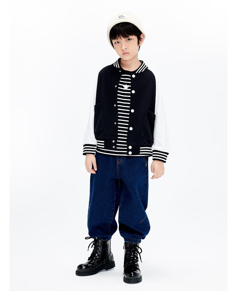 Little MO&Co. Children's clothing spring and autumn boys' baseball uniforms girls' jackets children's jackets thin medium and large children black 100 110/52