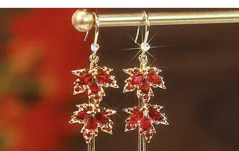 Idel red maple leaf earrings for women 2025 new trendy high-end long tassel retro light luxury design earrings Maple leaf ear hook style E2551