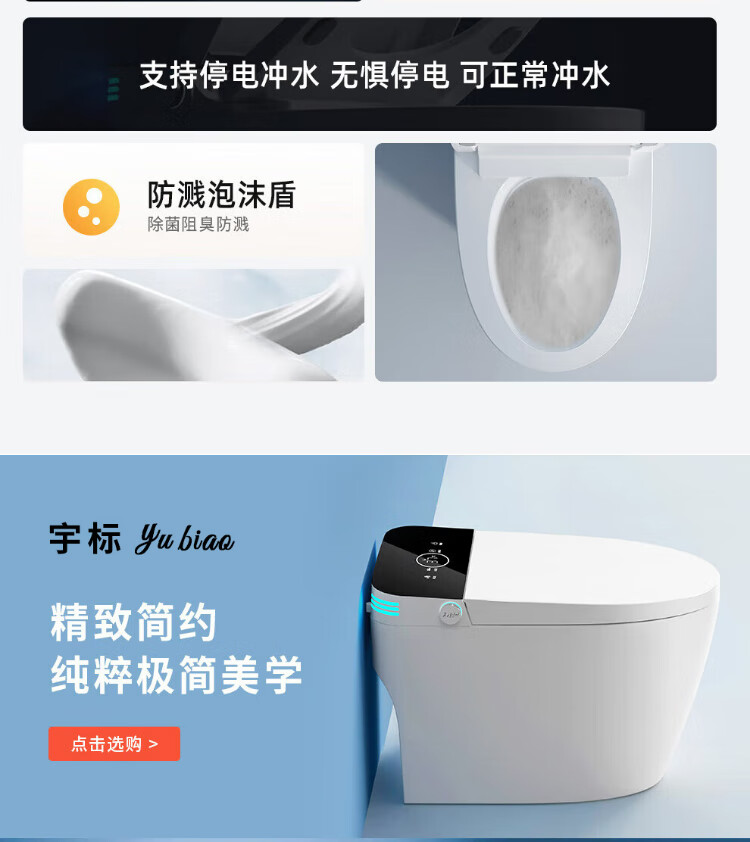 Yubiao series smart toilet all-in-one machine UV sterilization, instant heat, fully automatic flushing, heating and drying toilet M1s luxury sterilization + unlimited water pressure 250/300/350/400 pit distance order notes