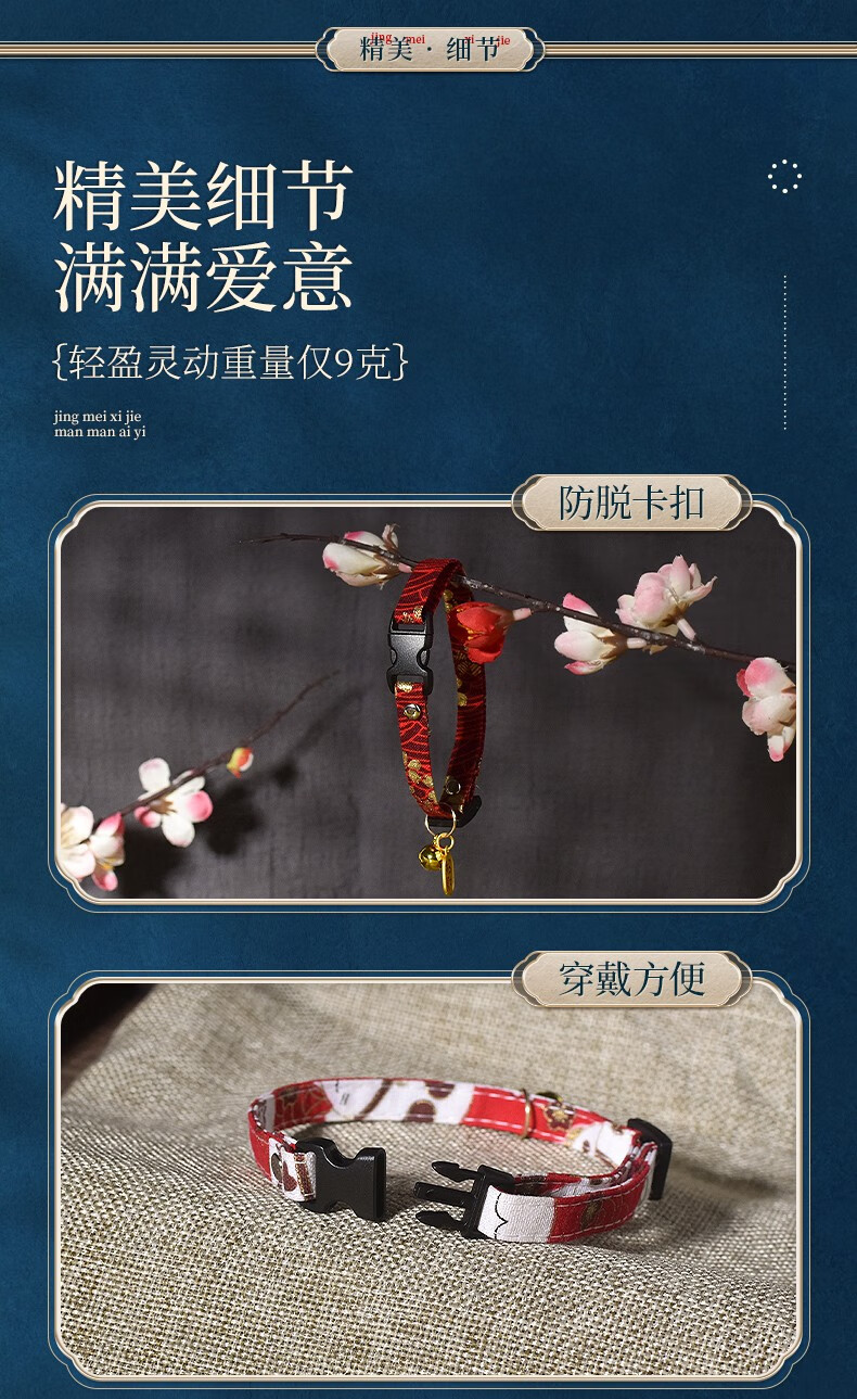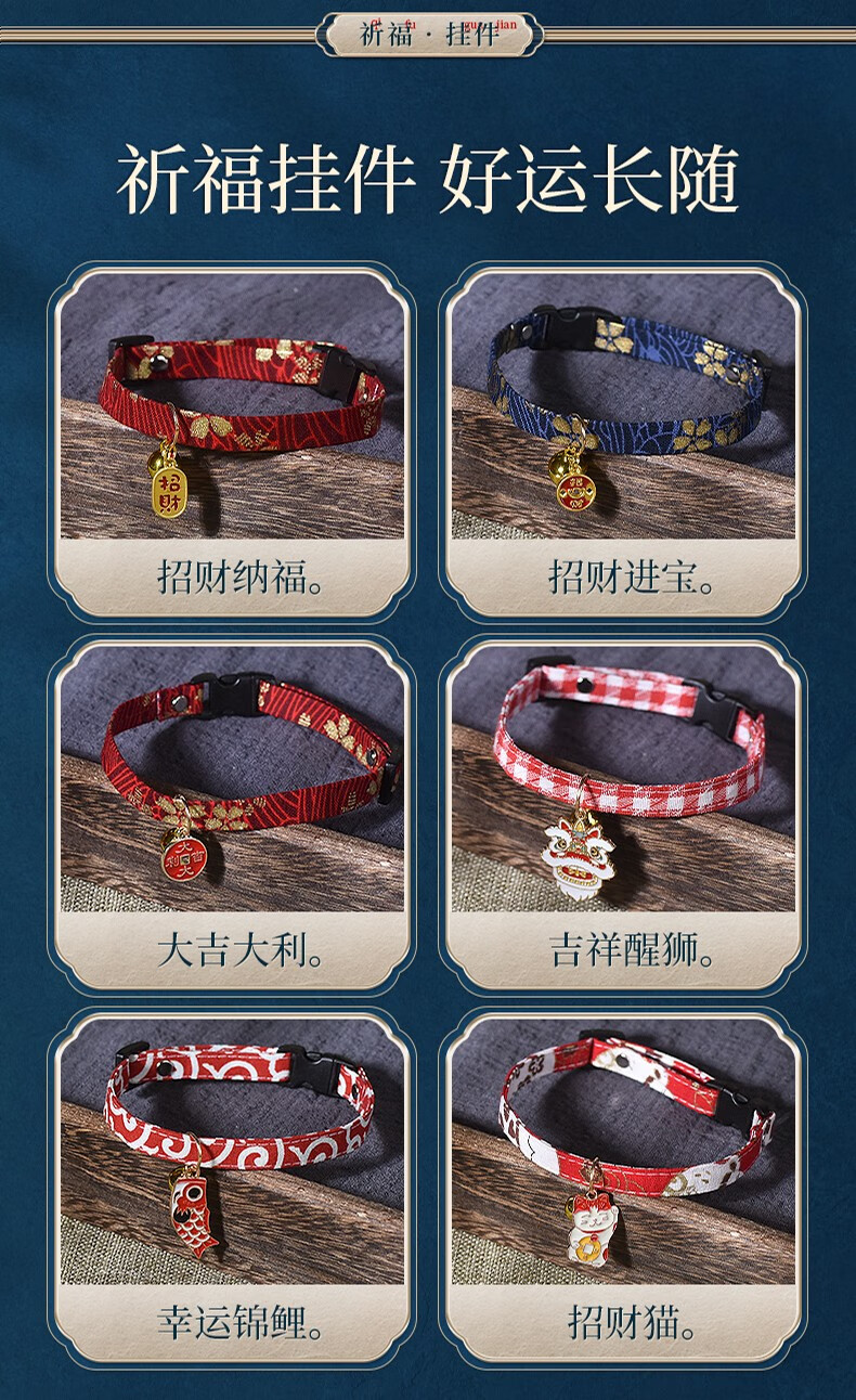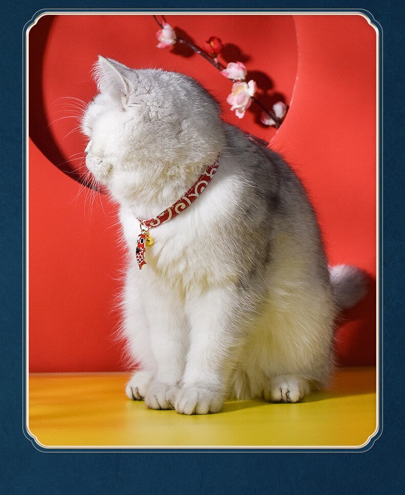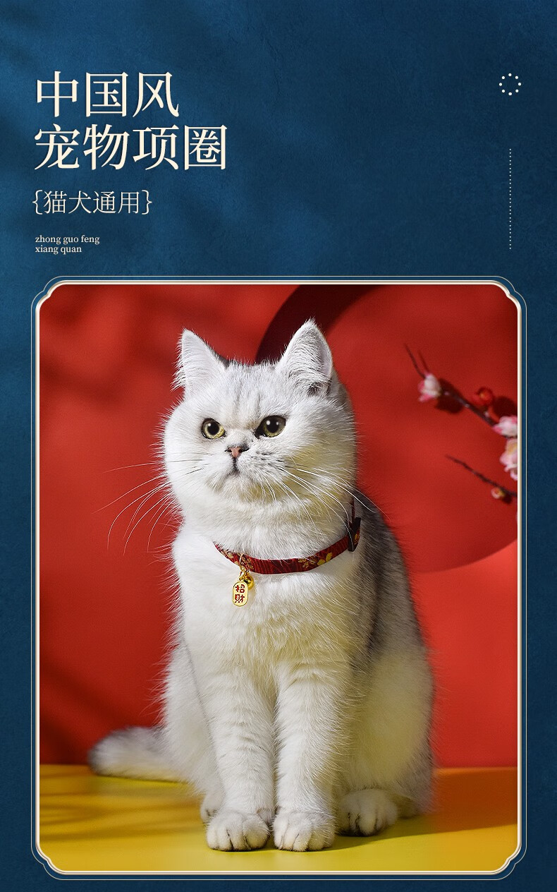 Qi Oh cat collar bell New Year cat and kitten neck jewelry pet kitten collar blue cat and dog decorative necklace red Chinese style to attract wealth and blessings