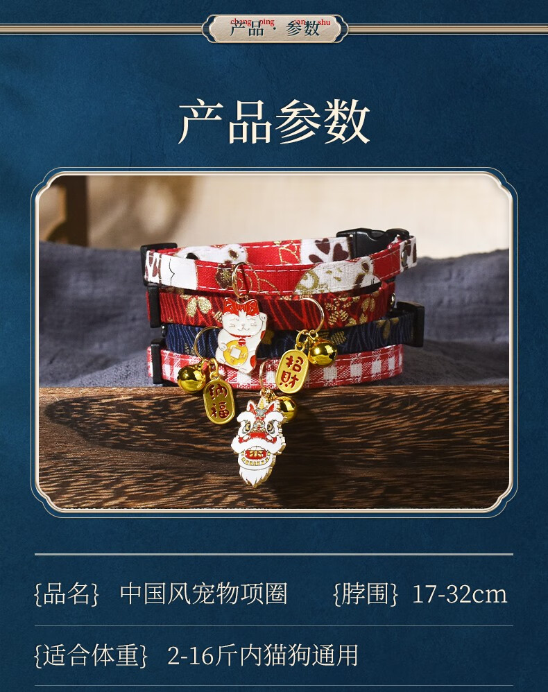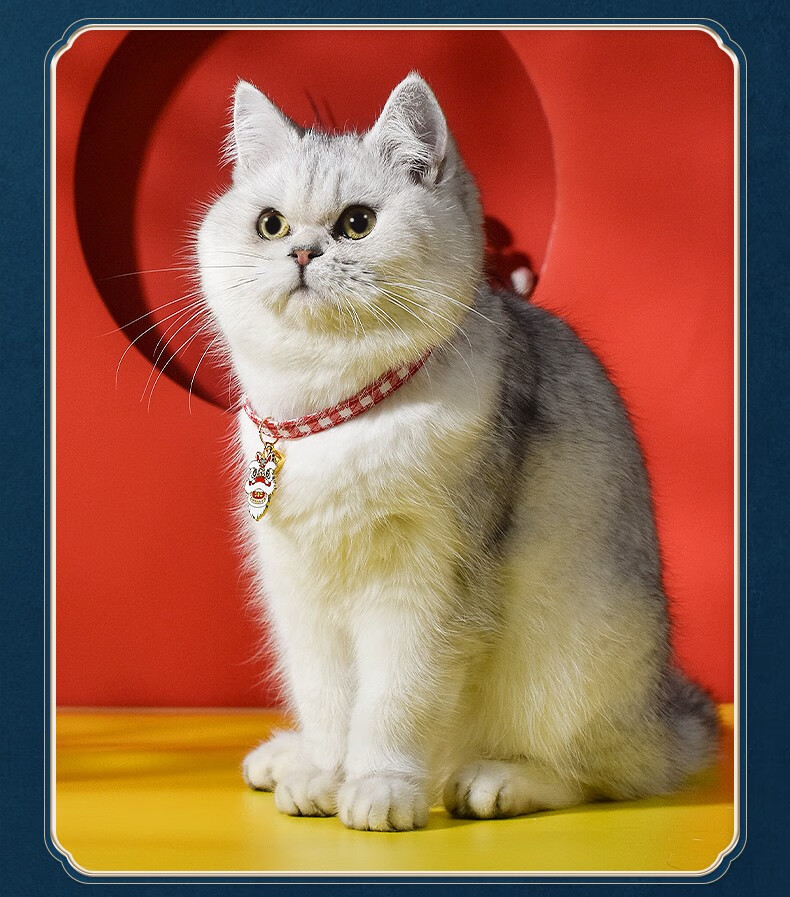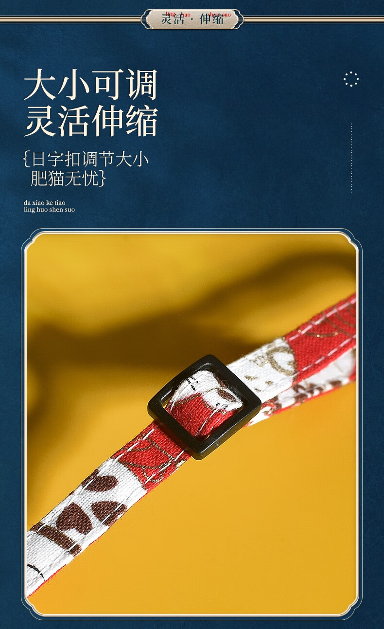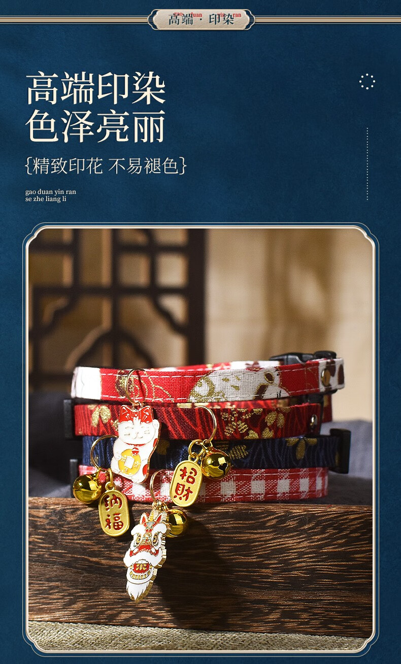 Qi Oh cat collar bell New Year cat and kitten neck jewelry pet kitten collar blue cat and dog decorative necklace red Chinese style to attract wealth and blessings