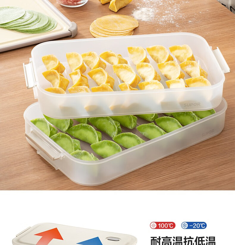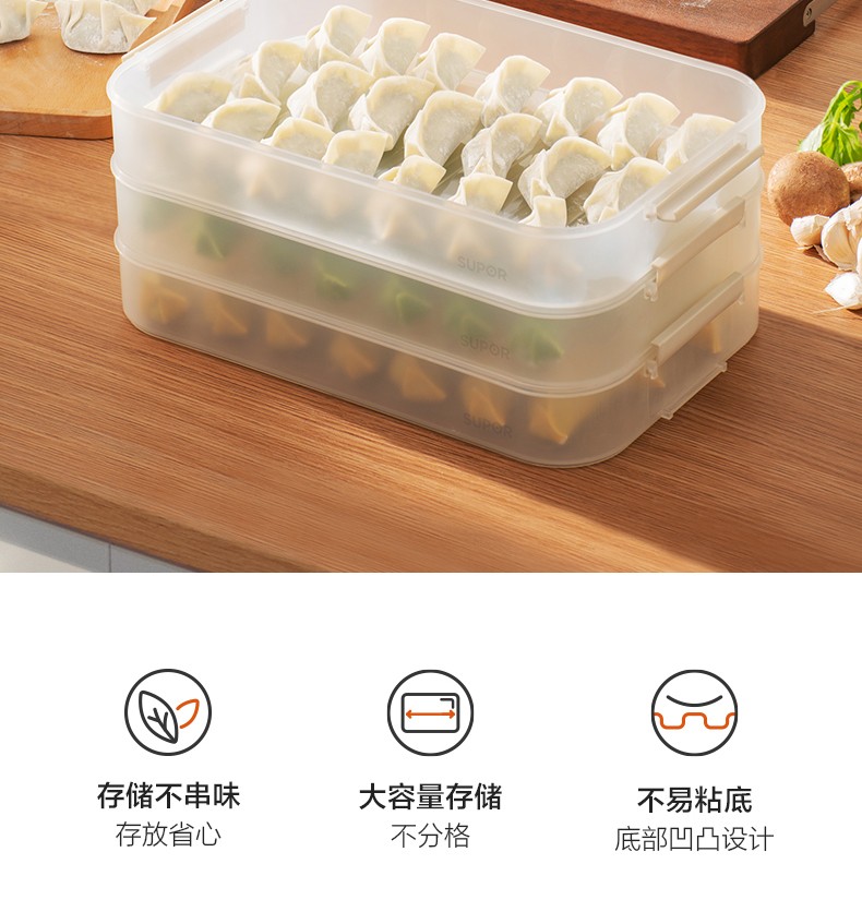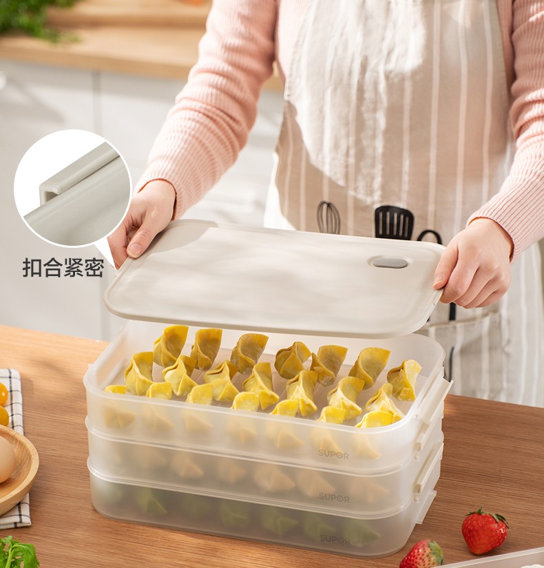 SUPOR dumpling storage box multi-layer refrigerator household food-grade freezing special thickened fresh-keeping microwave heating multi-functional dumpling box 3 layers with lid
