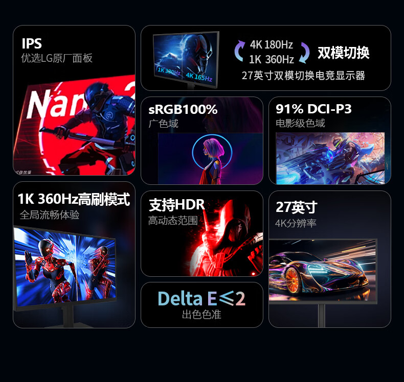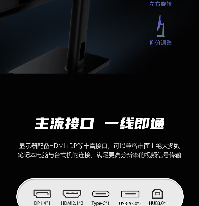Xinghuachen 27-inch 4K 180Hz dual-mode screen narrow bezel display IPS low blue light HDR rotating lifting professional gaming e-sports desktop computer MAC external screen type c aluminum alloy 27-inch 4K 60hz four narrow edges + IPS LG panel