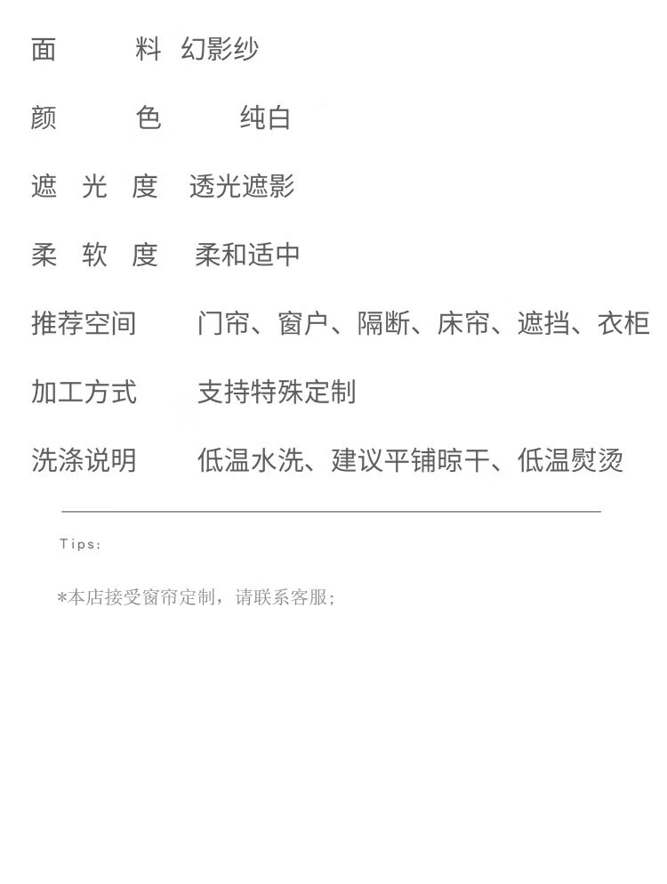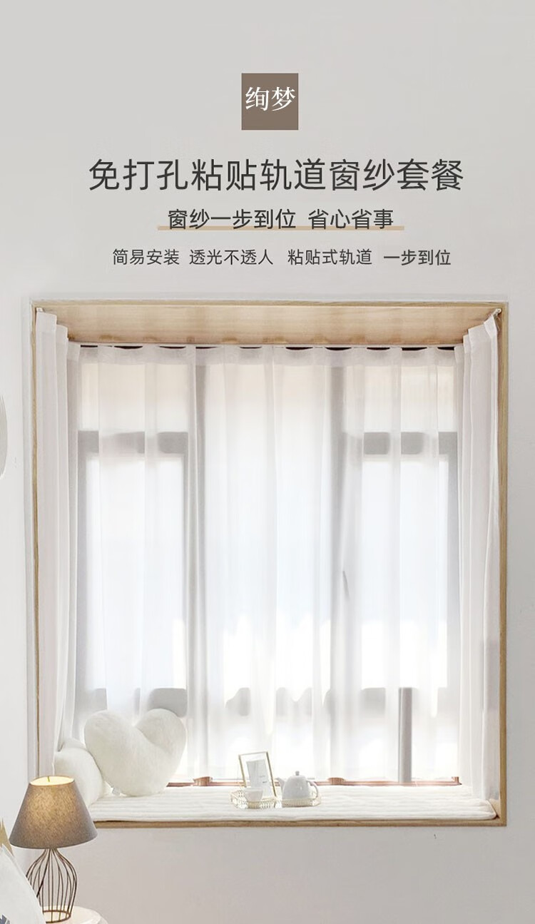 Colorful Dream Window Screen + Adhesive Track Window screen can be installed without punching. Phantom yarn is transparent and opaque and has a hazy feel. Phantom yarn - pure white + adhesive track. Width 1.5 meters * height 2.2 meters * 2 pieces + 2 meters track
