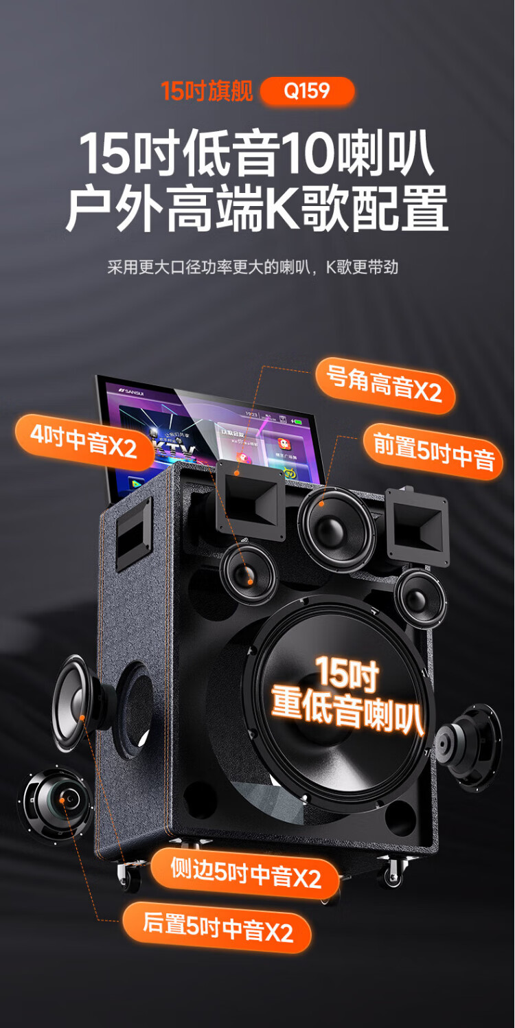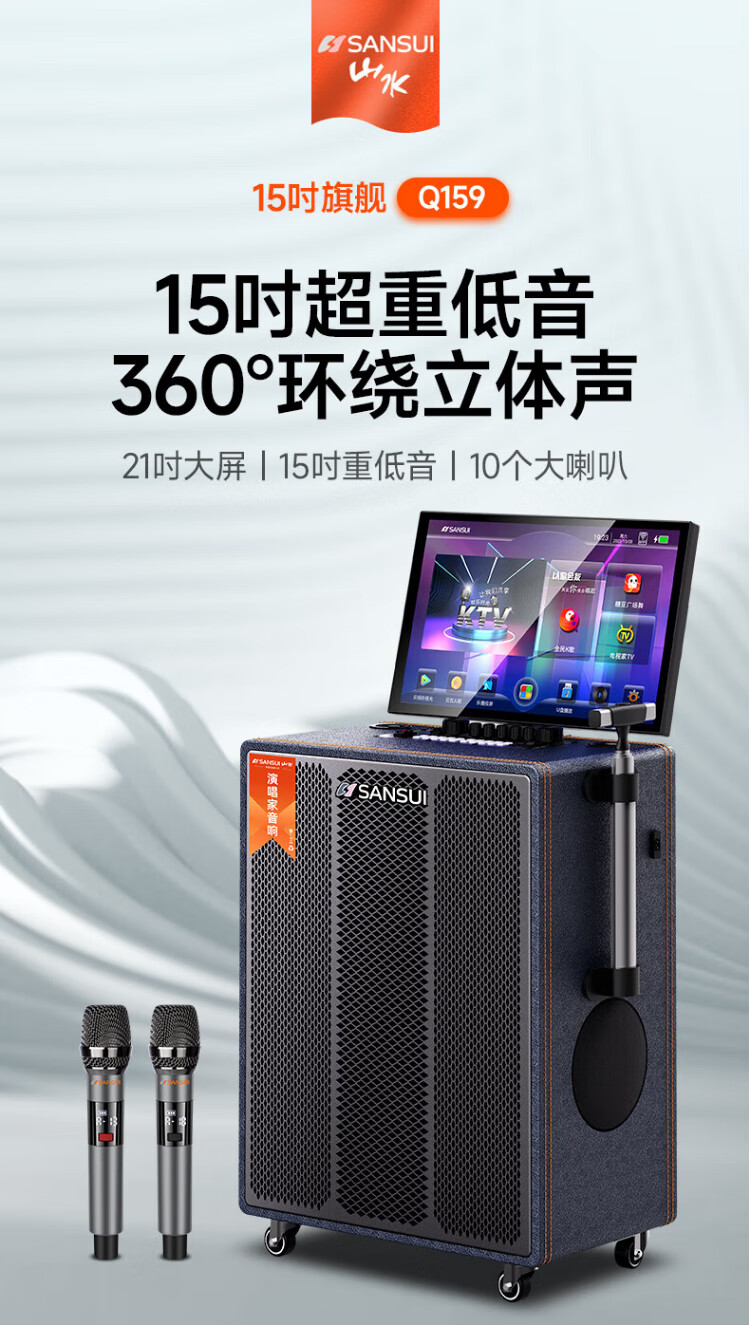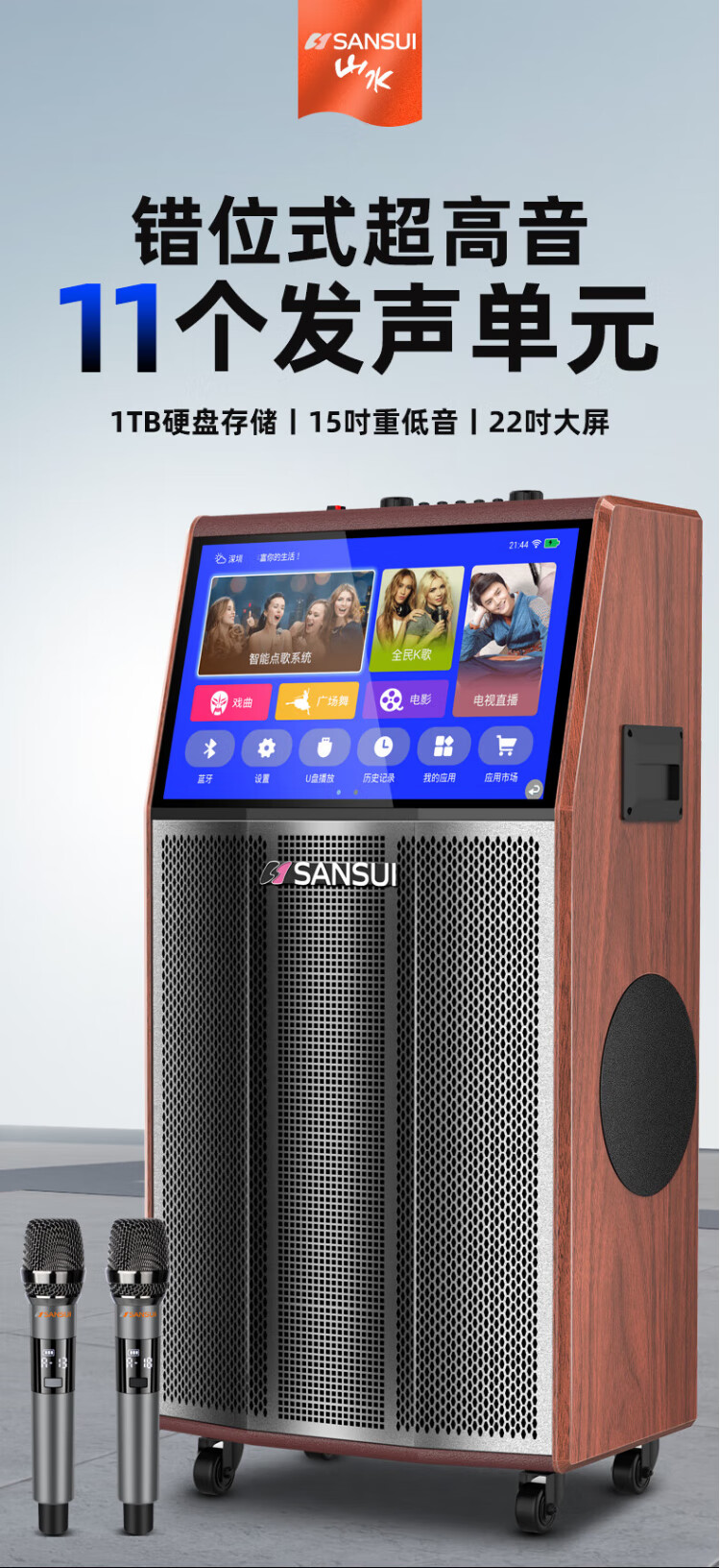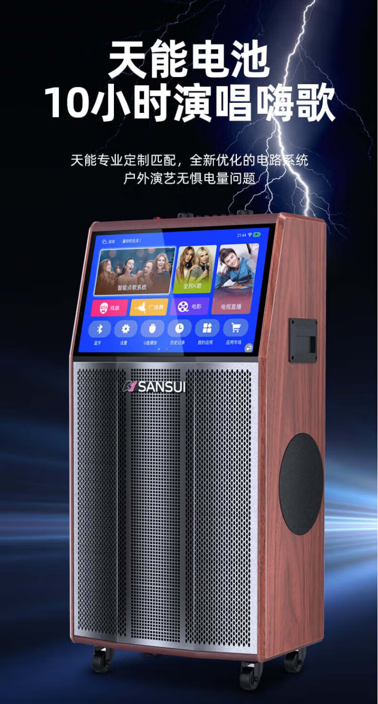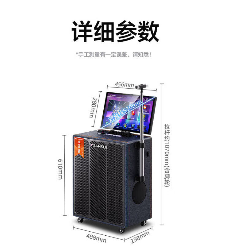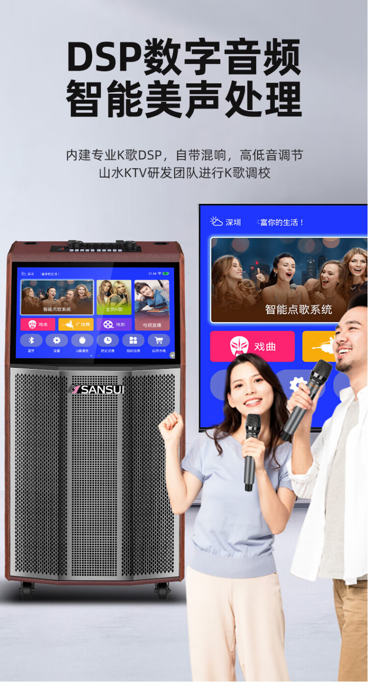 SANSUI square dance audio with display screen outdoor audio karaoke special stage-level trolley speaker high-power karaoke sound card all-in-one home KTV audio set 22-inch screen + 15-inch bass + dual 8-inch midrange + 1T