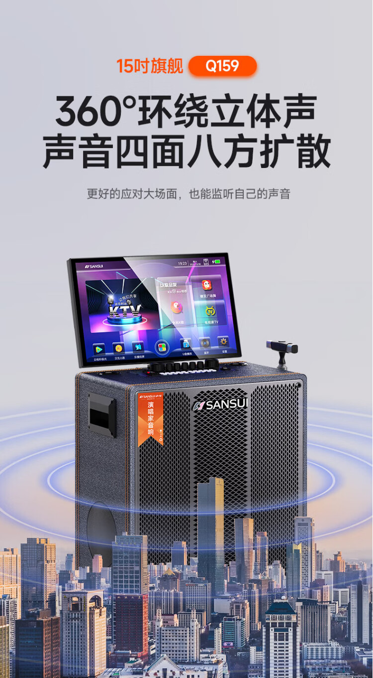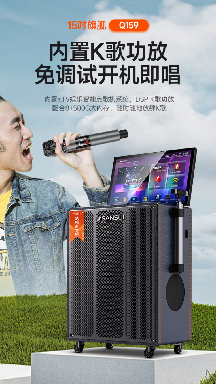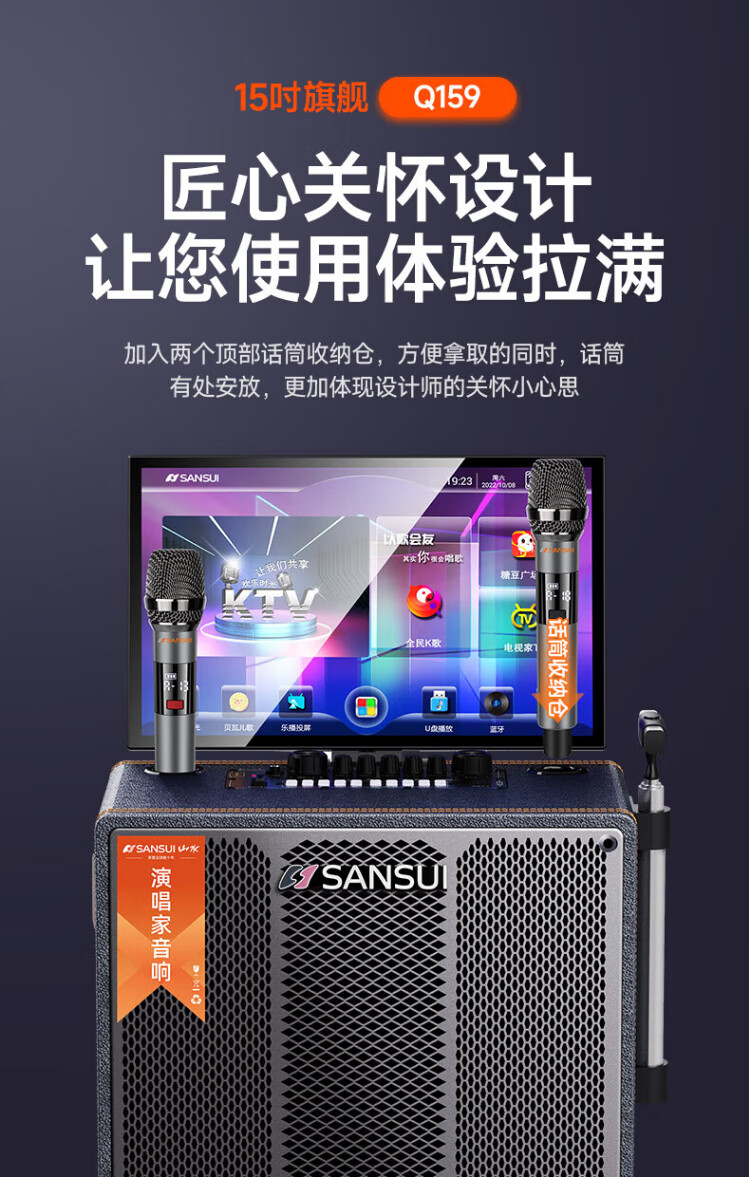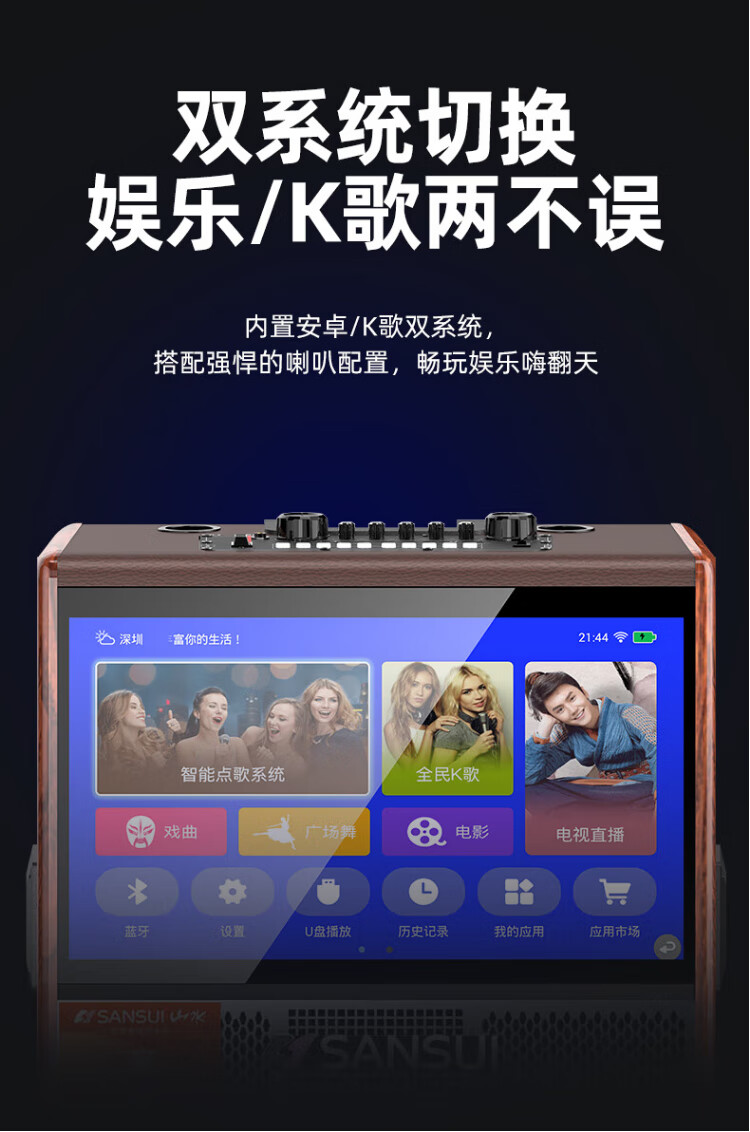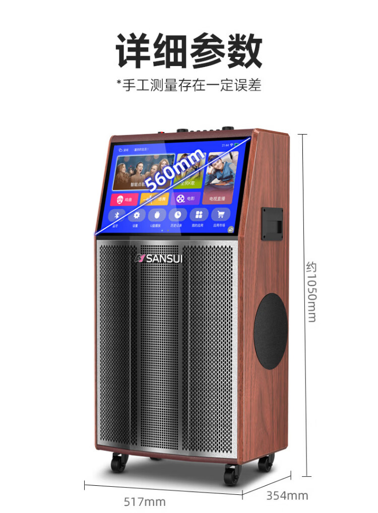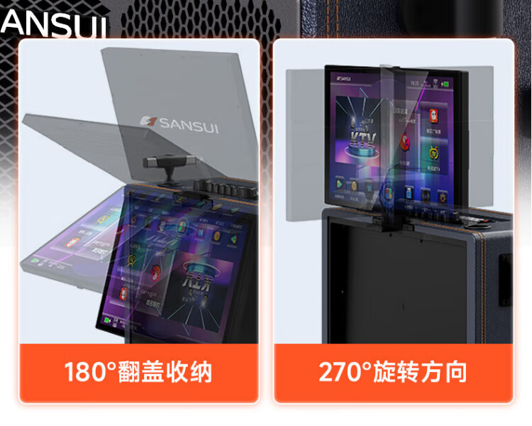 SANSUI square dance audio with display screen outdoor audio karaoke special stage-level trolley speaker high-power karaoke sound card all-in-one home KTV audio set 22-inch screen + 15-inch bass + dual 8-inch midrange + 1T