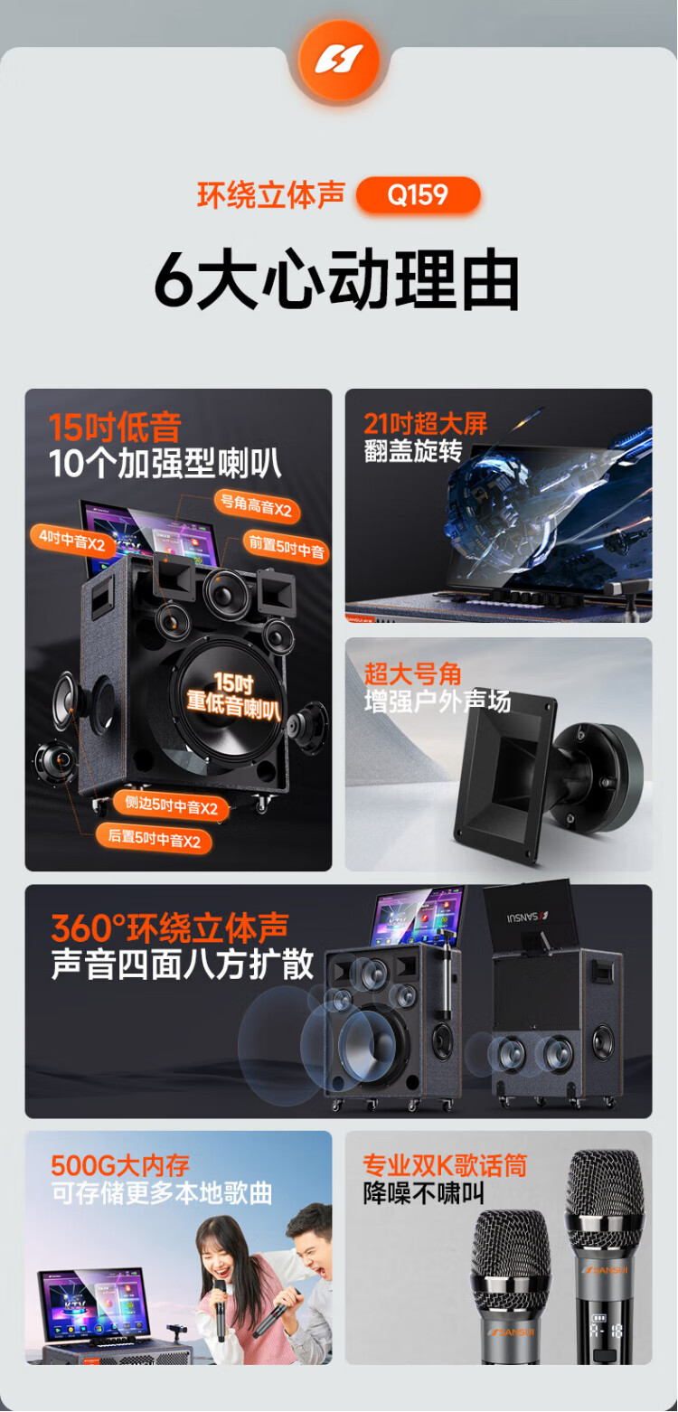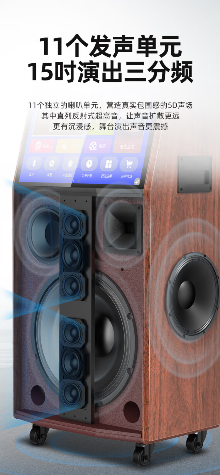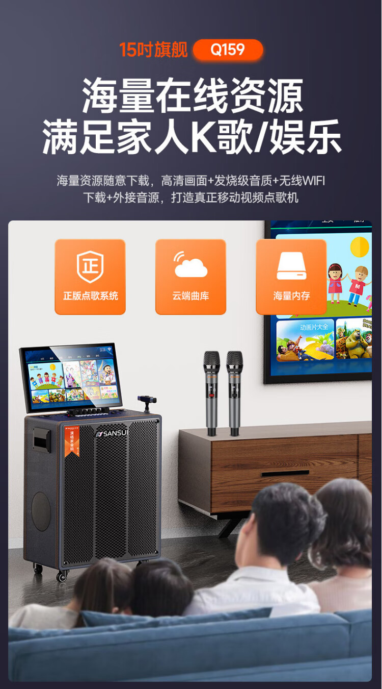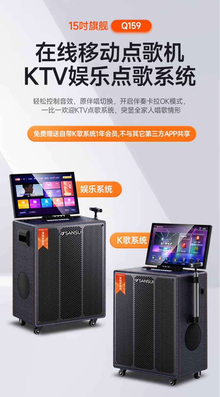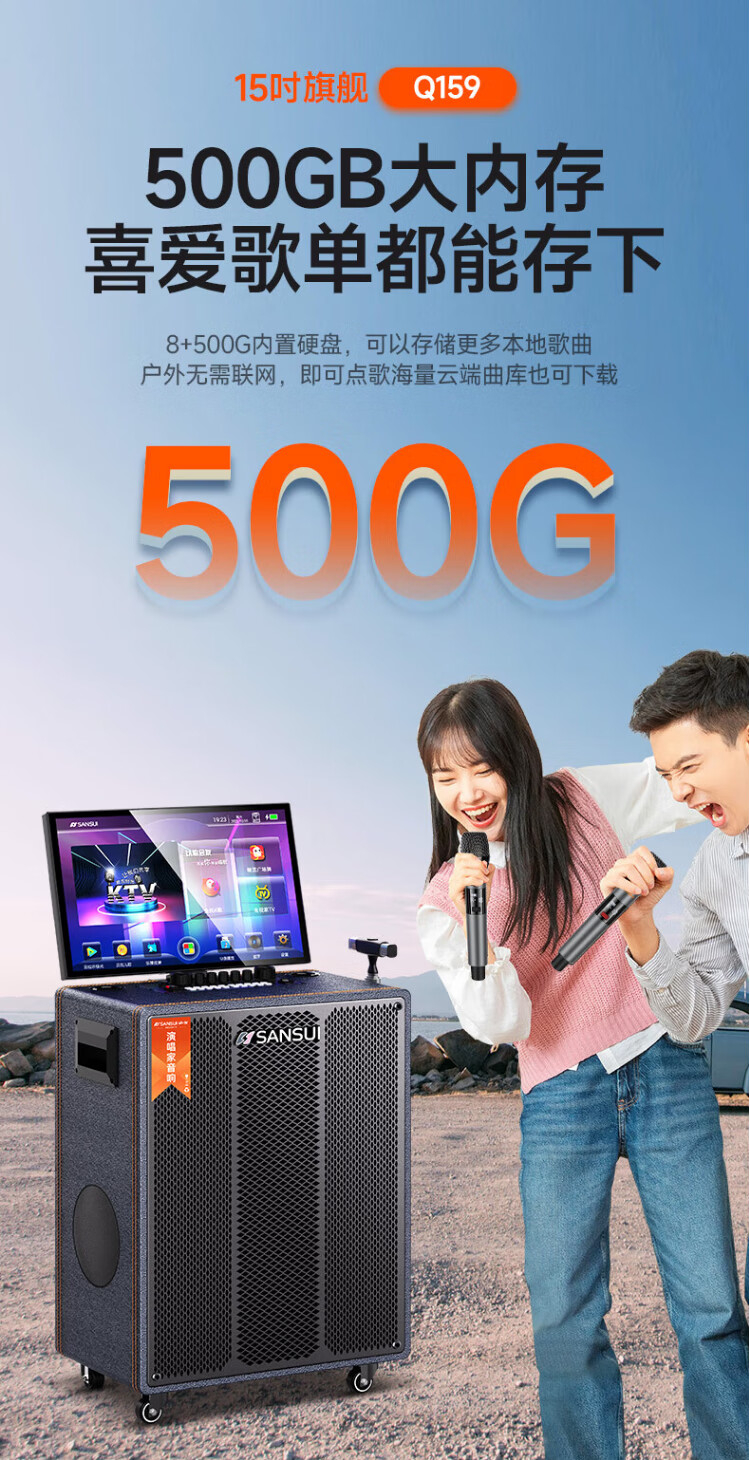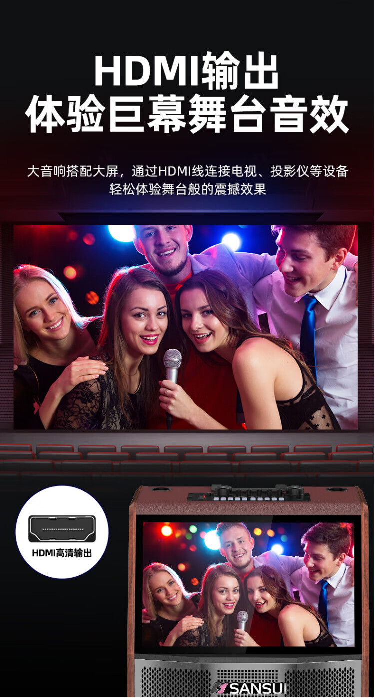 SANSUI square dance audio with display screen outdoor audio karaoke special stage-level trolley speaker high-power karaoke sound card all-in-one home KTV audio set 22-inch screen + 15-inch bass + dual 8-inch midrange + 1T